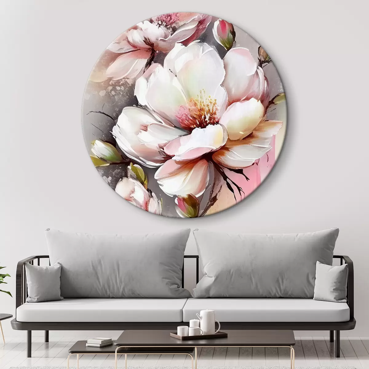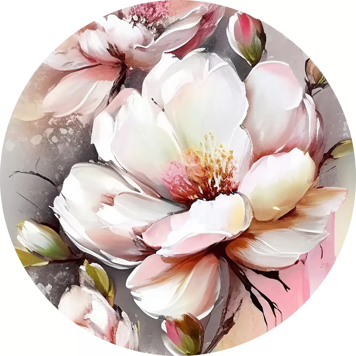 Tableaux ronds La grâce en fleurs : Pétales tendres et nuances douces r35925