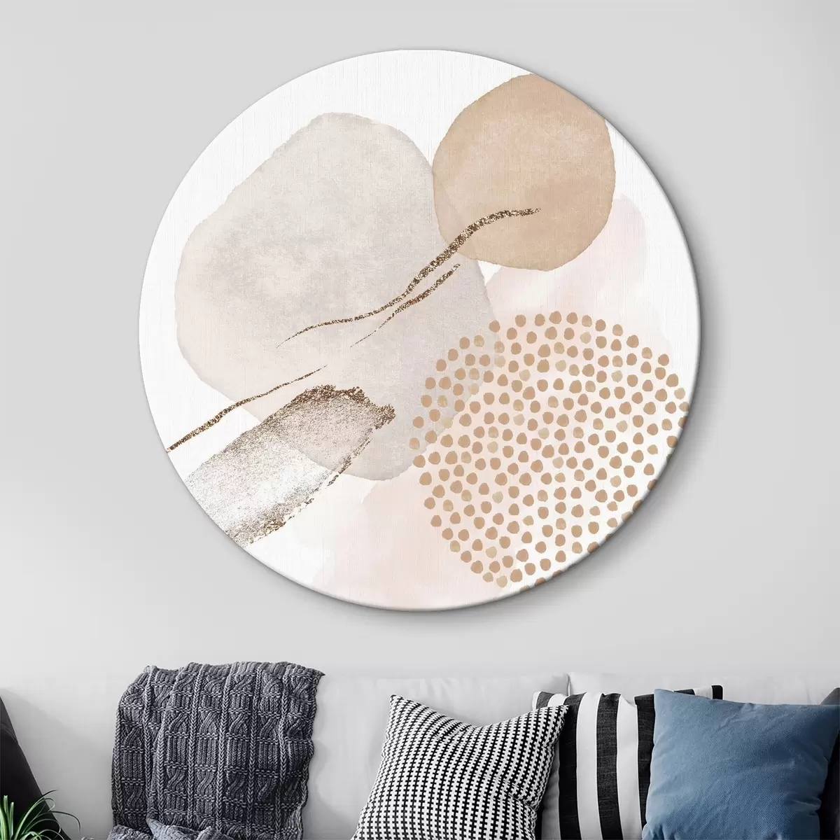 Tableaux ronds Abstrait neutre avec accents en pointillés r35990
