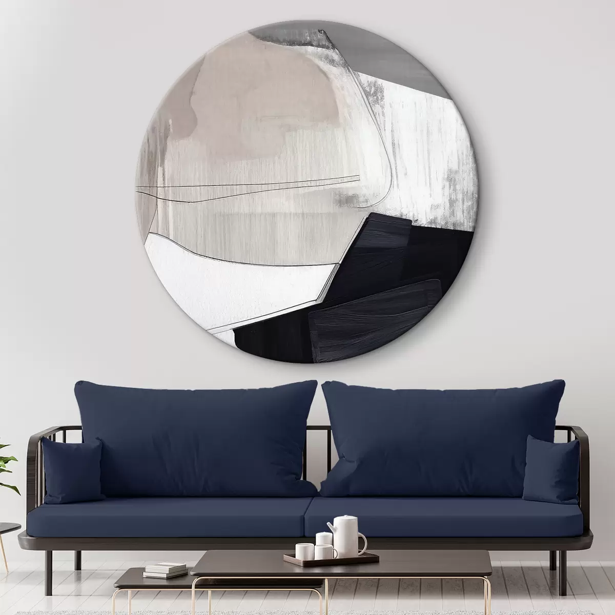 Tableaux ronds Art abstrait dans les tons noirs et blancs r36039