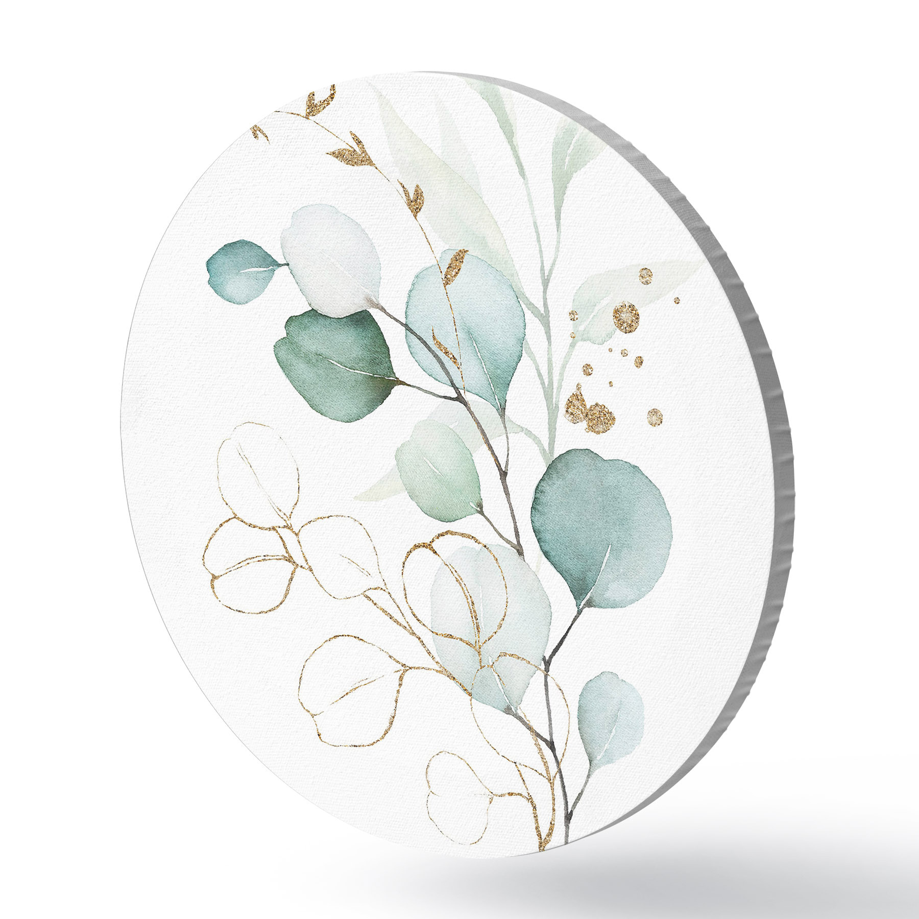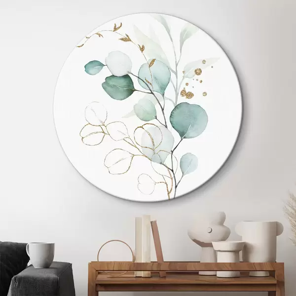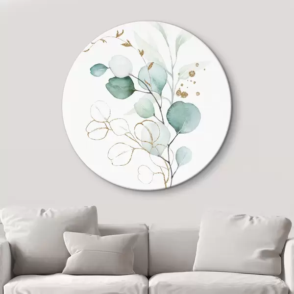 Tableaux ronds Aquarelle représentant une branche avec des feuilles bleues r36138