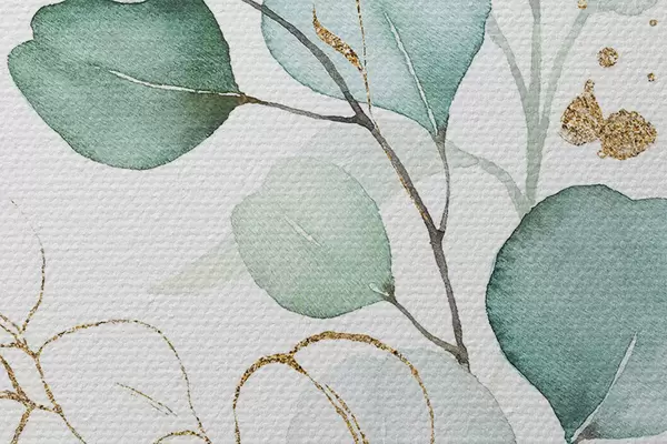 Image Aquarelle représentant une branche avec des feuilles bleues Nr r36138