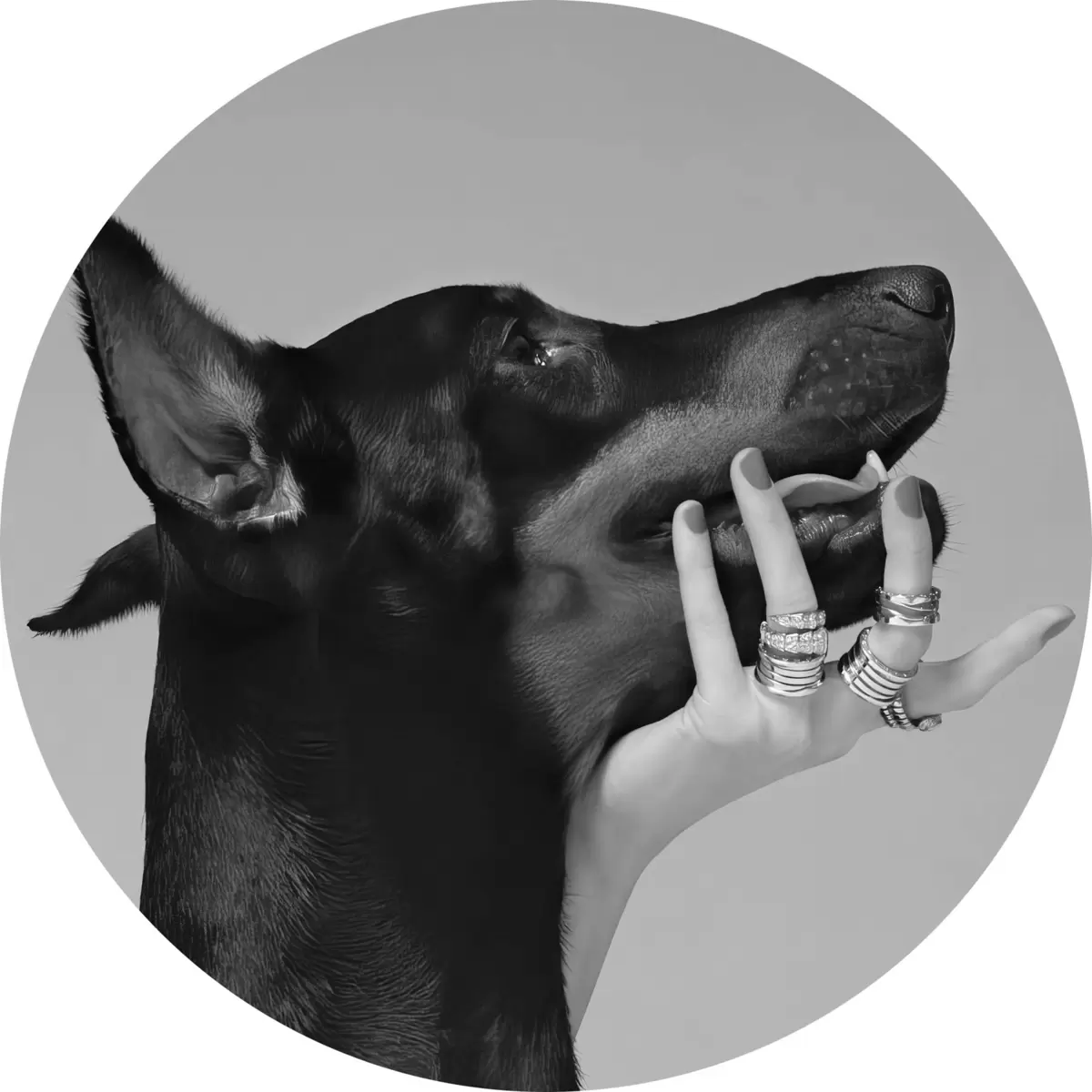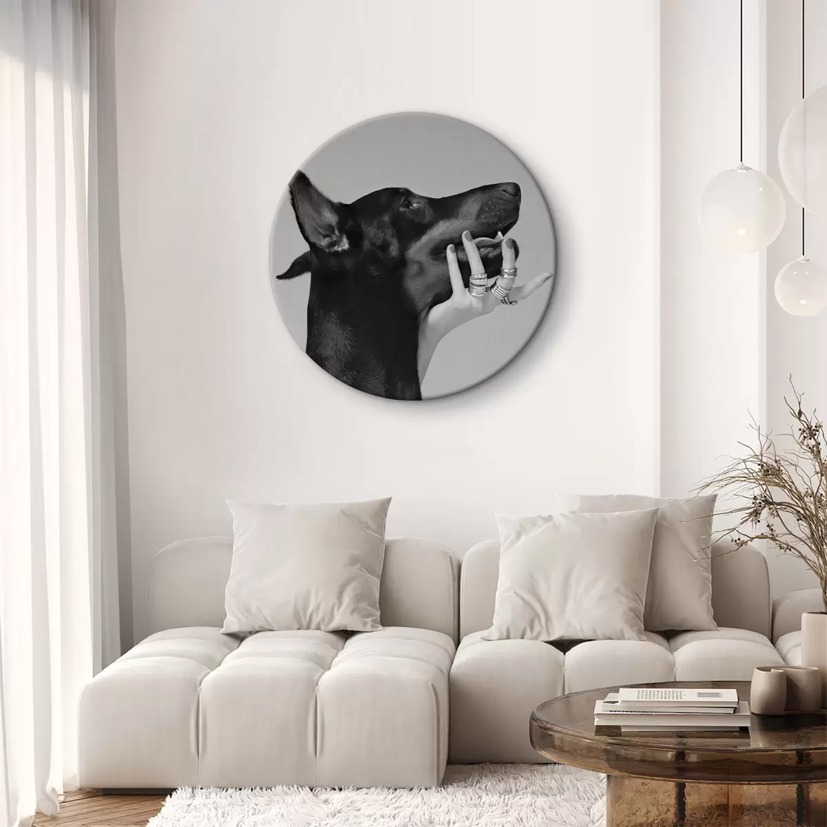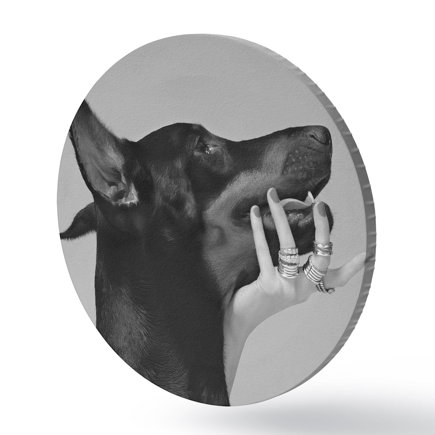 Tableaux ronds Doberman noir et blanc avec un nez haut r36178