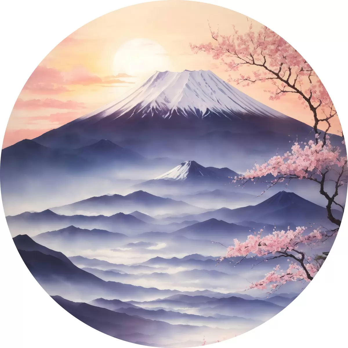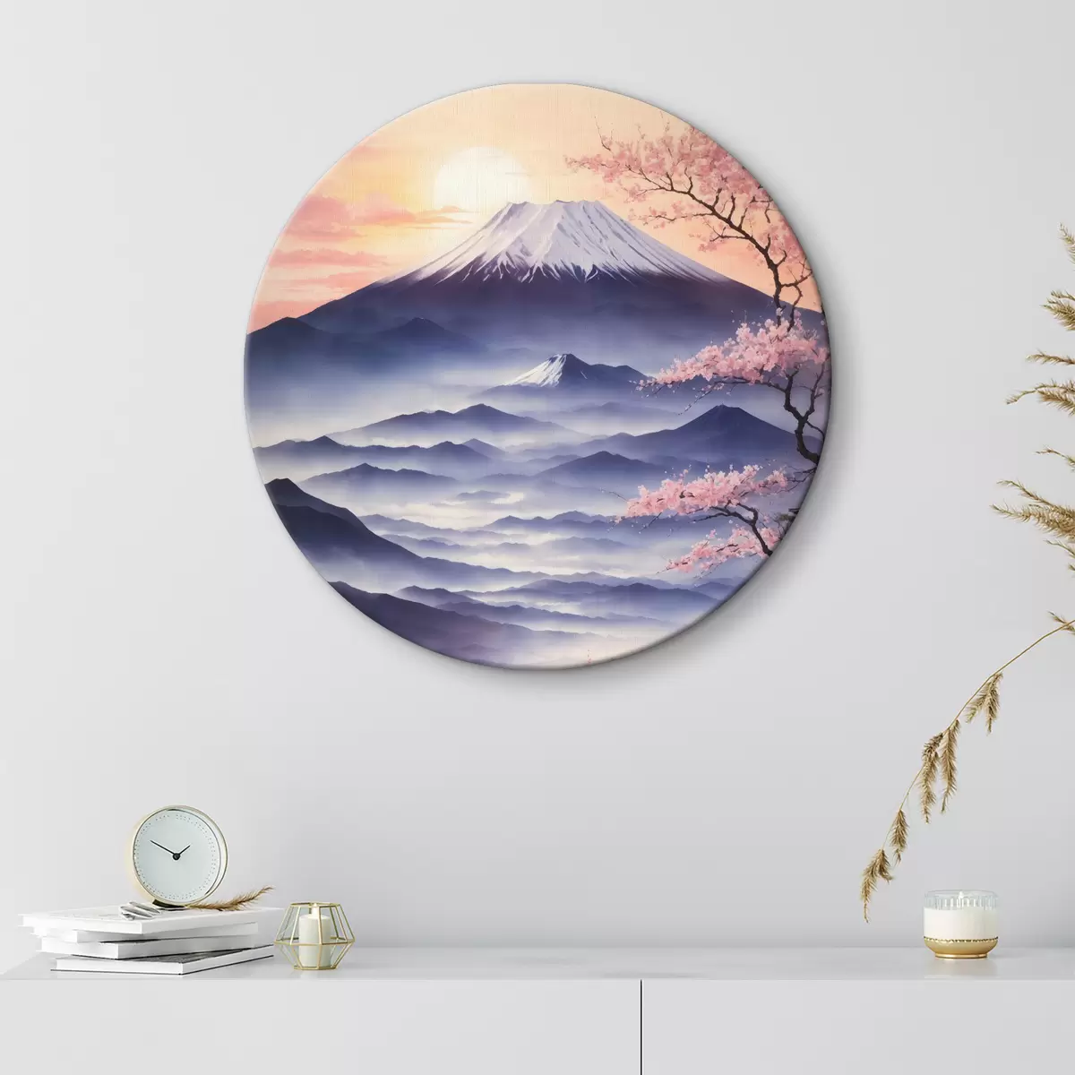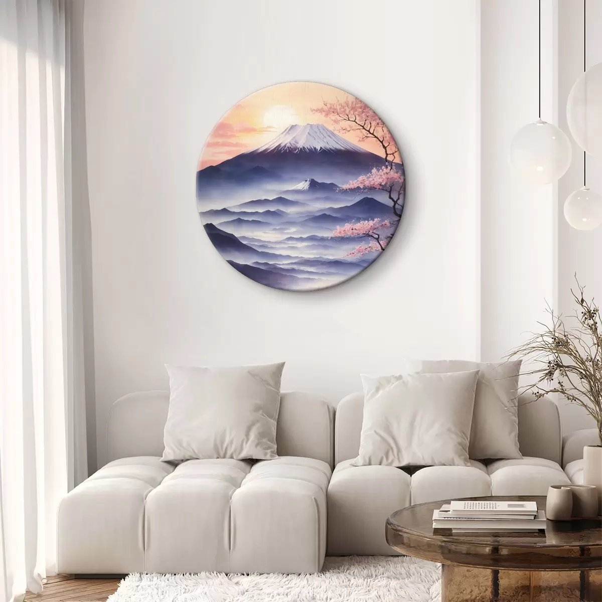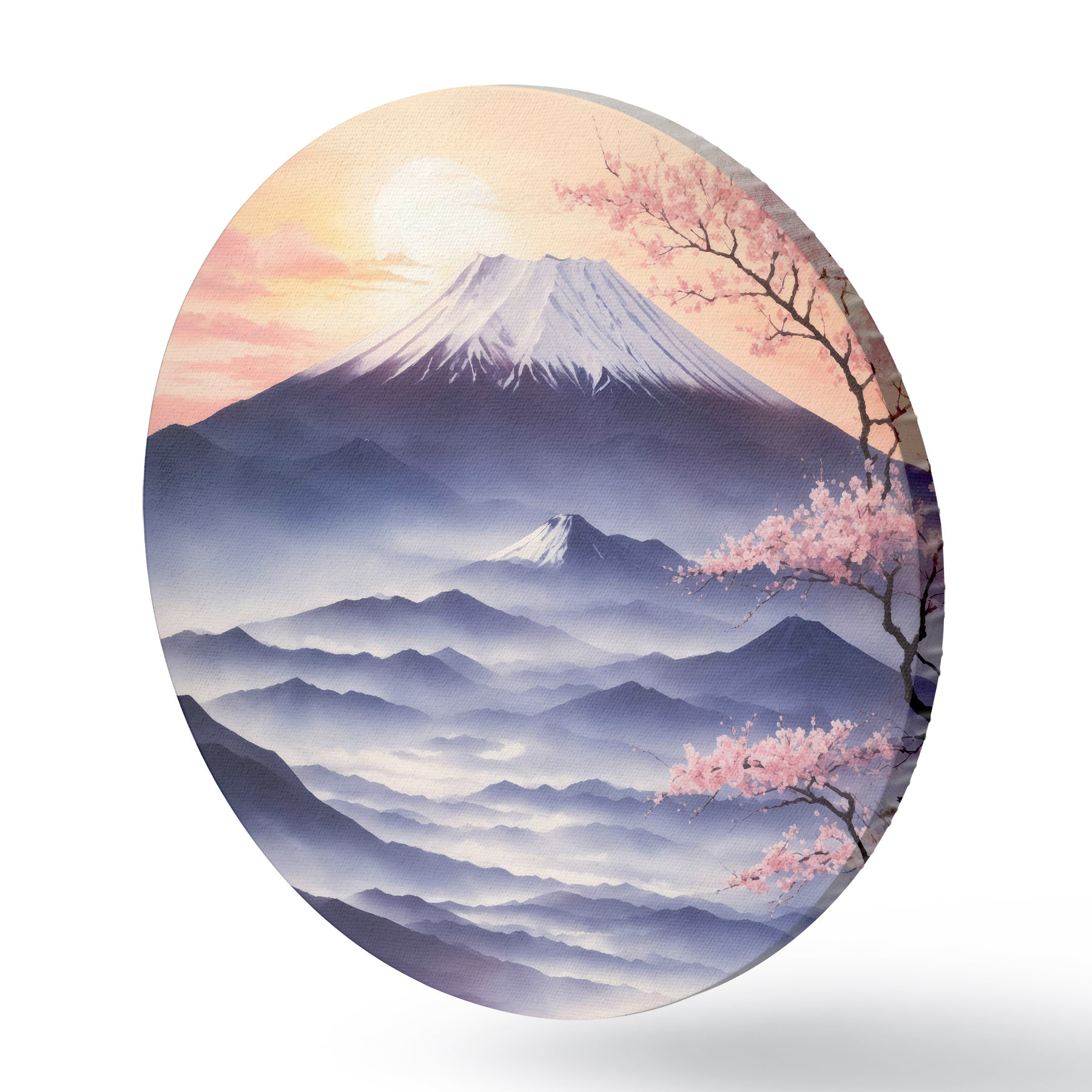 Tableaux ronds Vue d'un volcan paisible au sommet enneigé r36233