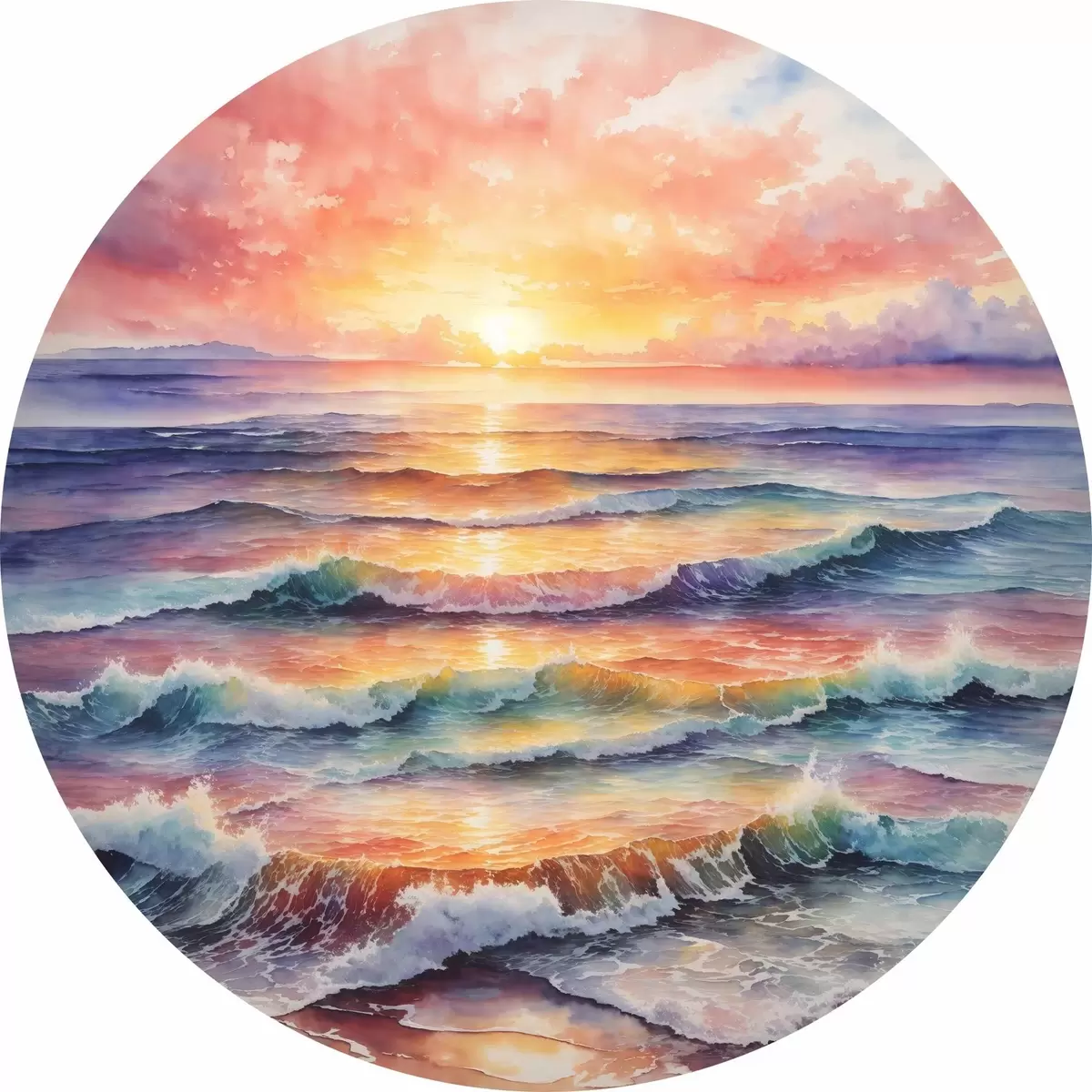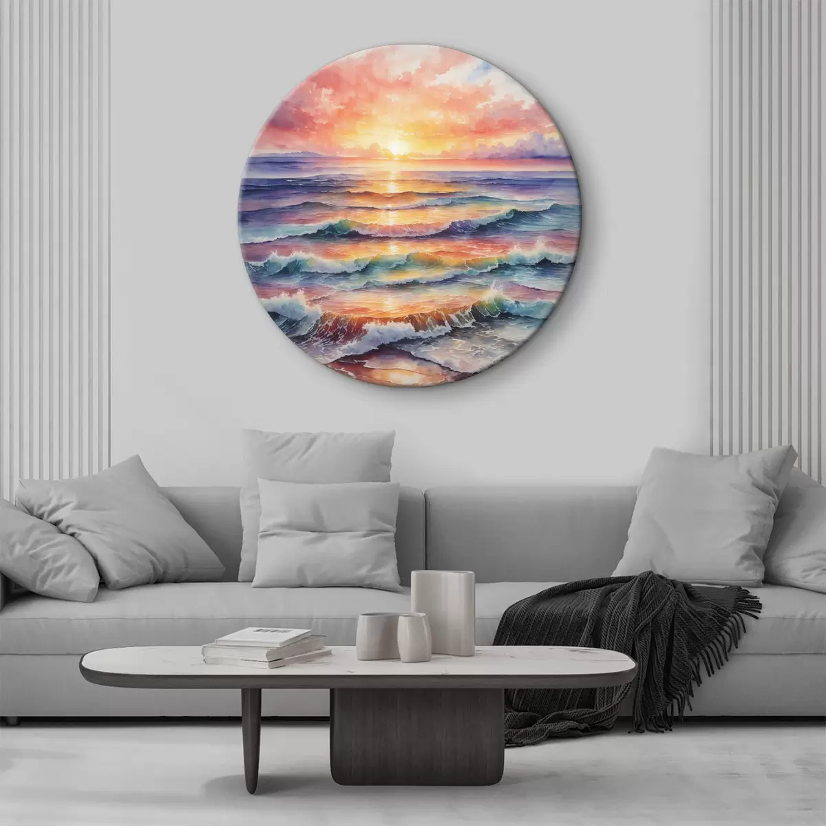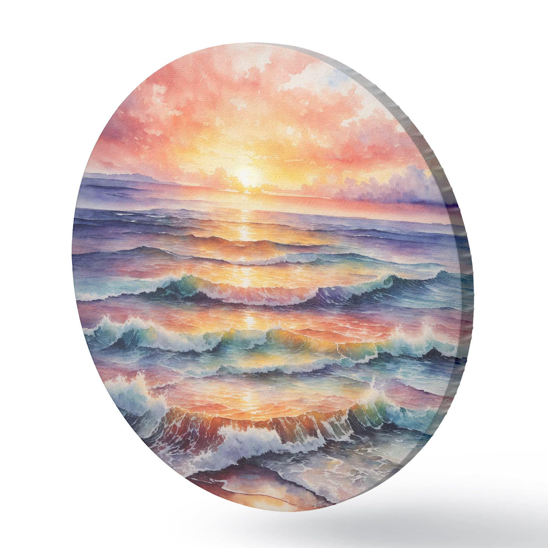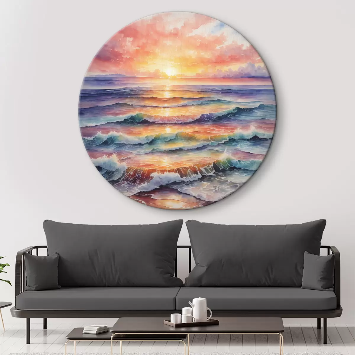 Tableaux ronds Coucher de soleil sur la plage en aquarelle r36241