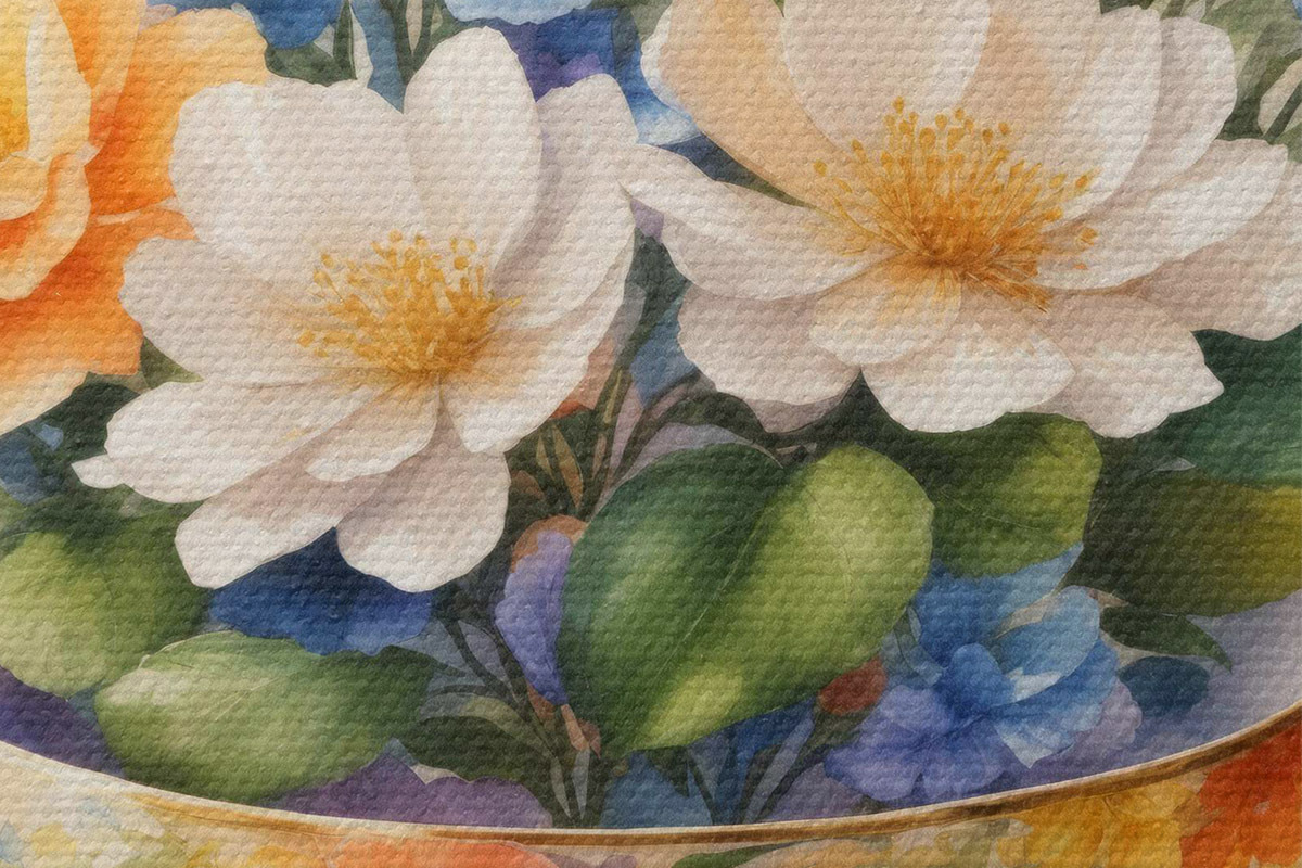 Trois types de matériaux peuvent être commandés : Economic Canvas - matériau dense et durable pour l'impression numérique, identique à la toile de peintre, surface imperméable, reproduction réaliste des détails, matériau à grain moyen. Premium Canvas - la texture ressemble à celle d'une toile de peintre (petits fils entrelacés). Reproduction douce et détaillée de l'image sur une surface mate. Eco-Premium - tissu 100 % coton de haute qualité. Grâce aux fibres naturelles de coton, le matériau est durable et résistant à l'usure. Excellente reproduction des couleurs et des détails.