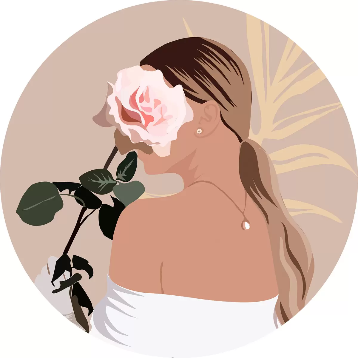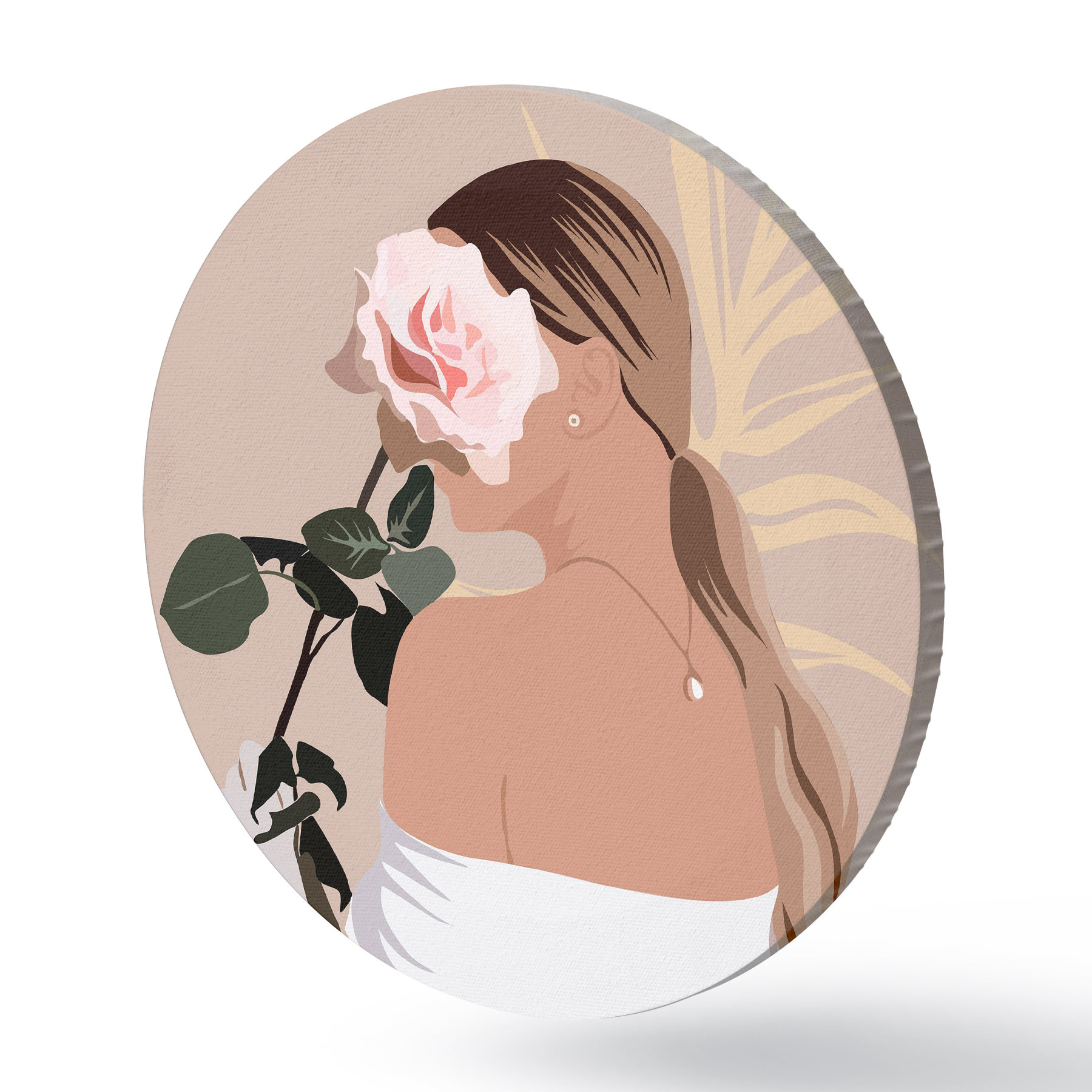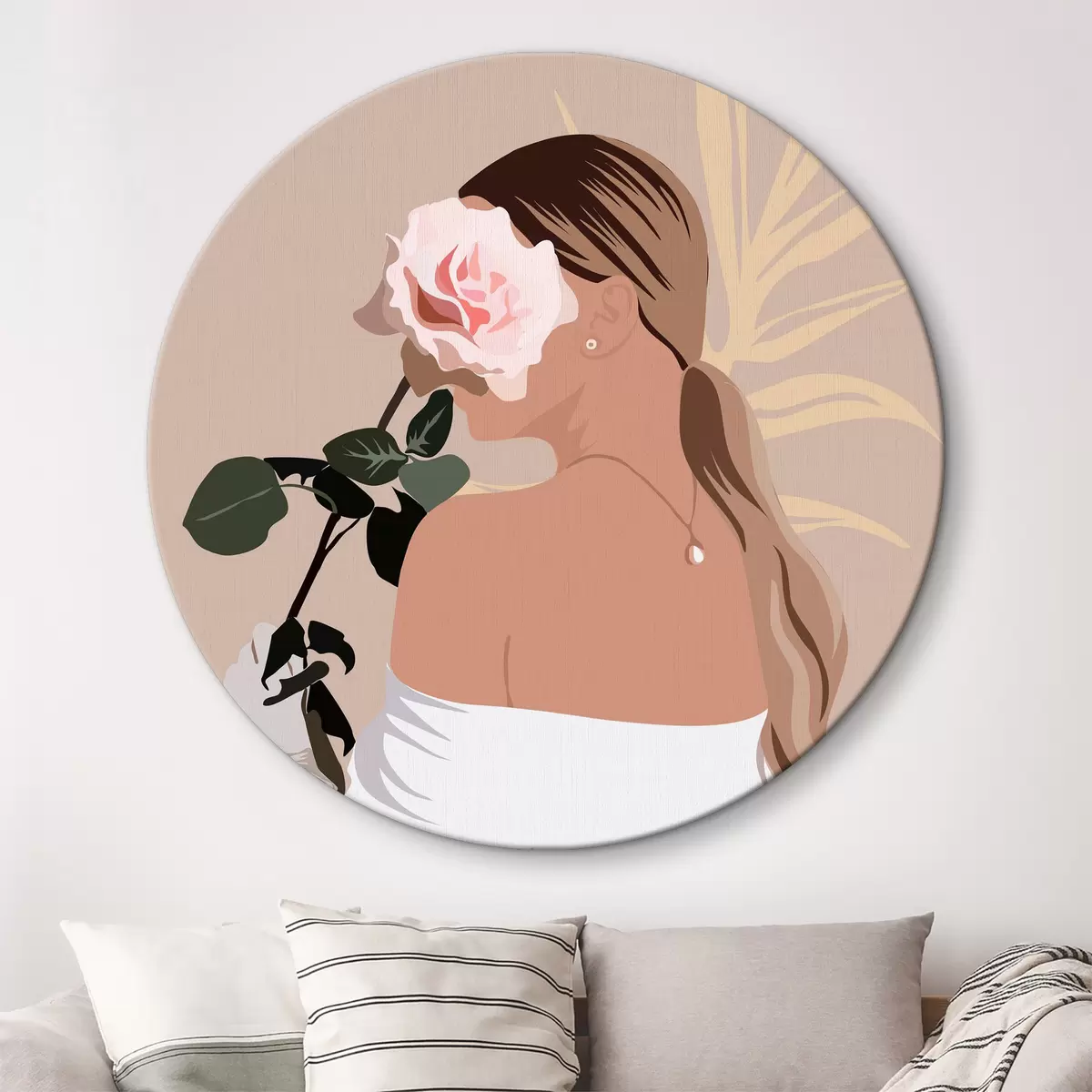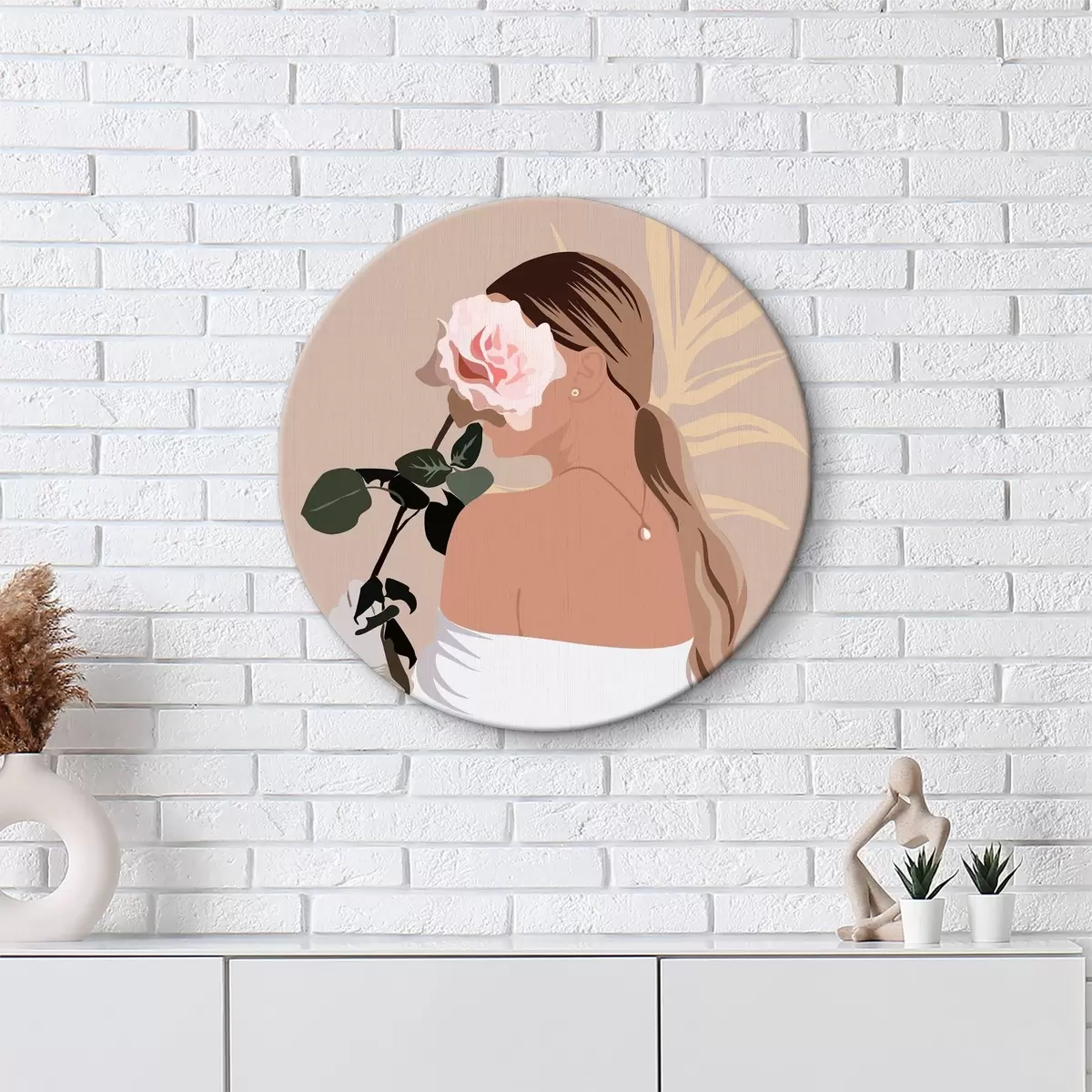 Tableaux ronds Fille avec rose rose style boho abstrait r36366