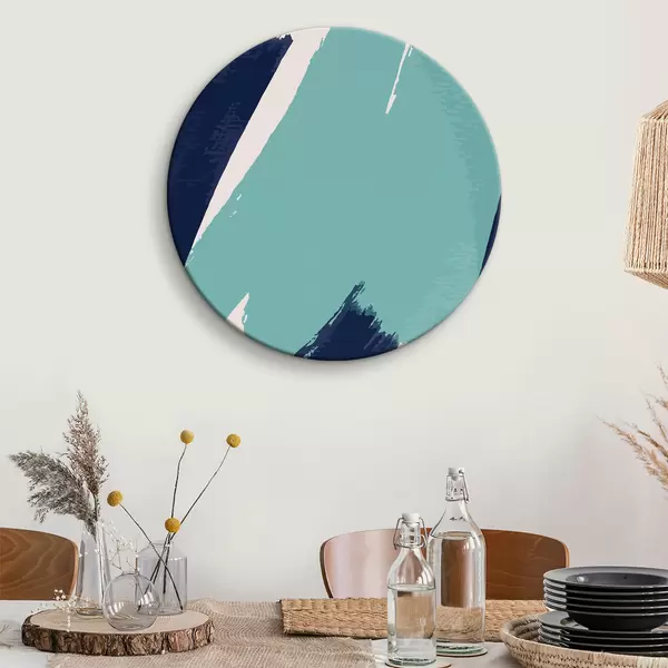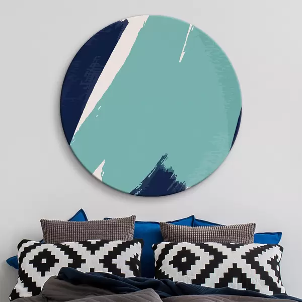 Tableaux ronds Coups de pinceau en bleu et turquoise r36416