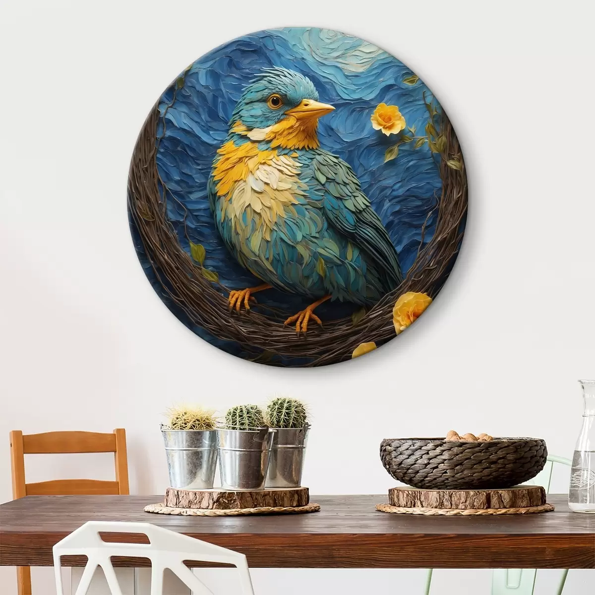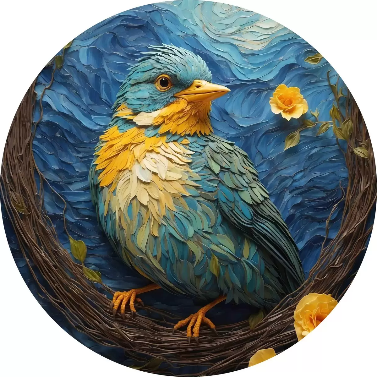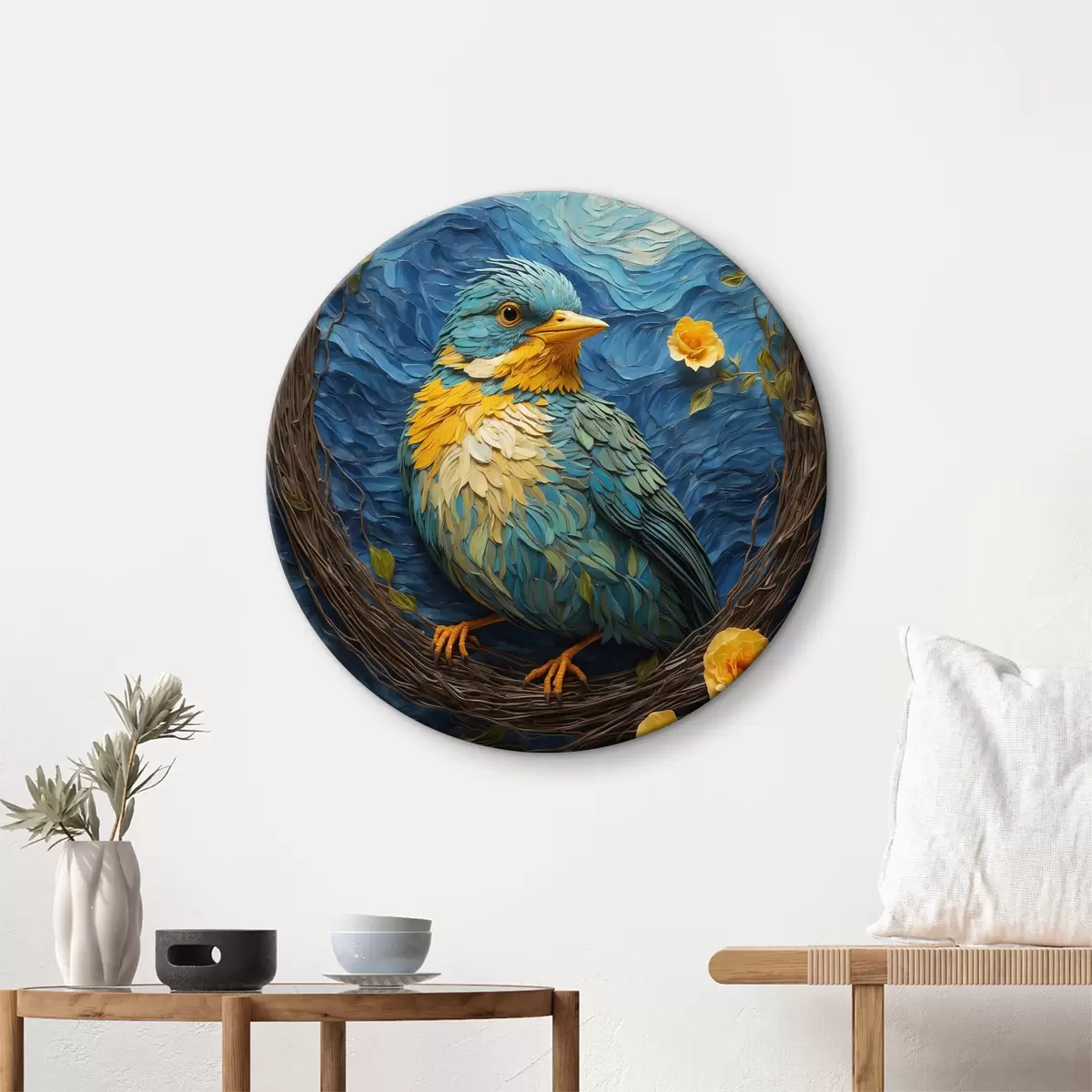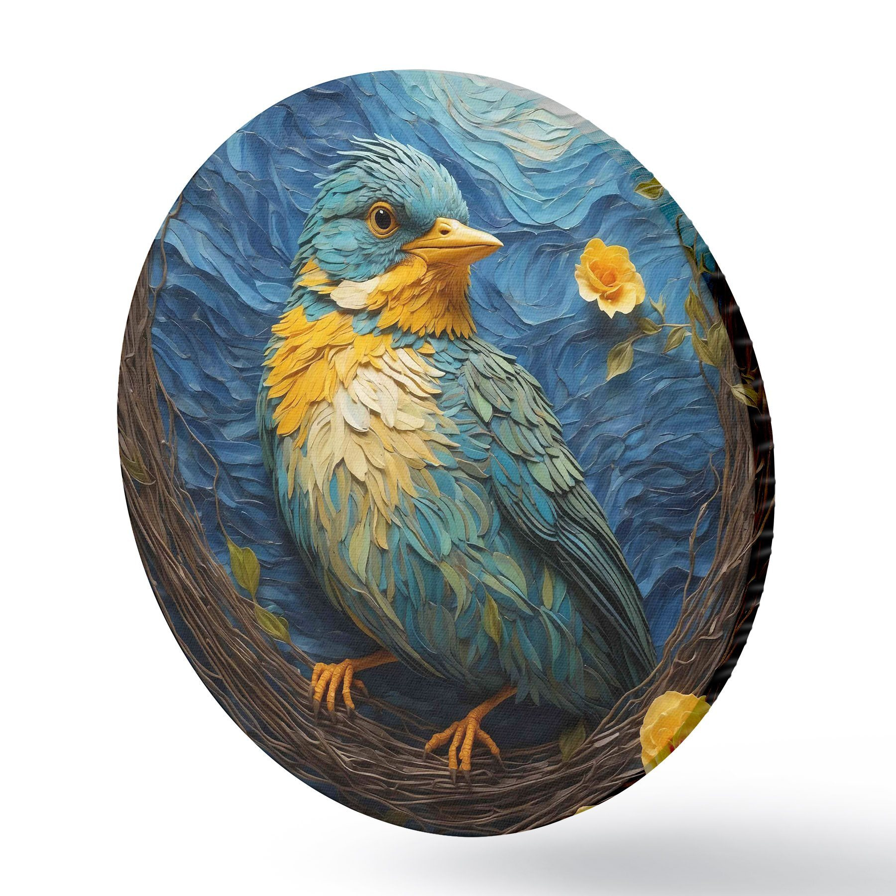 Tableaux ronds Un nid vibrant dans une couronne de fleurs tranquille r36440
