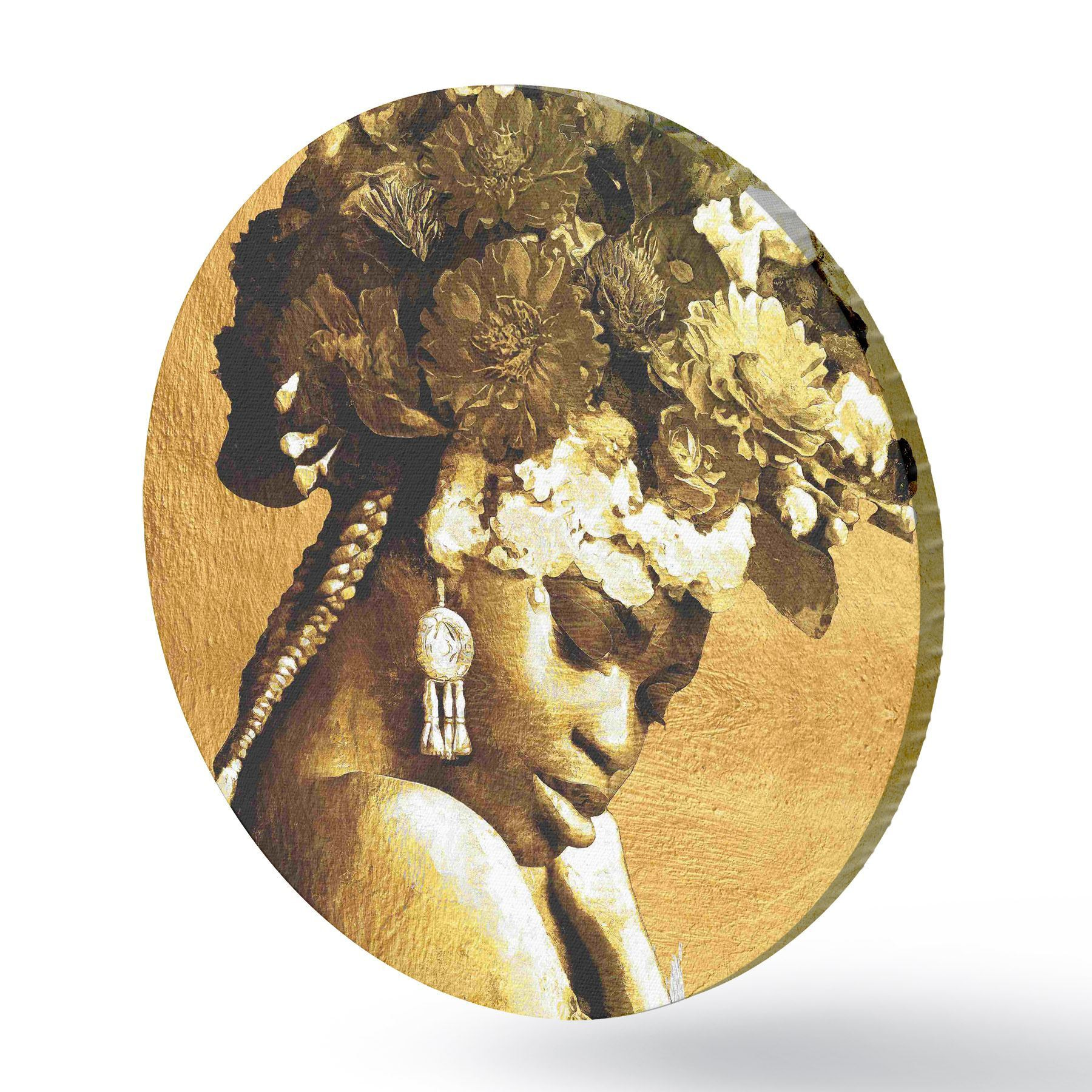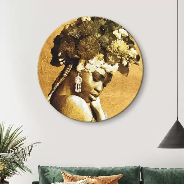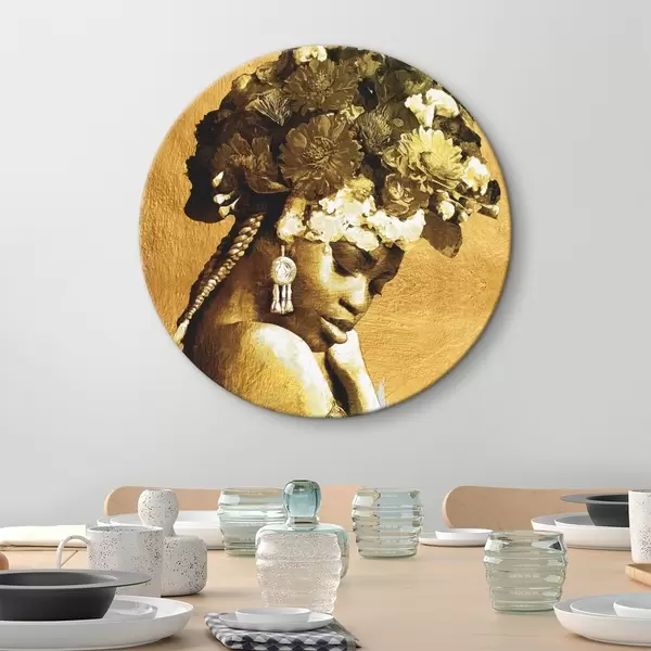 Tableaux ronds Femme avec des fleurs sur la tête r36532
