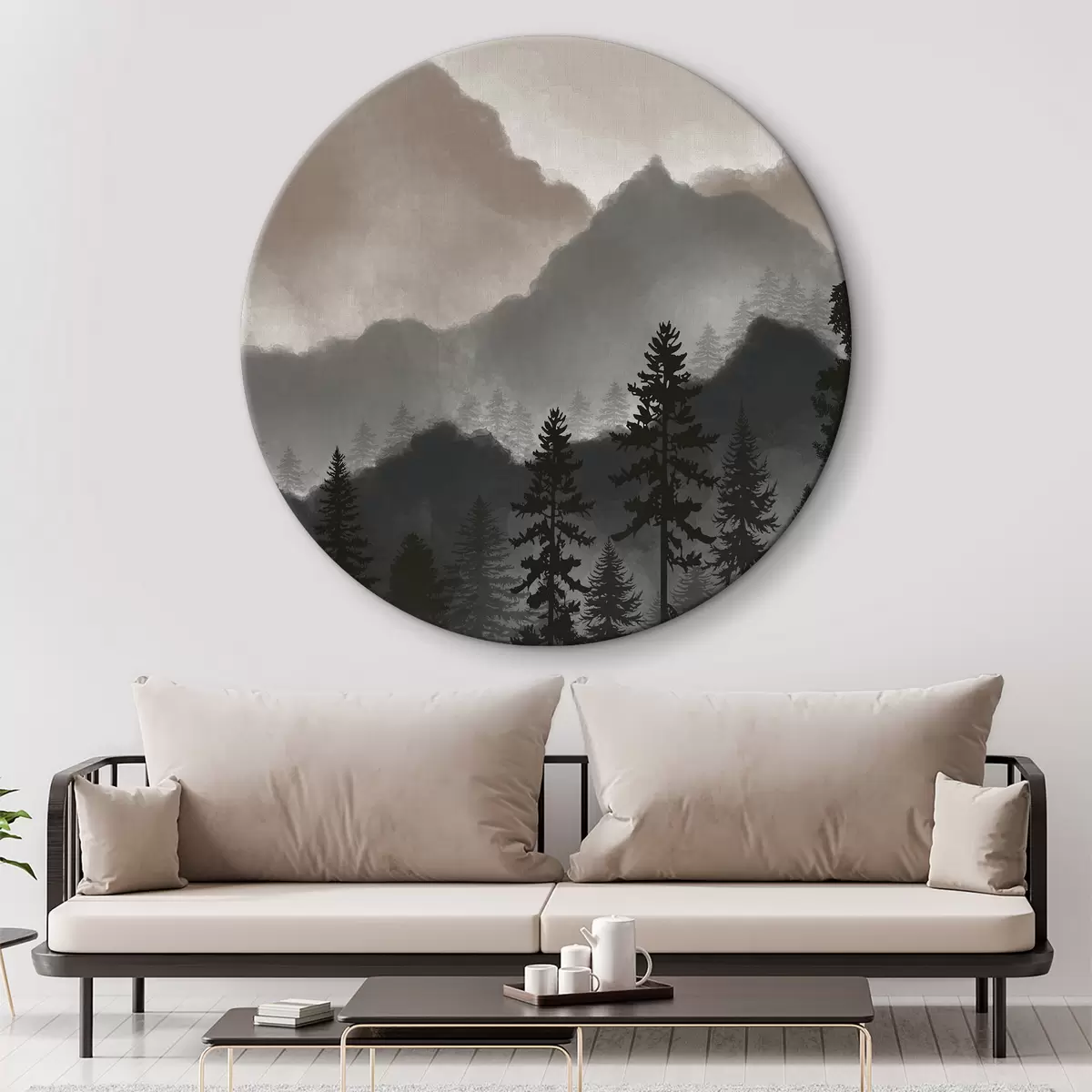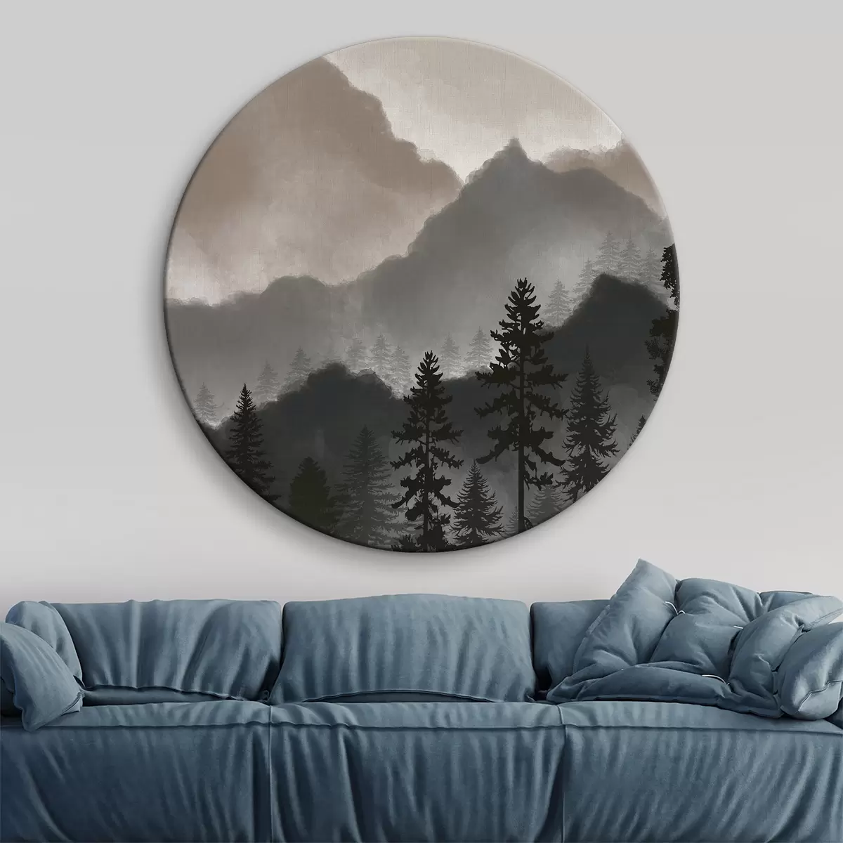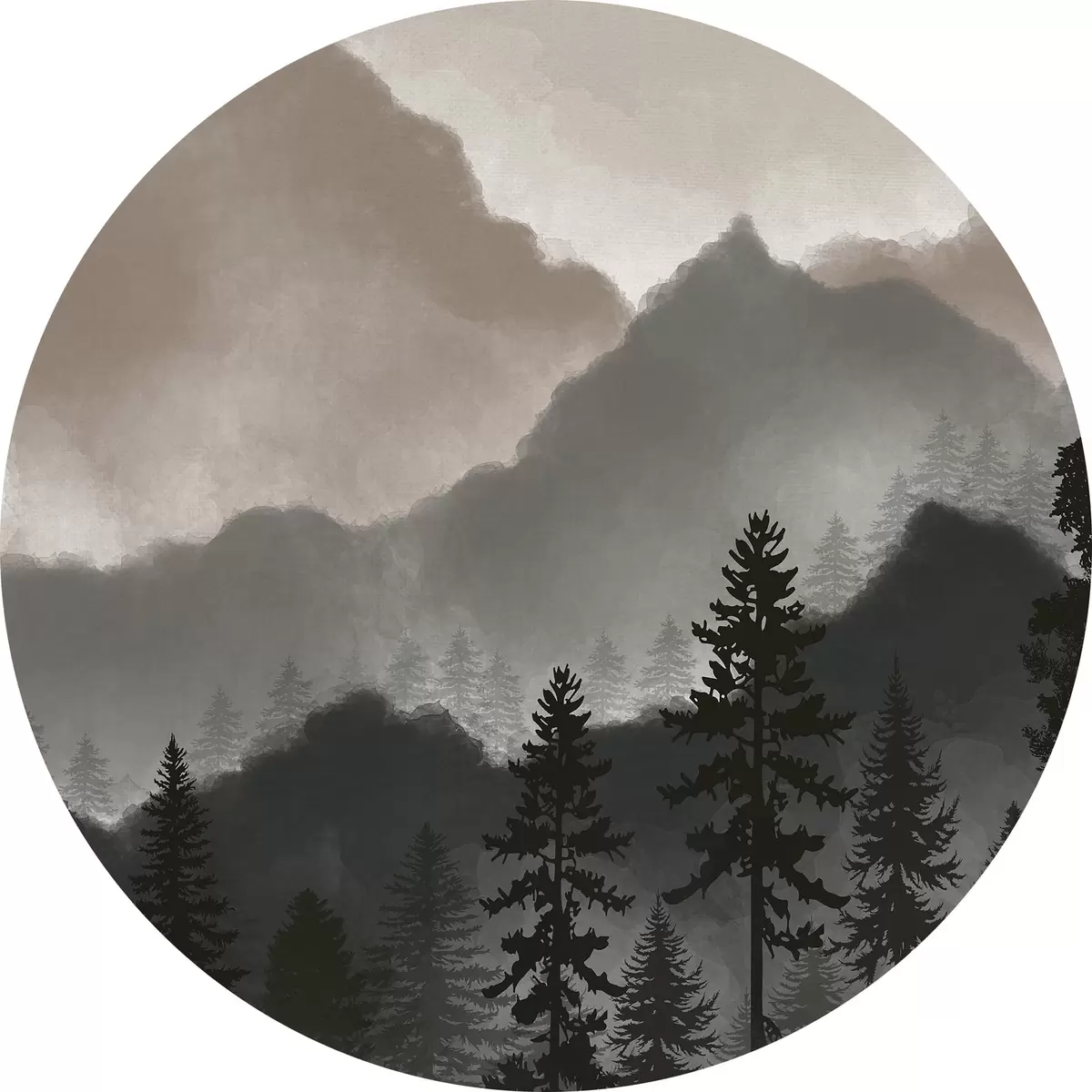 Tableaux ronds Montagnes aquarelles abstraites r36607v1