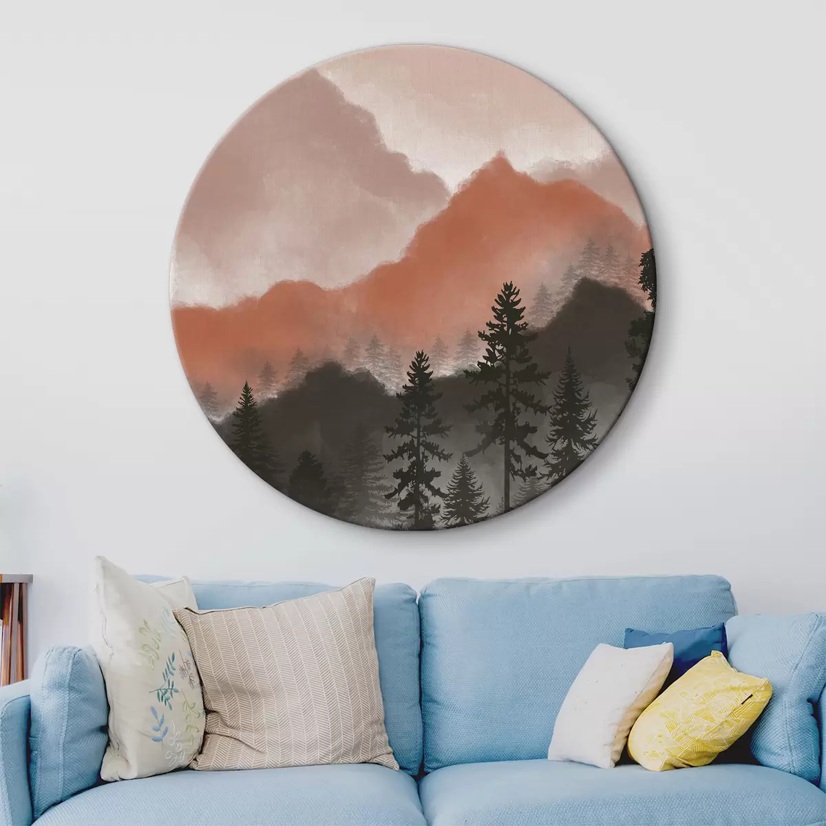 Tableaux ronds Montagnes aquarelles abstraites r36607v2