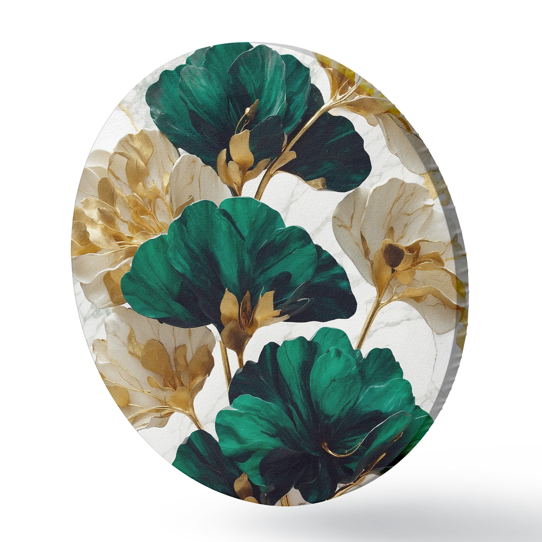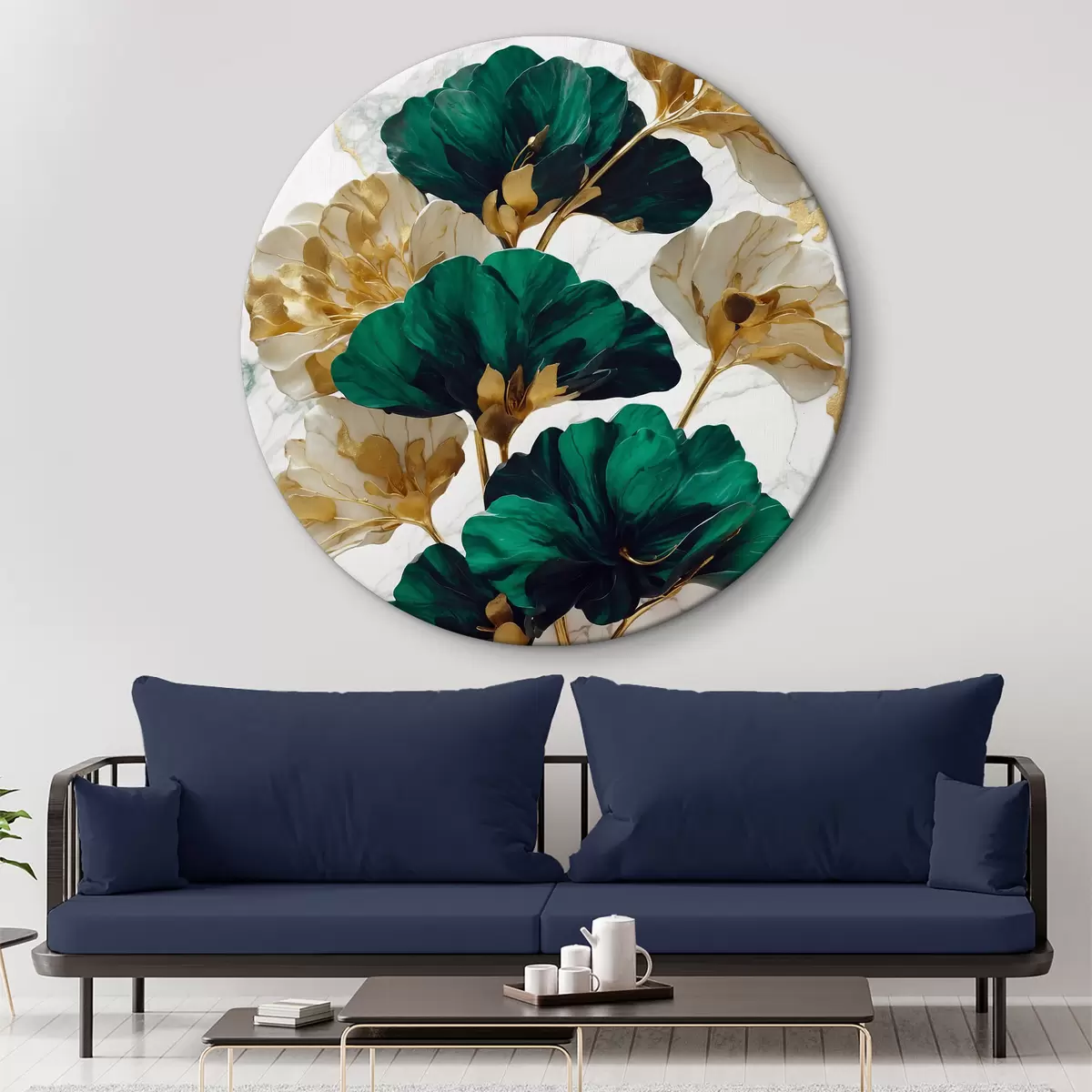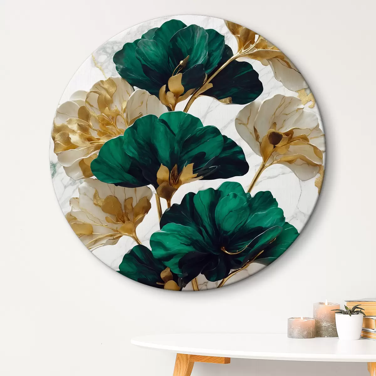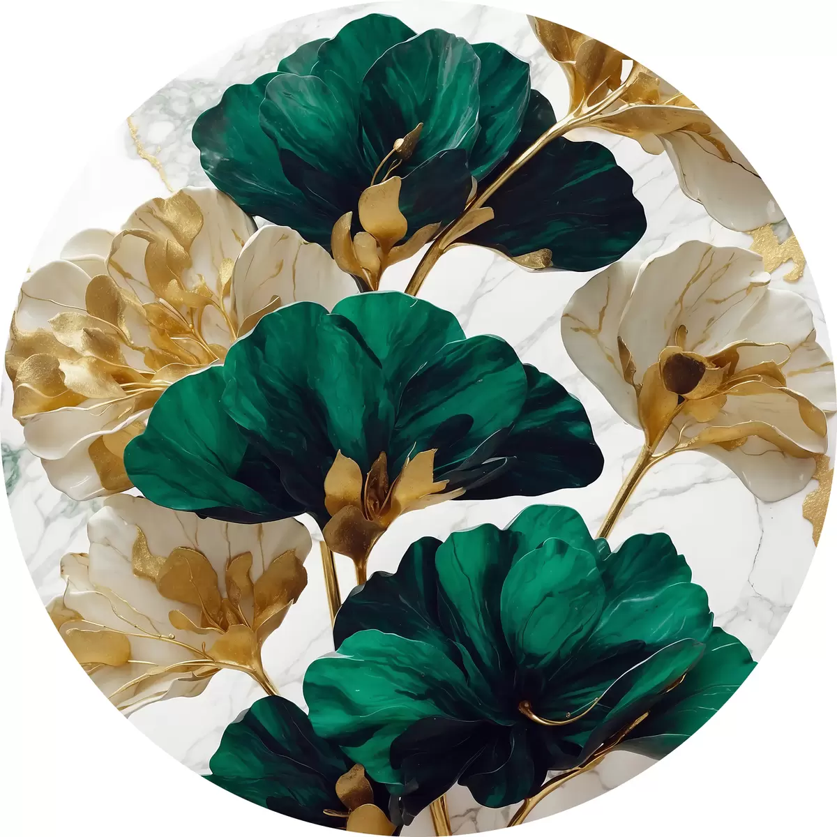 Tableaux ronds Fleurs vertes et blanches sur fond de marbre blanc r36646