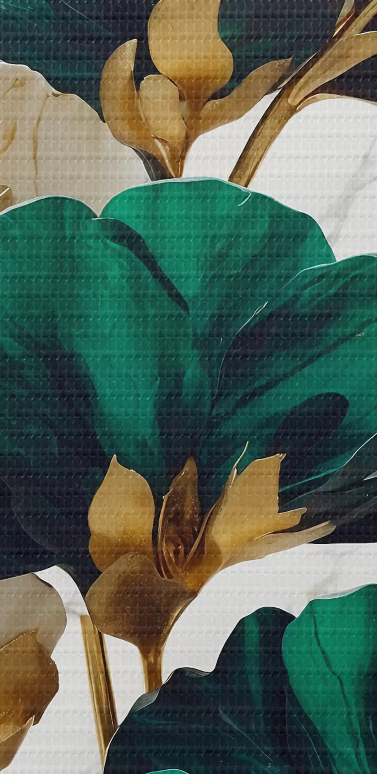 Image Fleurs vertes et blanches sur fond de marbre blanc Nr r36646