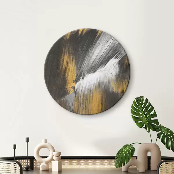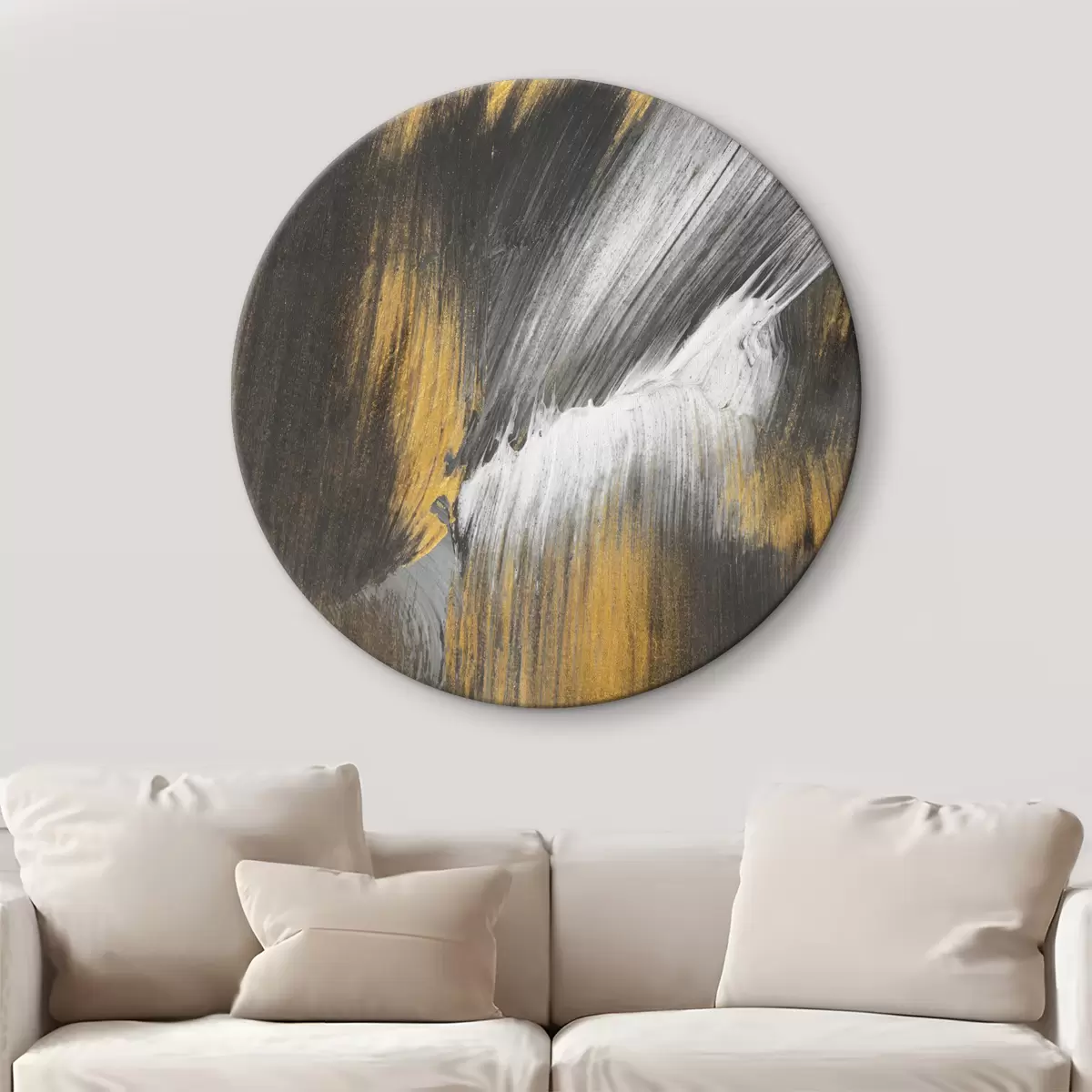 Tableaux ronds Coups de pinceau dans les tons de gris et d'ambre r36672