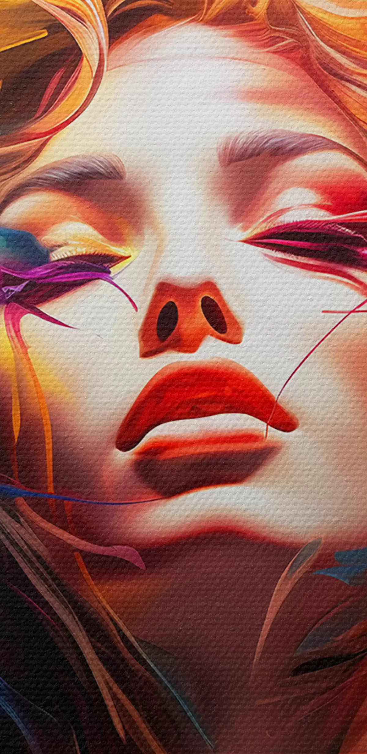 Trois types de matériaux peuvent être commandés : Economic Canvas - matériau dense et durable pour l'impression numérique, identique à la toile de peintre, surface imperméable, reproduction réaliste des détails, matériau à grain moyen. Premium Canvas - la texture ressemble à celle d'une toile de peintre (petits fils entrelacés). Reproduction douce et détaillée de l'image sur une surface mate. Eco-Premium - tissu 100 % coton de haute qualité. Grâce aux fibres naturelles de coton, le matériau est durable et résistant à l'usure. Excellente reproduction des couleurs et des détails.