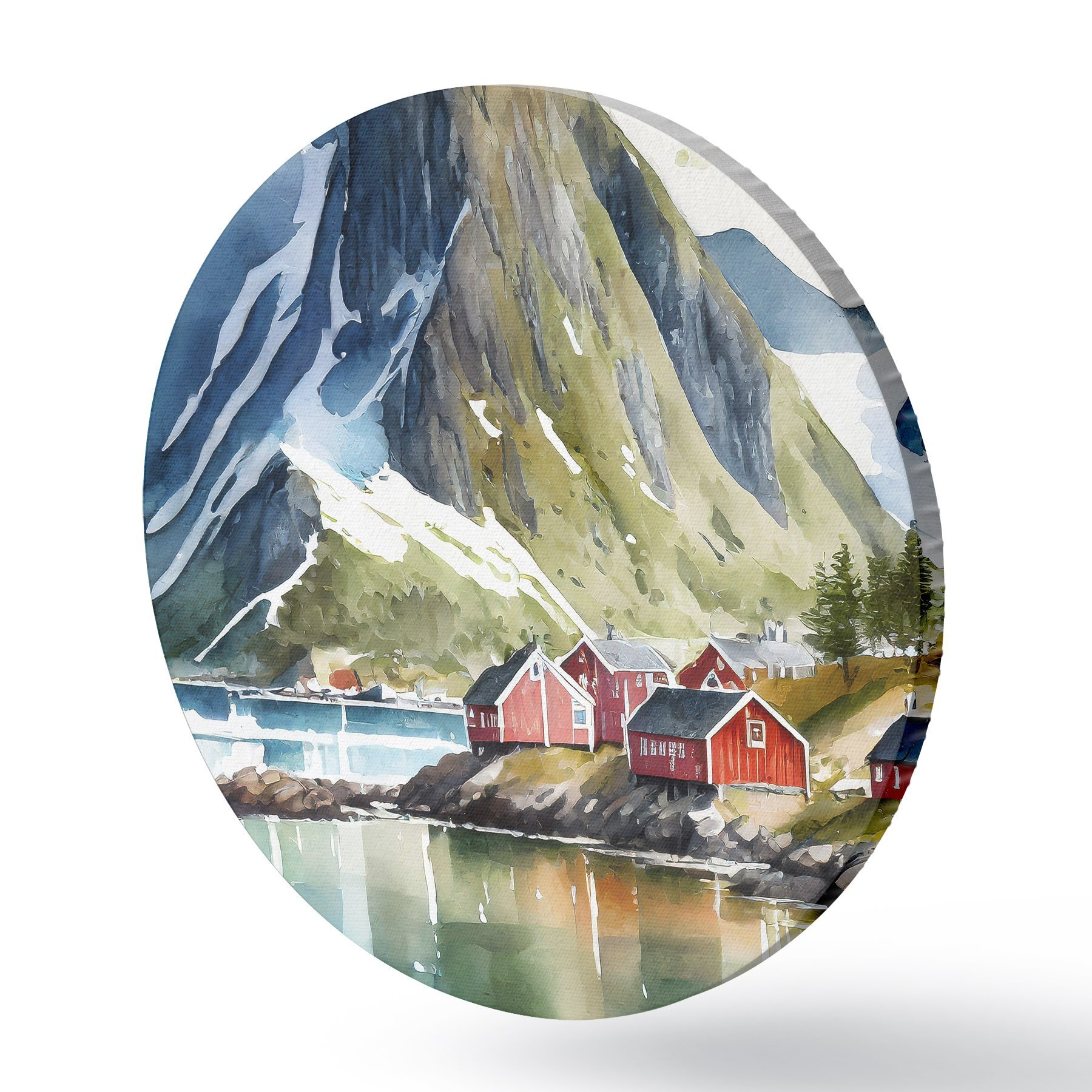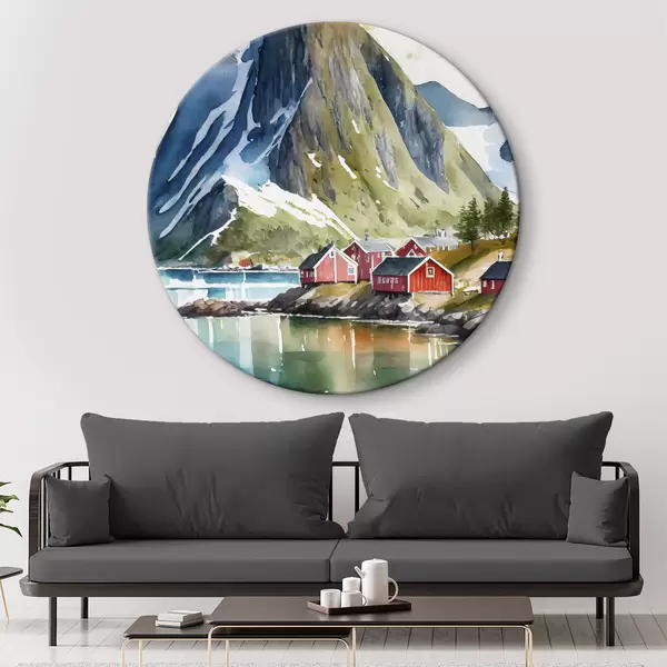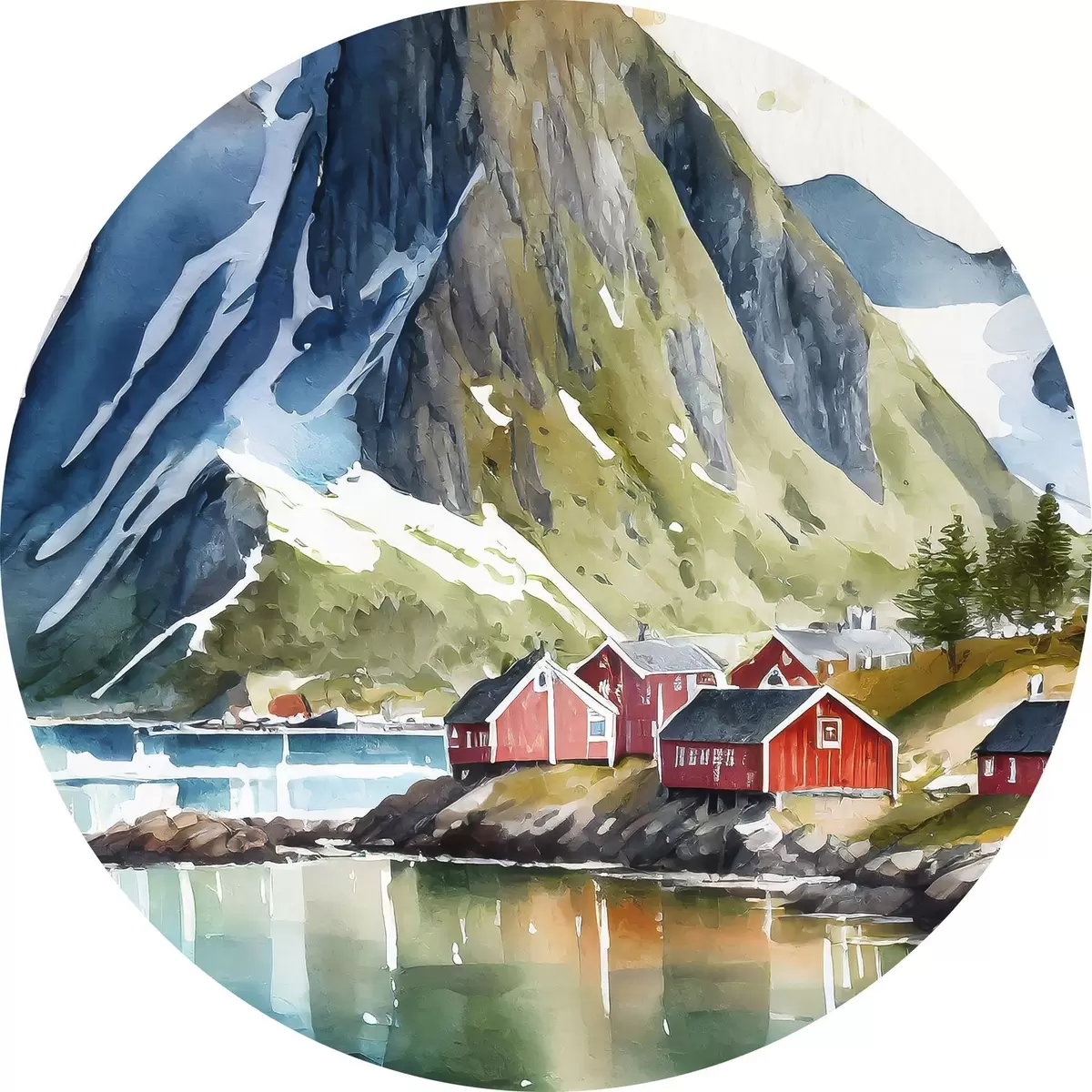 Tableaux ronds Norvège, nature, aquarelle, Lofoten r36685
