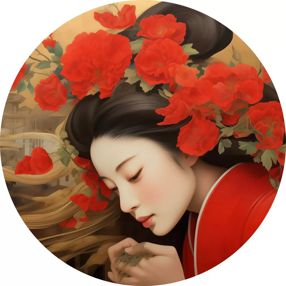 Tableaux ronds Femme avec des fleurs dans les cheveux r36809
