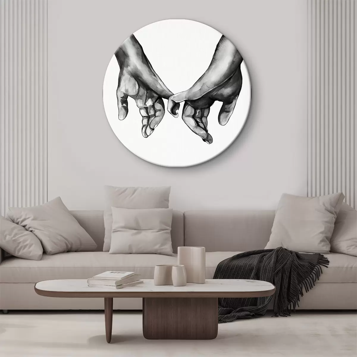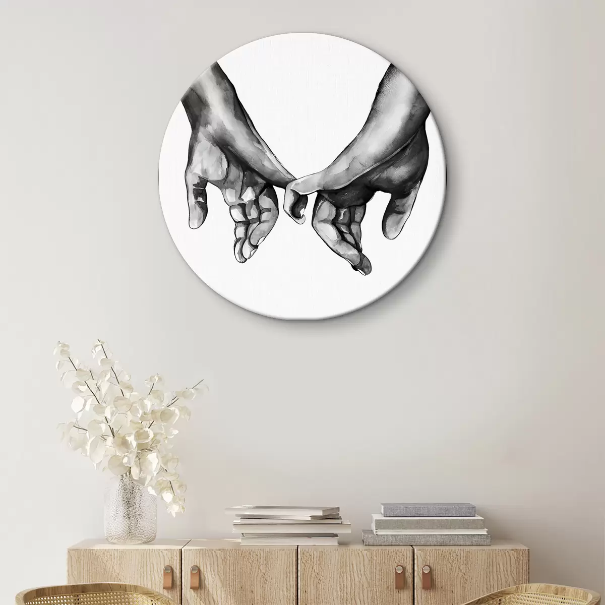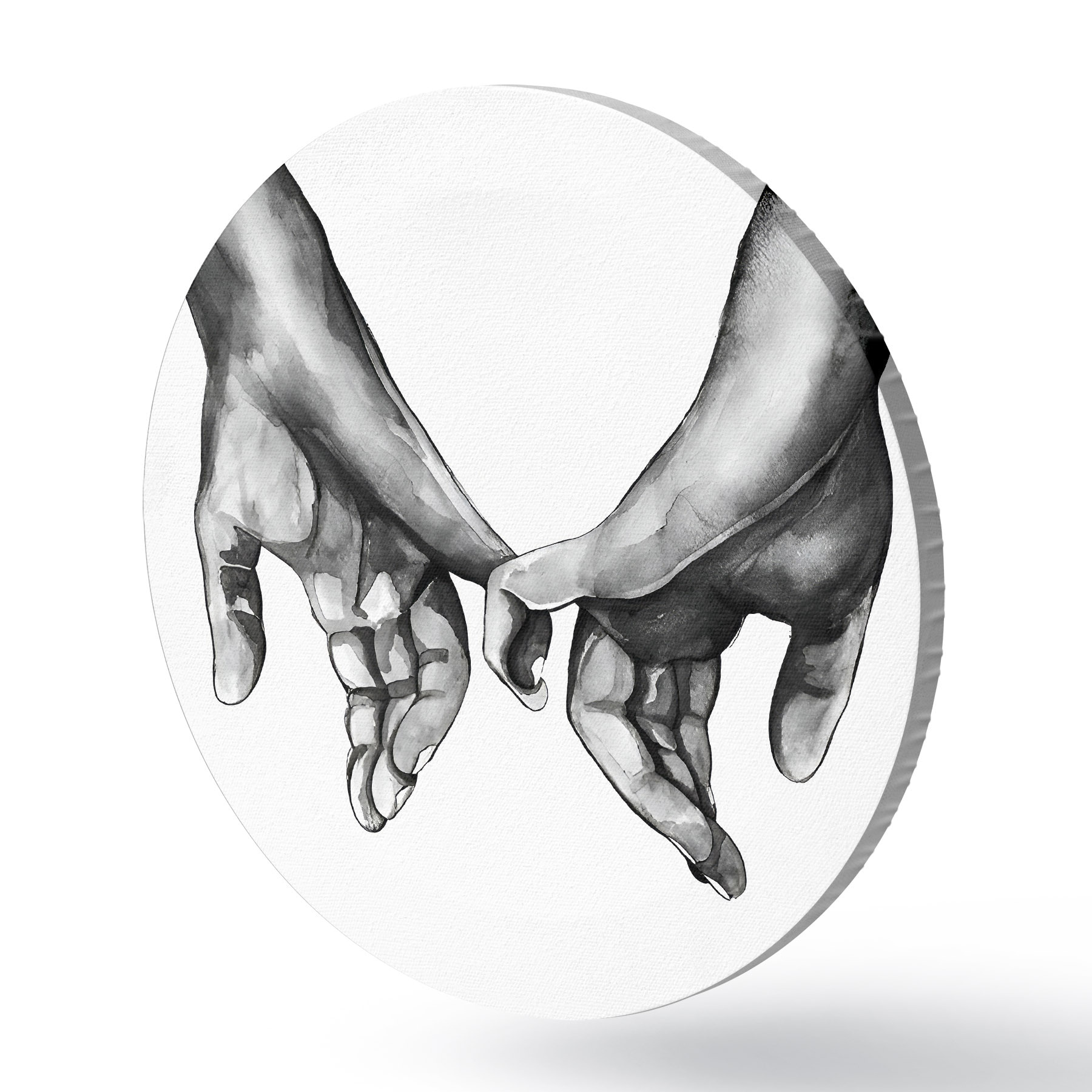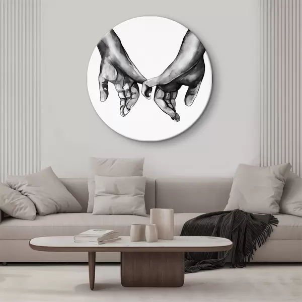 Tableaux ronds Noir et blanc se tenant la main sur fond blanc r36848