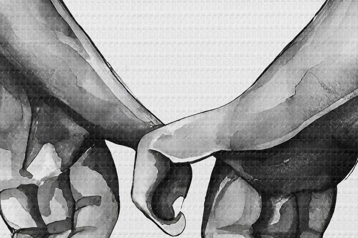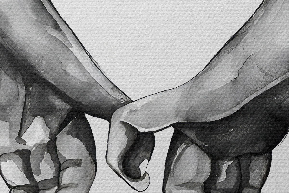 Image Noir et blanc se tenant la main sur fond blanc Nr r36848