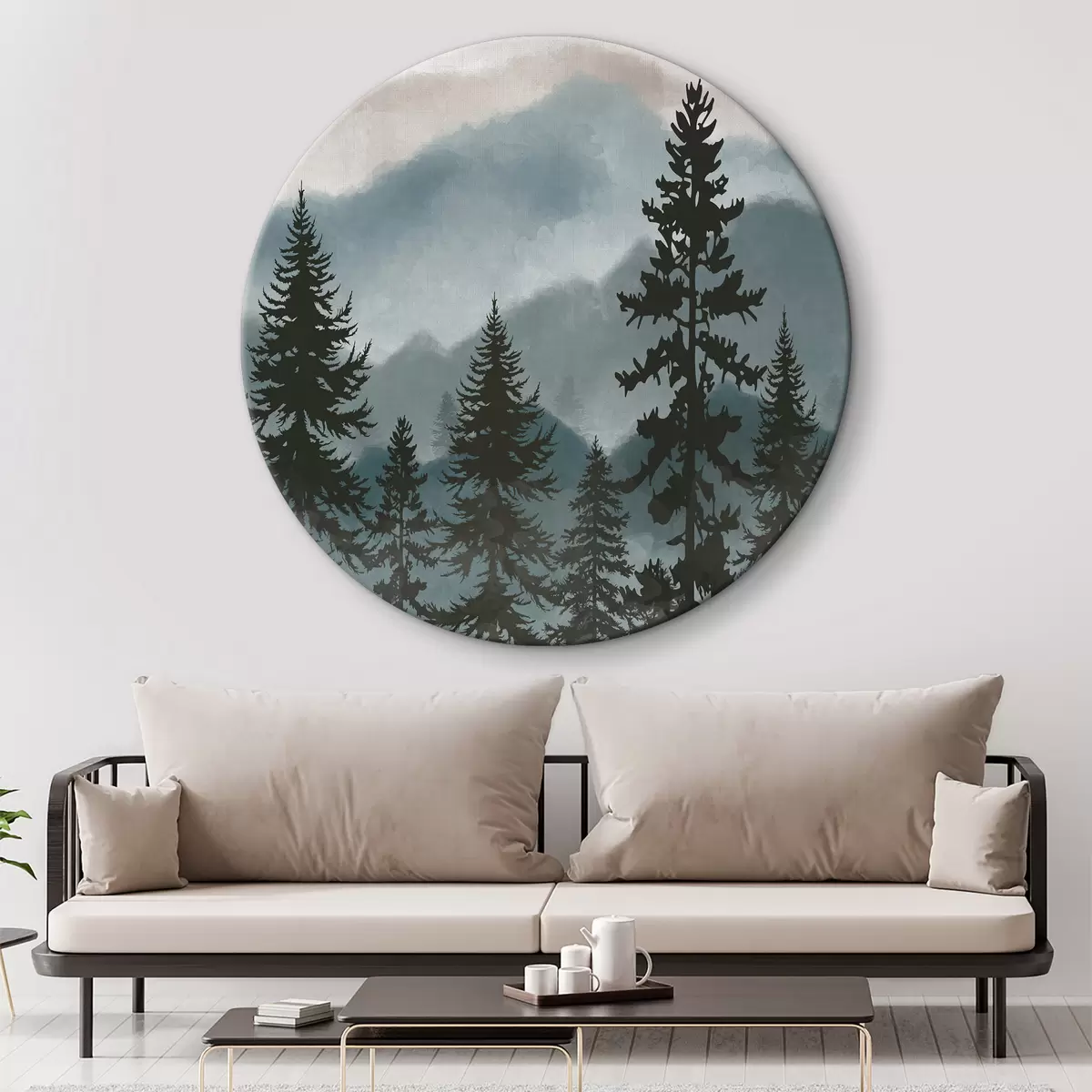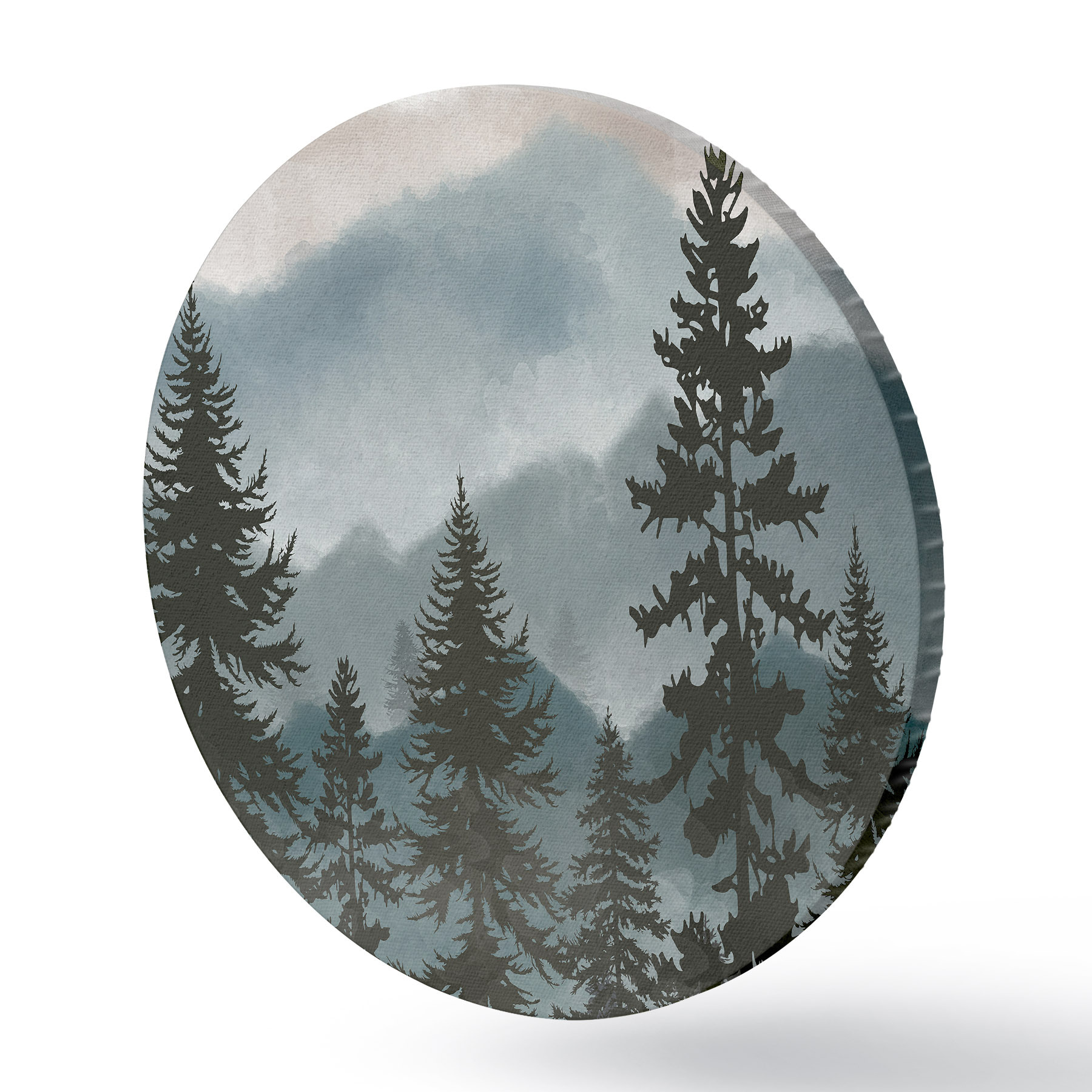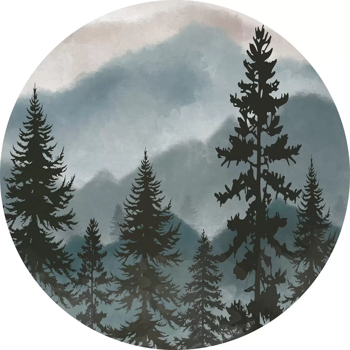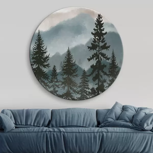 Tableaux ronds Paysage de montagne avec sapins en aquarelle r37017