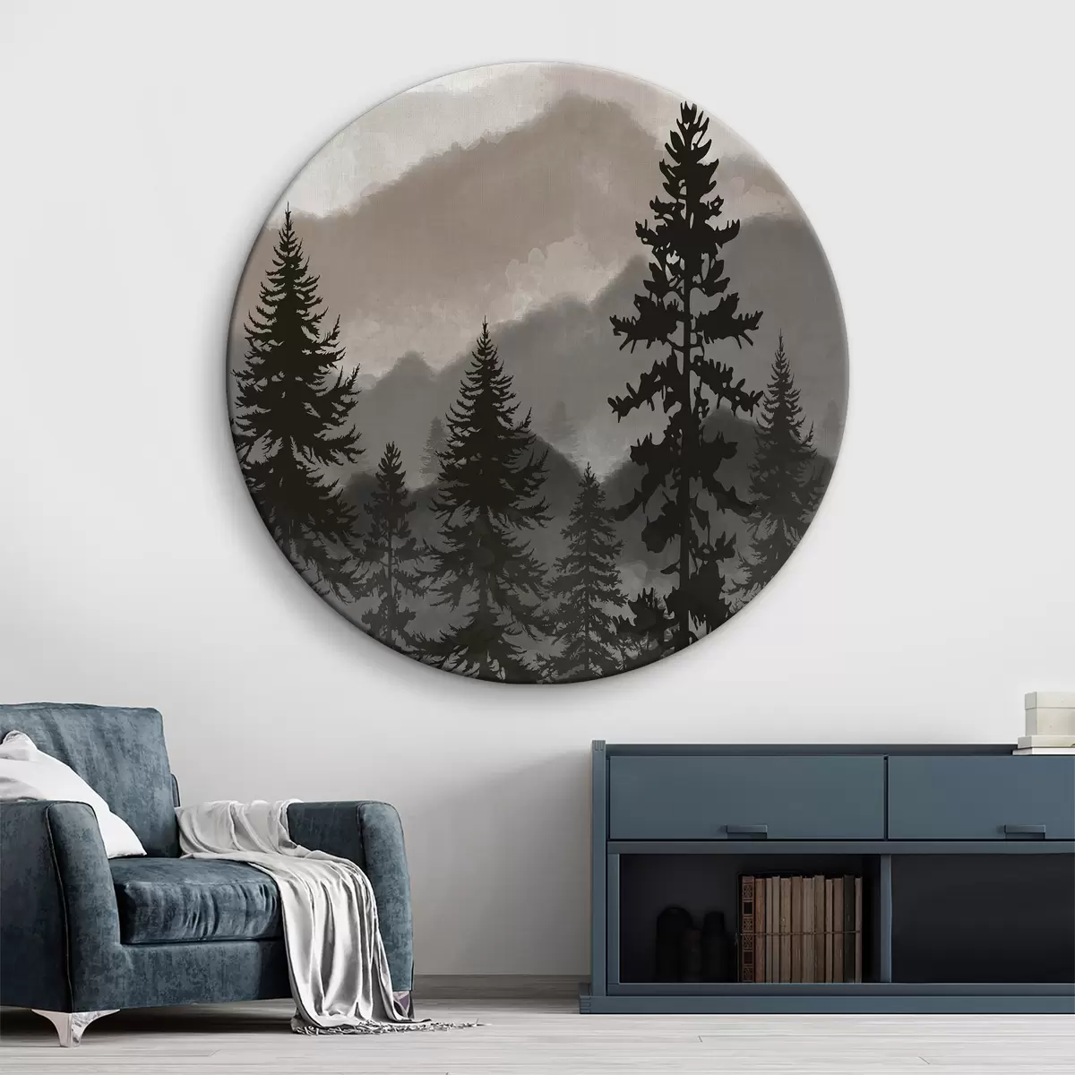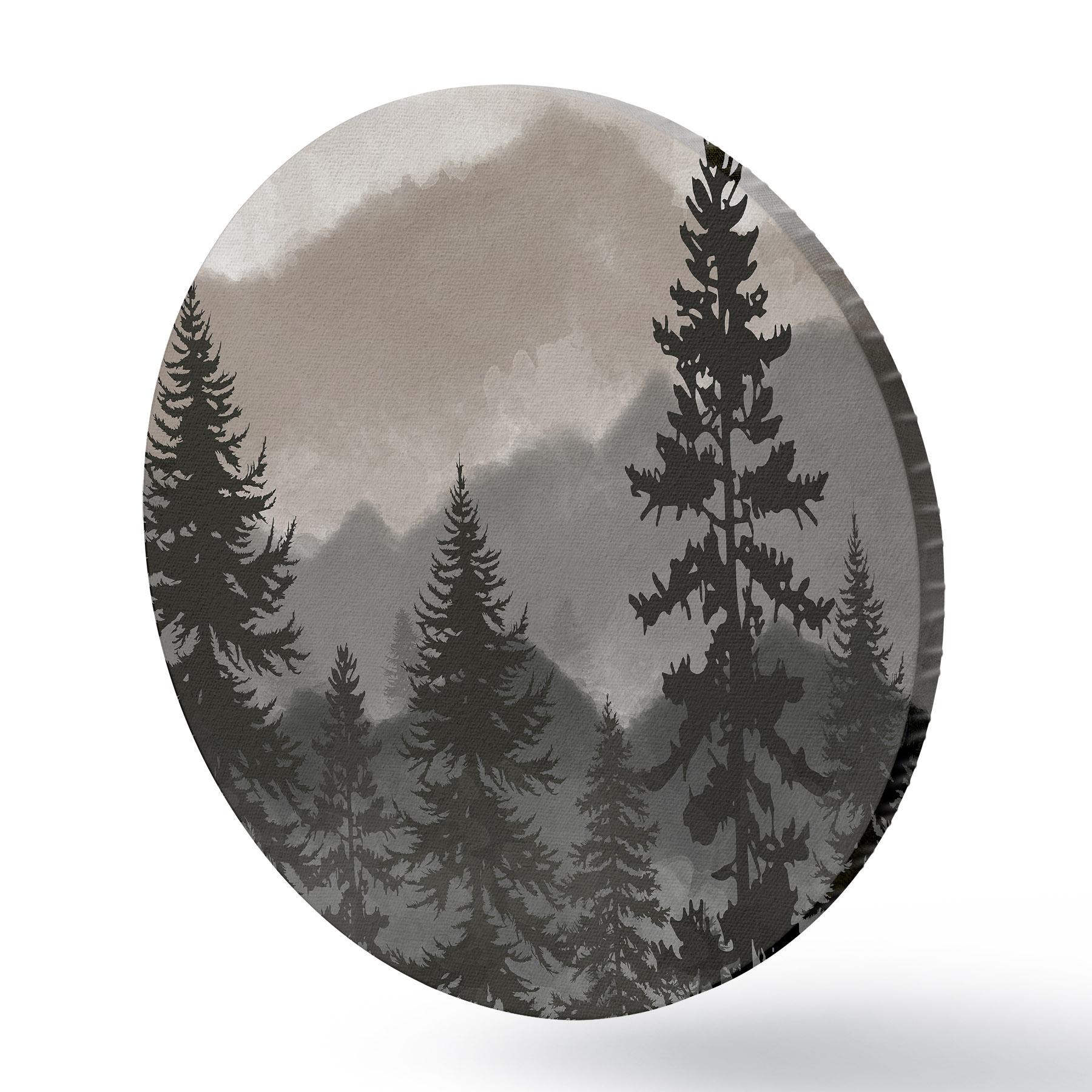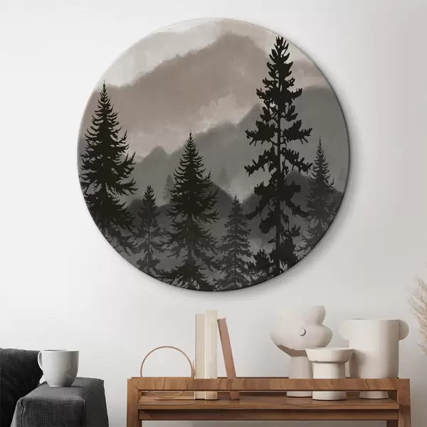 Tableaux ronds Paysage de montagne avec sapins en aquarelle r37017v1