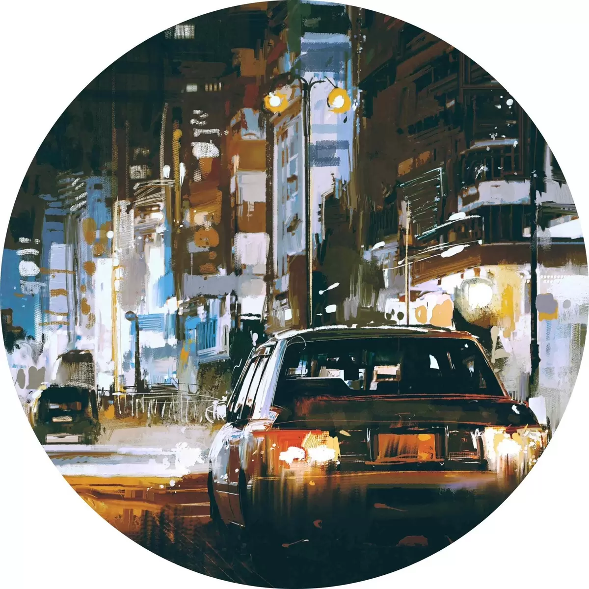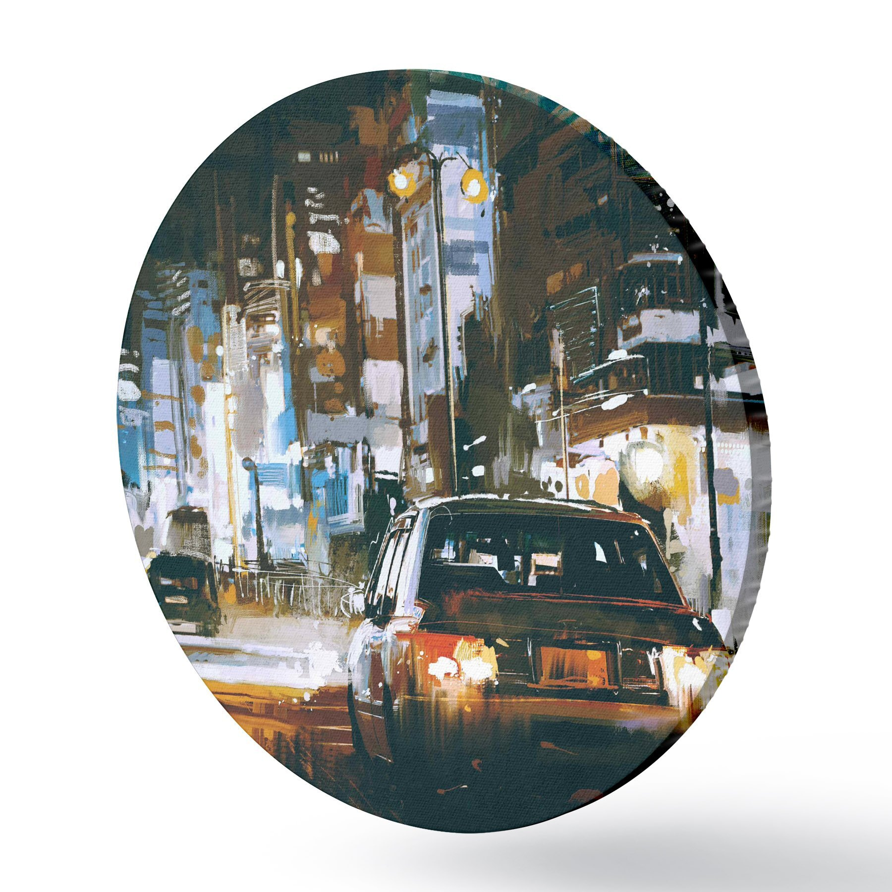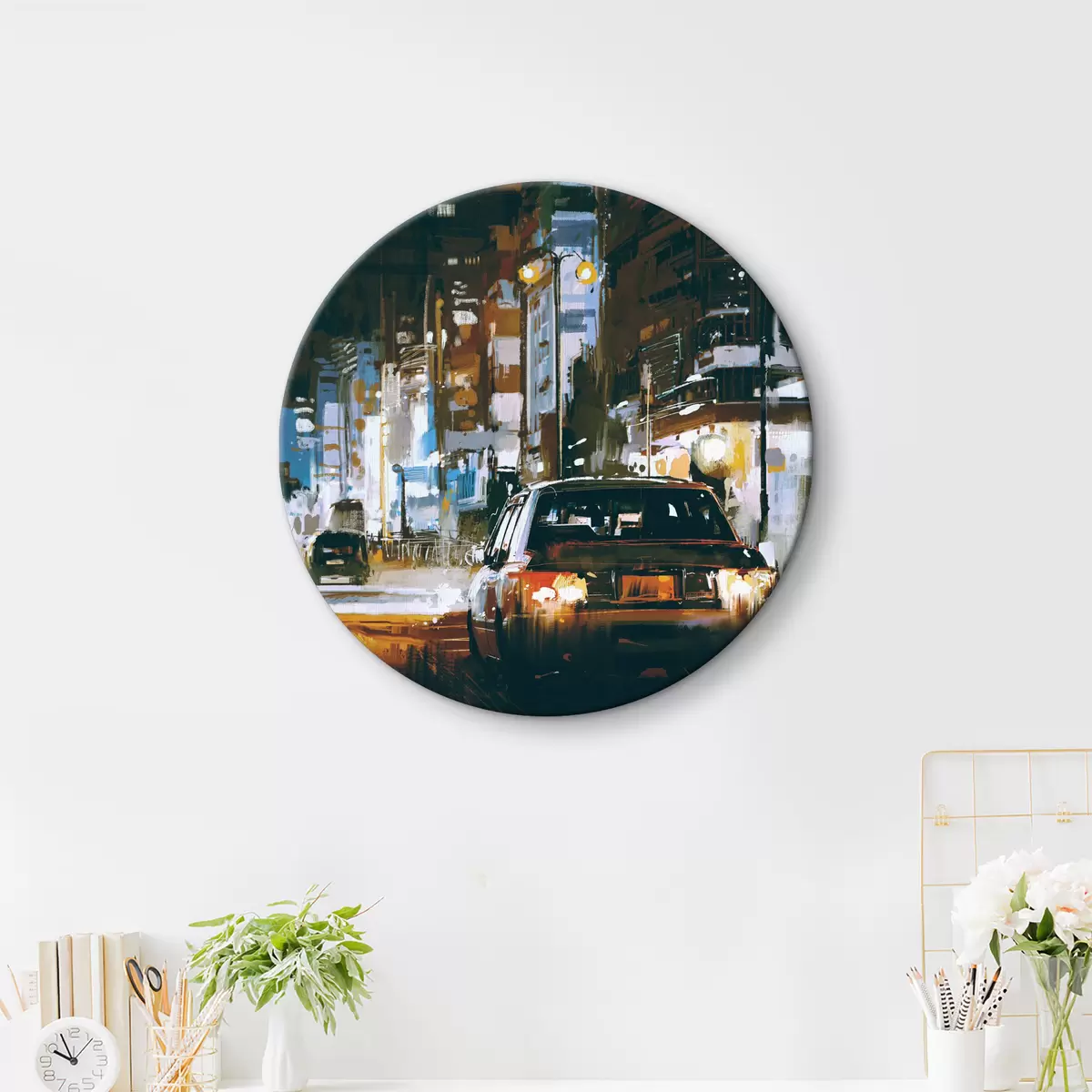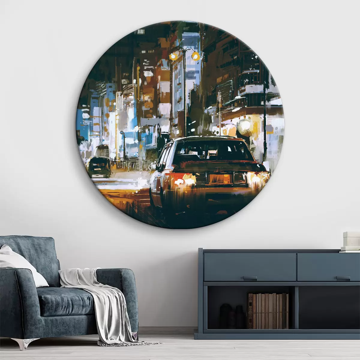 Tableaux ronds Paysage urbain et voiture de nuit r37085