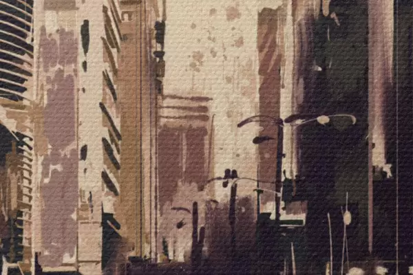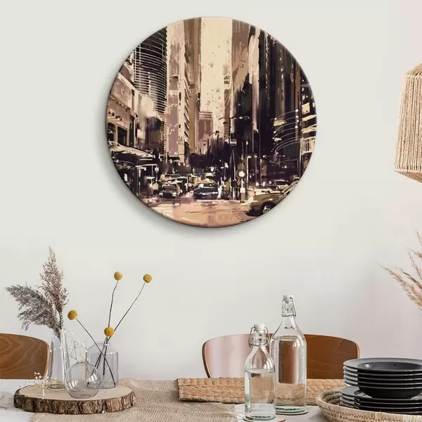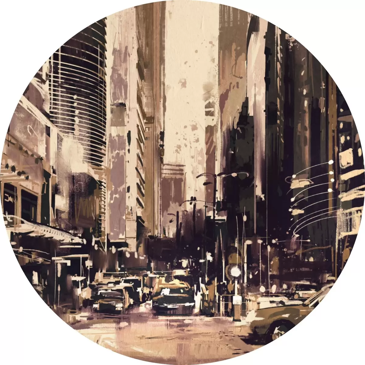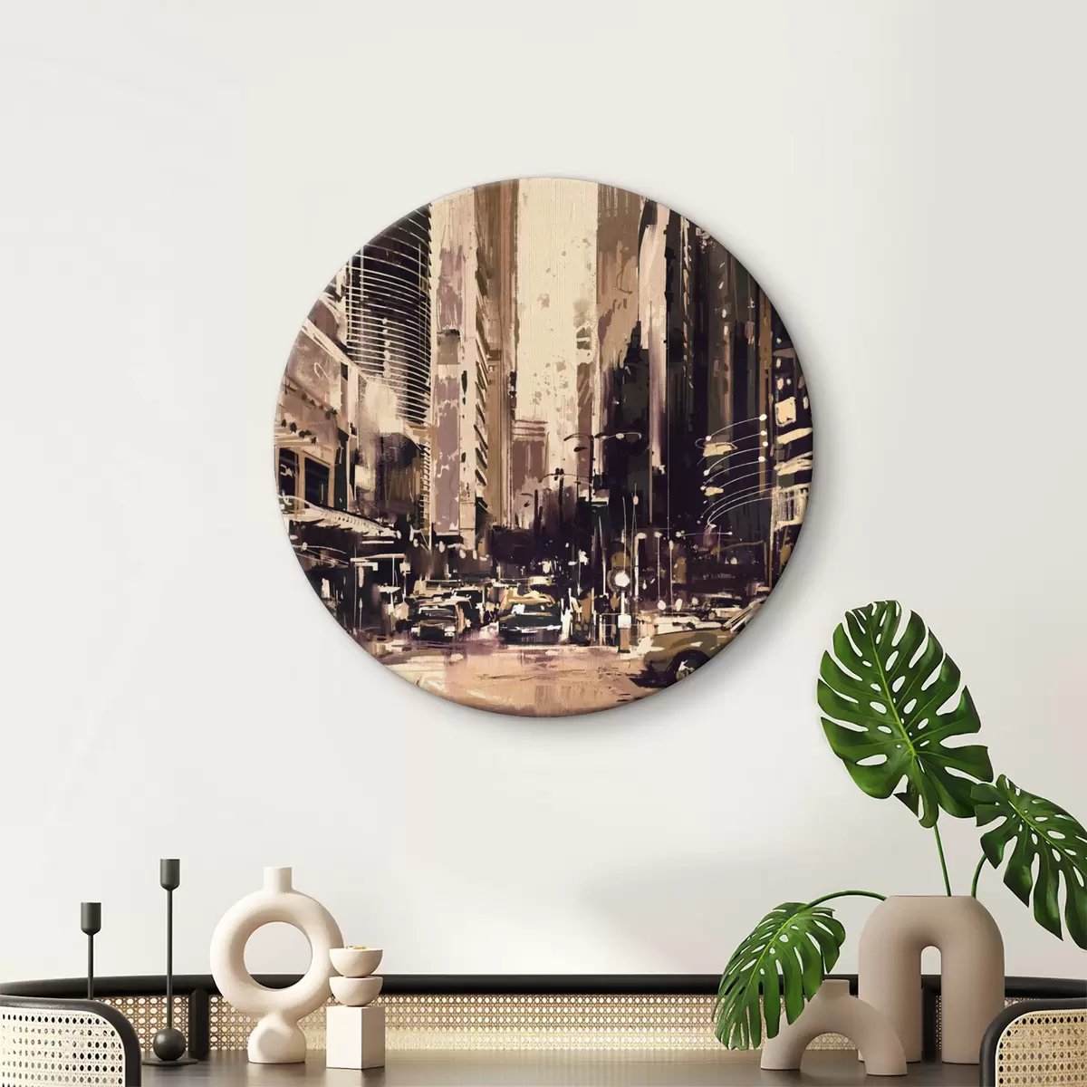 Tableaux ronds Rue de la ville avec de grands bâtiments r37094