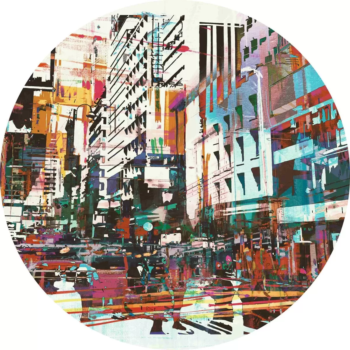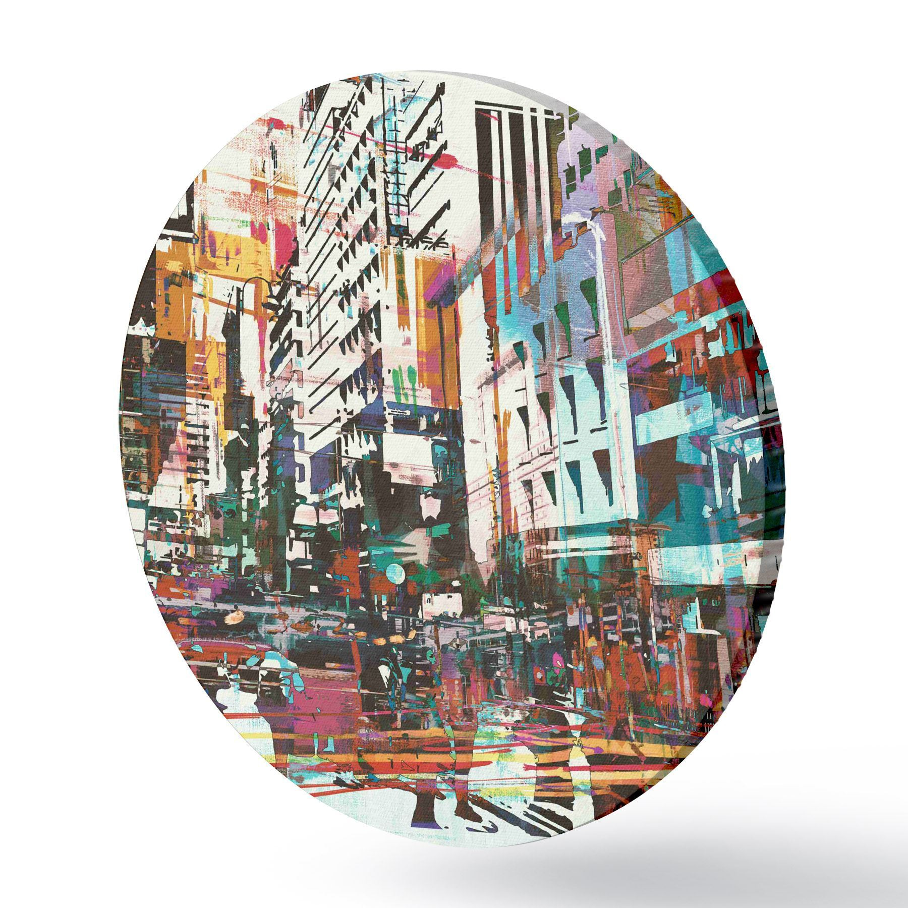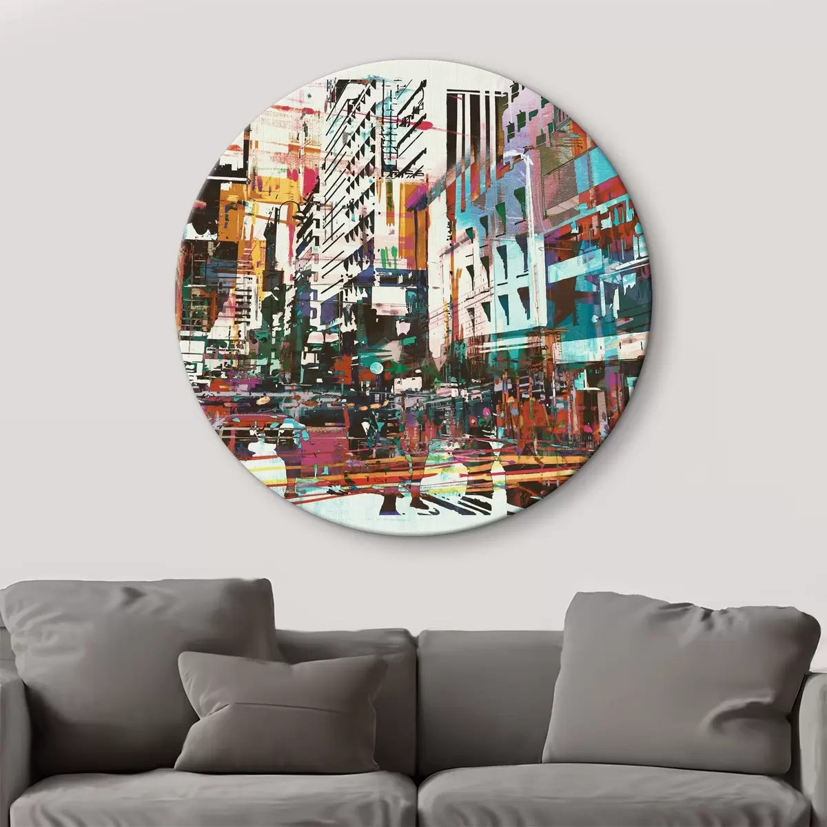Tableaux ronds Rue de métropole animée avec des temples en style grunge r37101