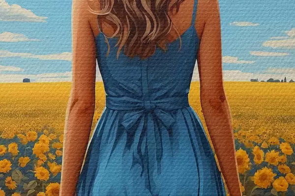 Image Femme en robe bleue dans un champ de tournesols Nr r37164