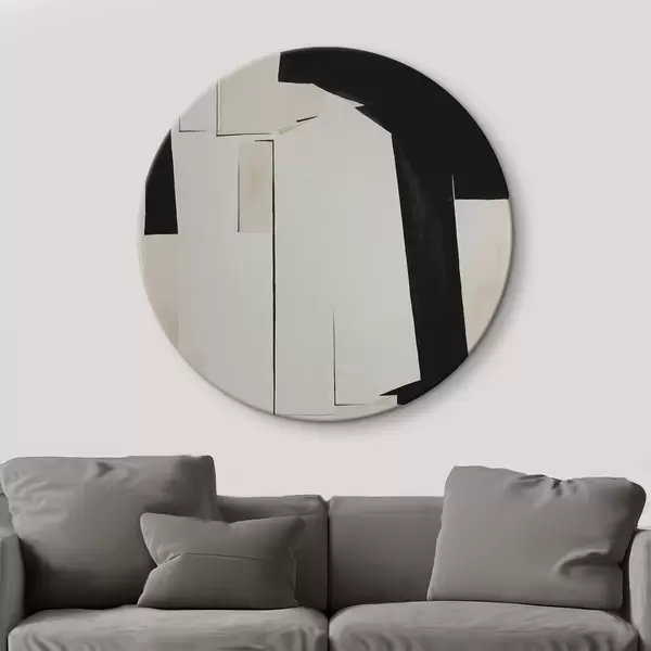Tableaux ronds Abstraction aquarelle en noir et blanc r37169