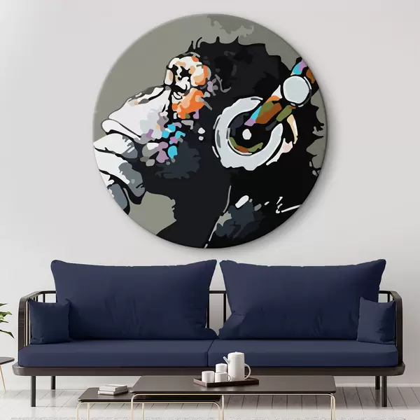 Tableaux ronds Singe avec un casque sur fond gris r37269