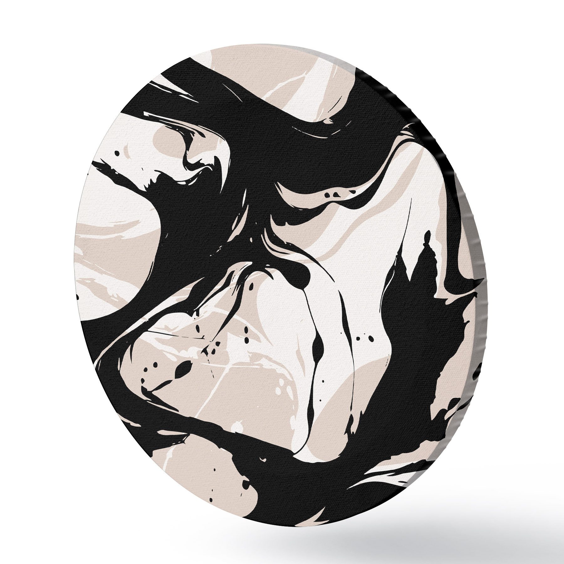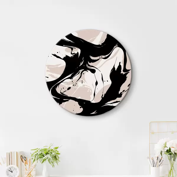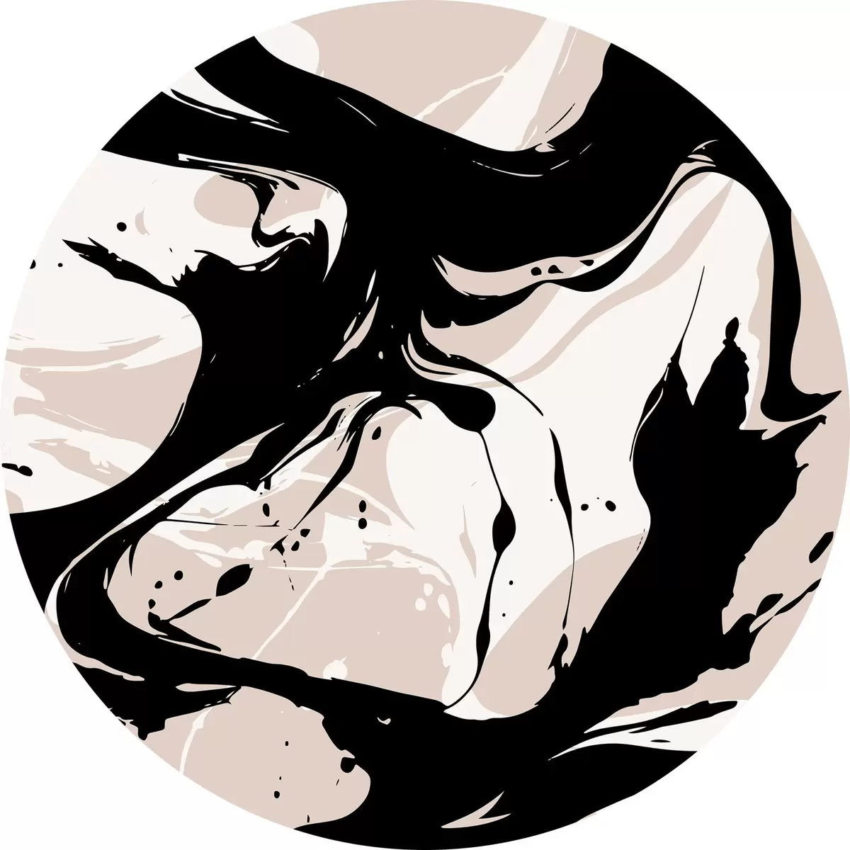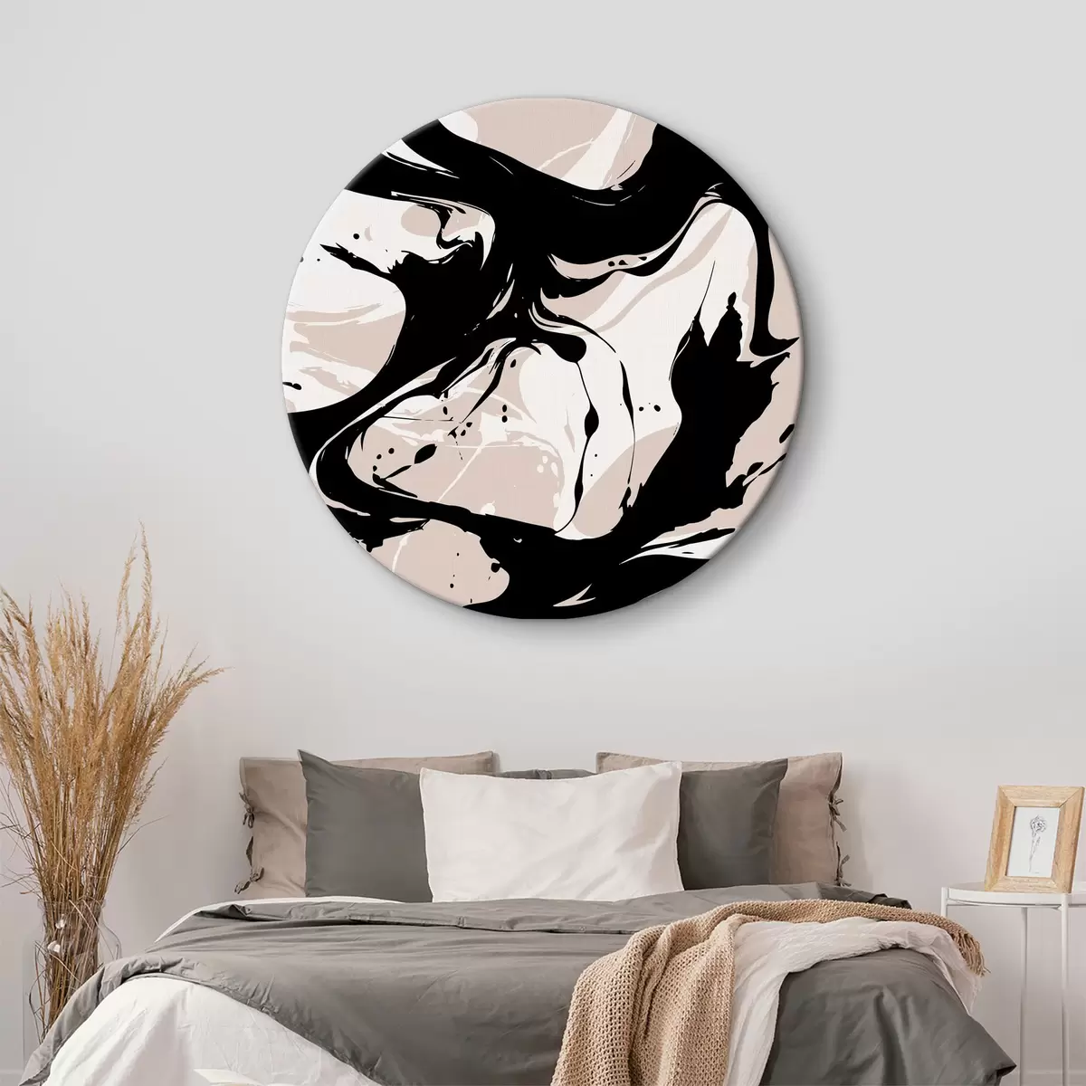 Tableaux ronds Tourbillon noir et blanc sur fond beige r37286