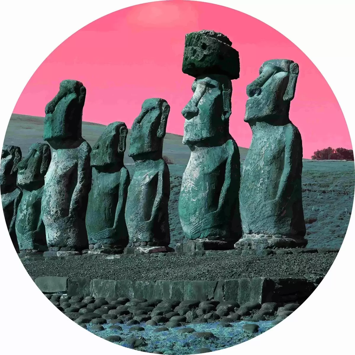 Tableaux ronds Statues anciennes sous un ciel surréaliste r37288