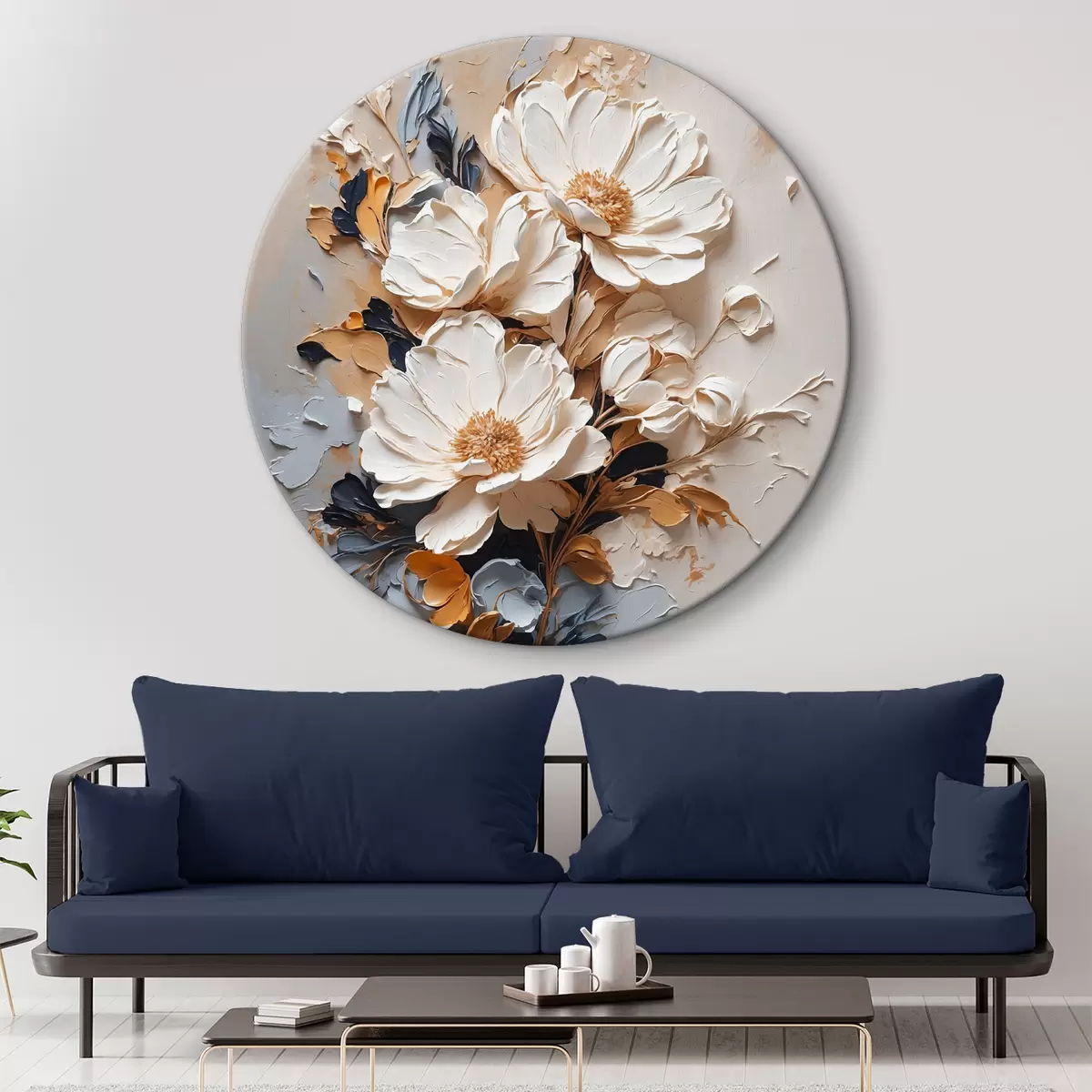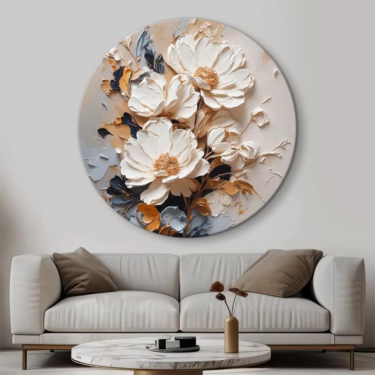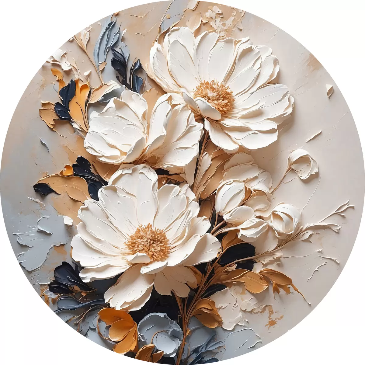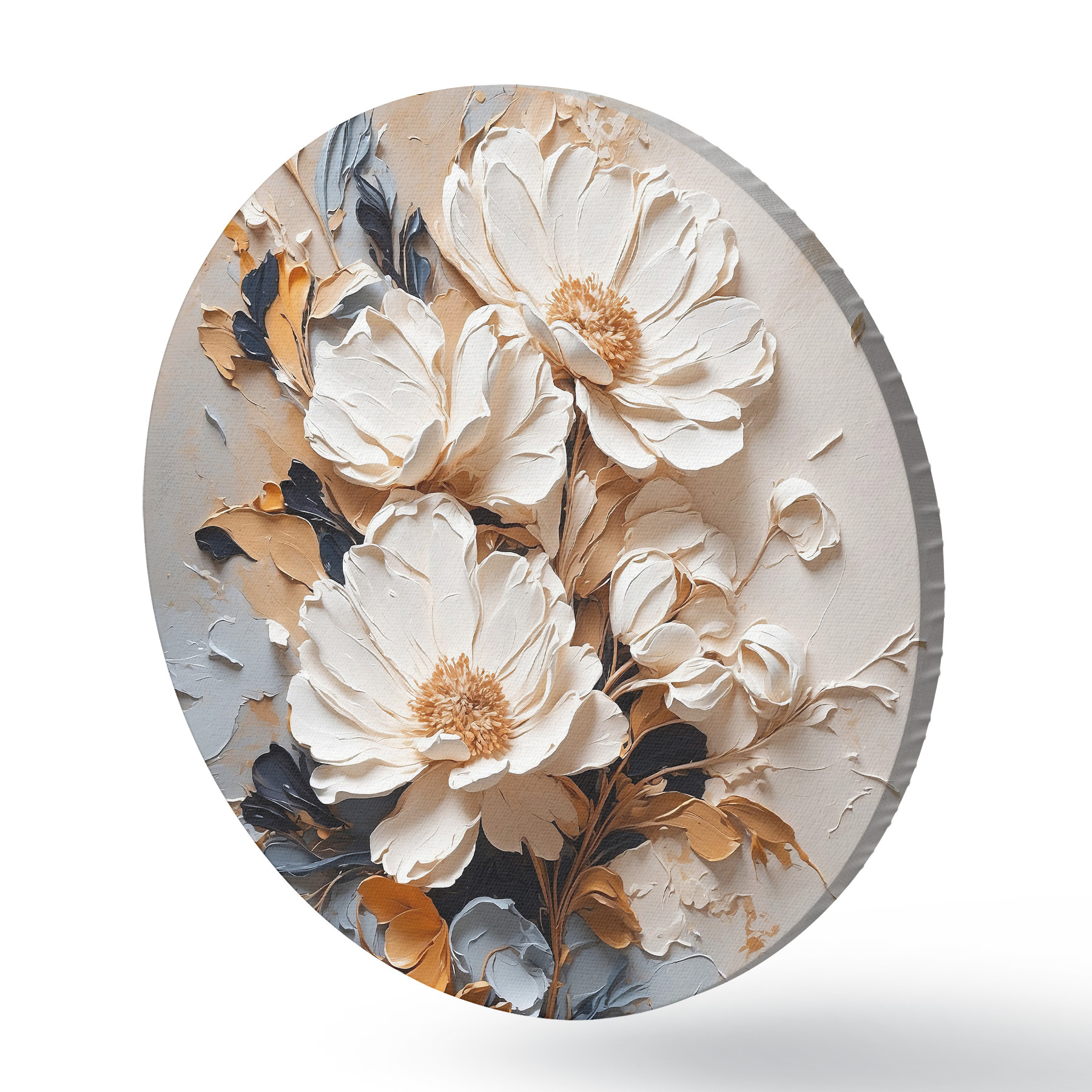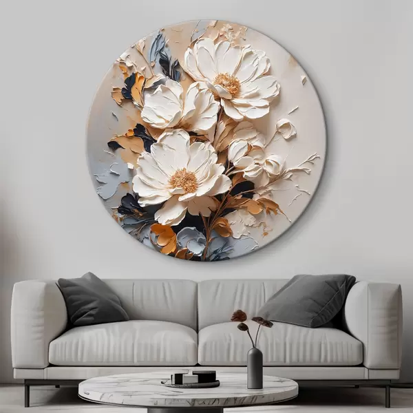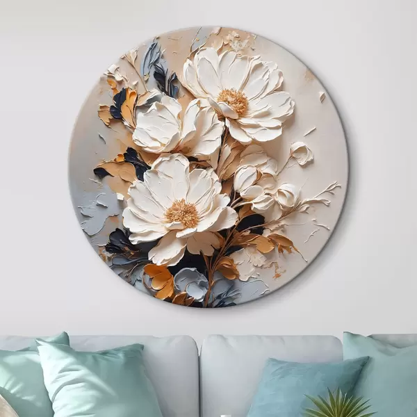 Tableaux ronds Fleurs blanches à l'huile r37327
