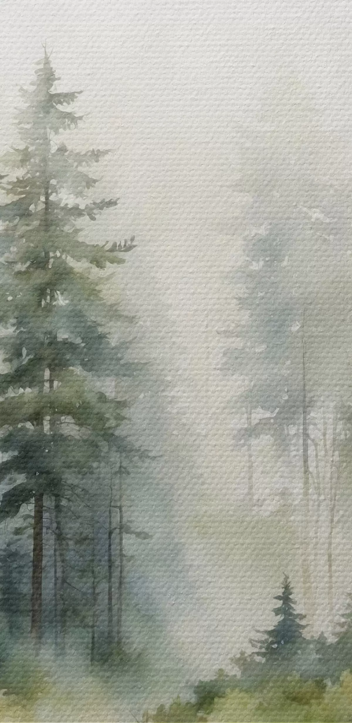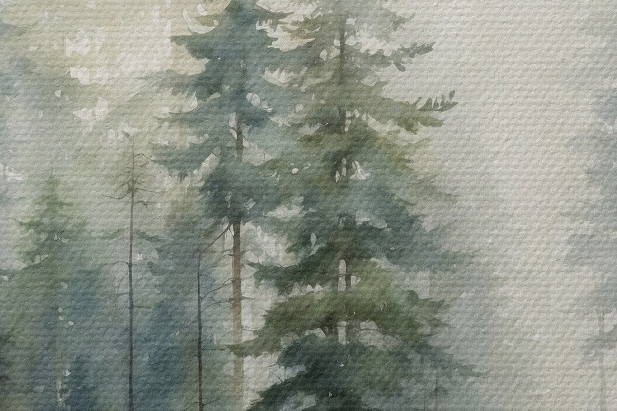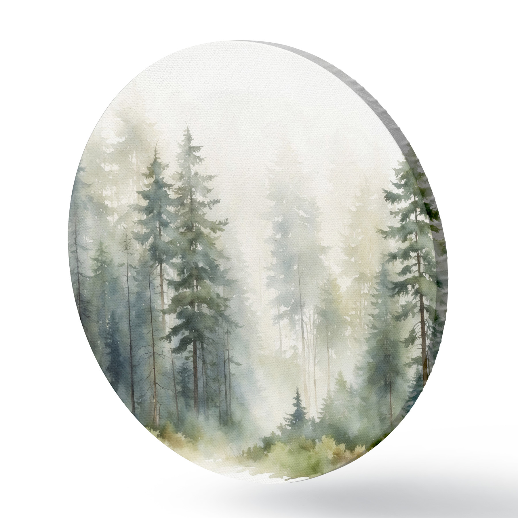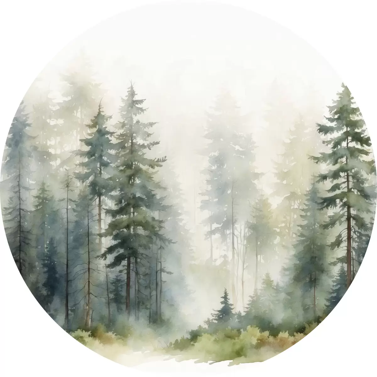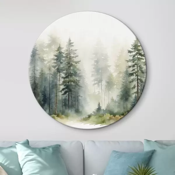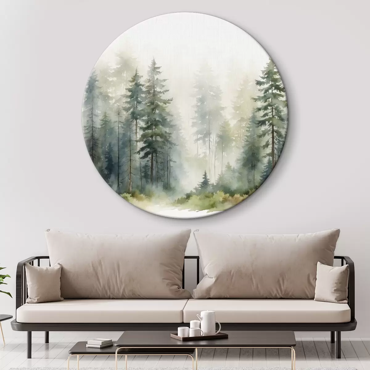 Tableaux ronds Forêt de conifères dans le brouillard r37337