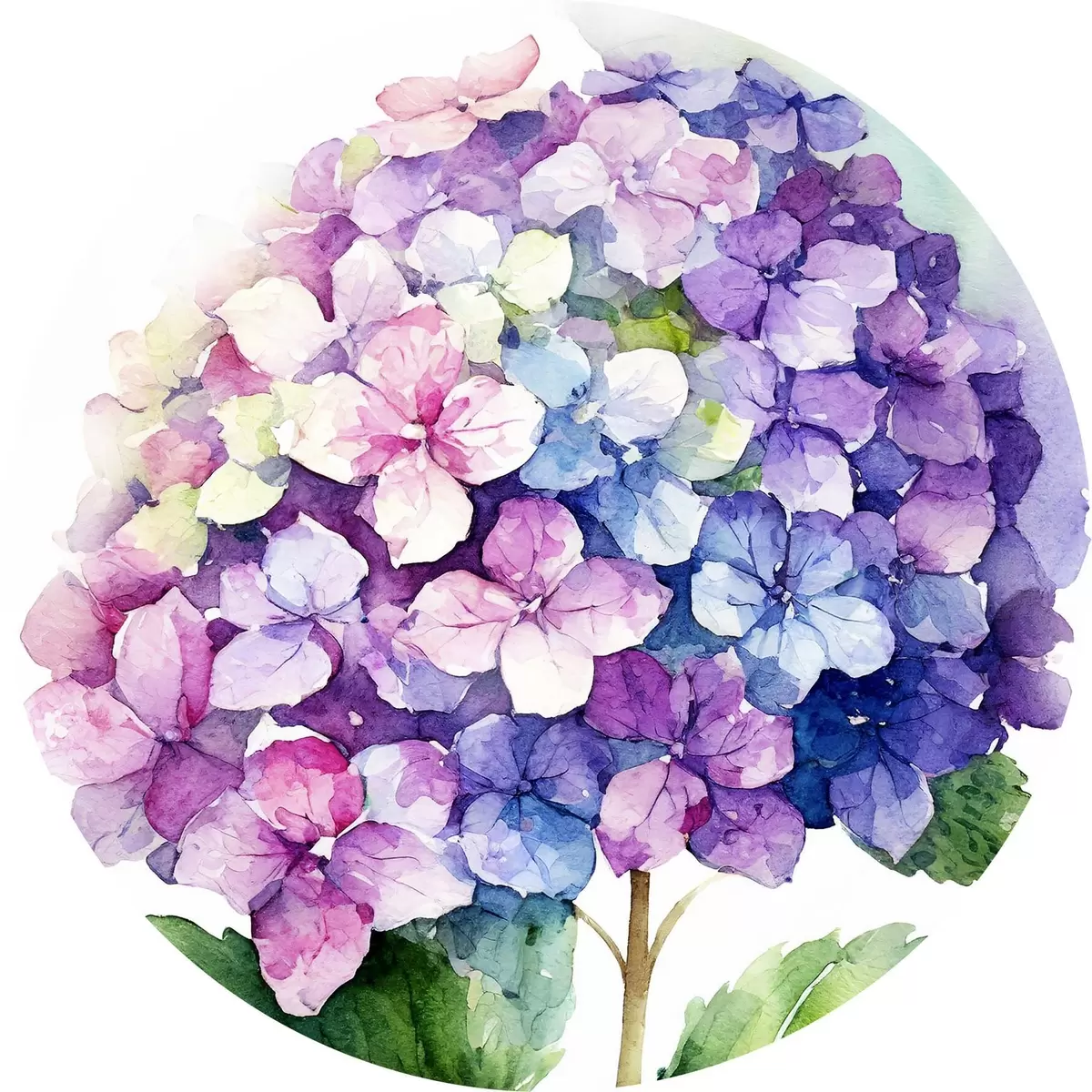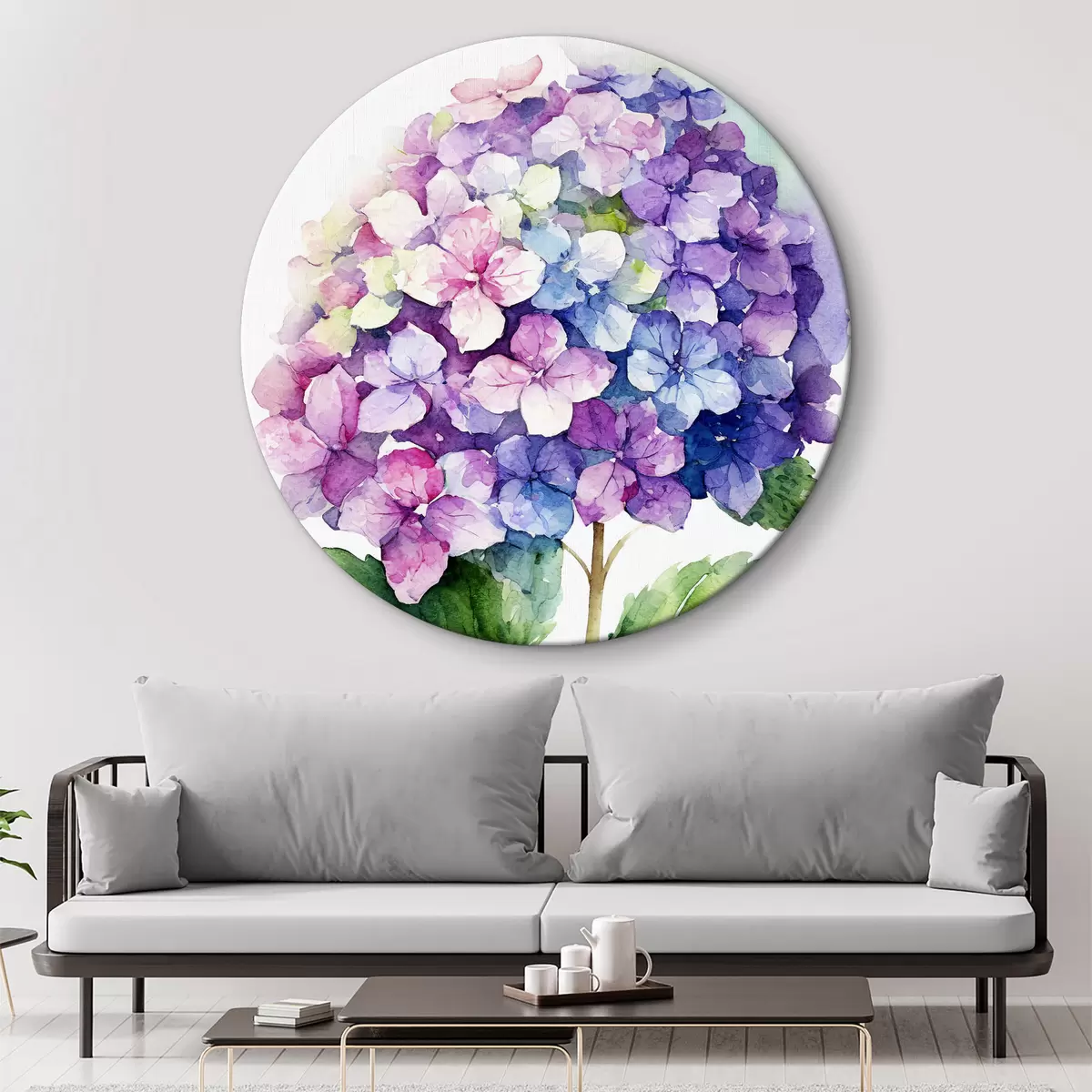 Tableaux ronds Hortensia aquarelle, illustration florale, minimalisme r37344