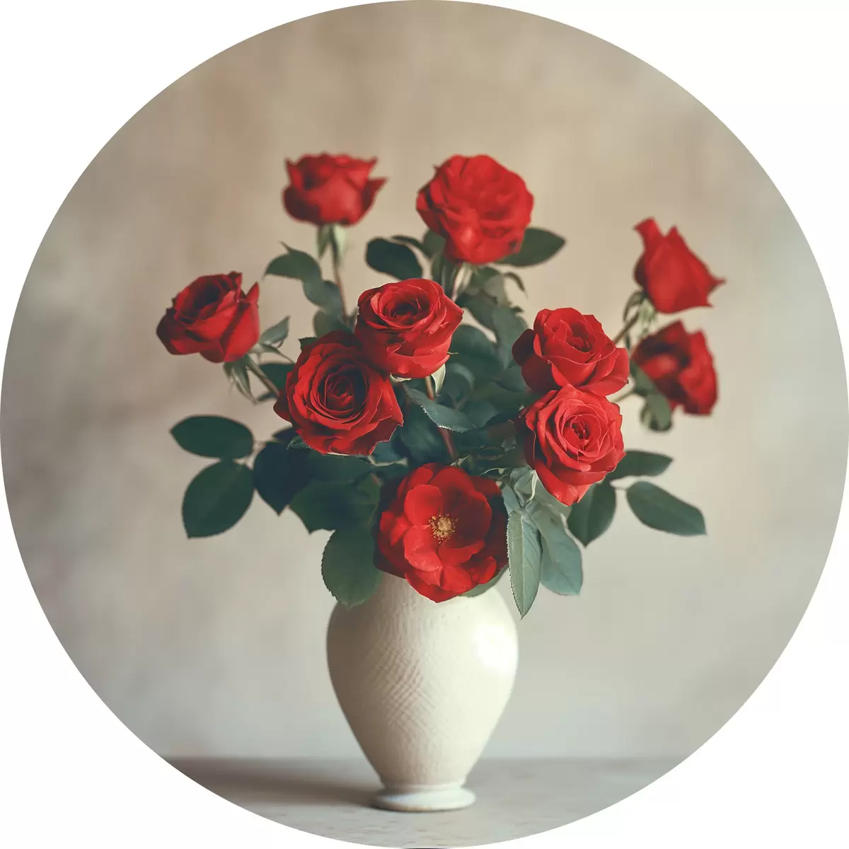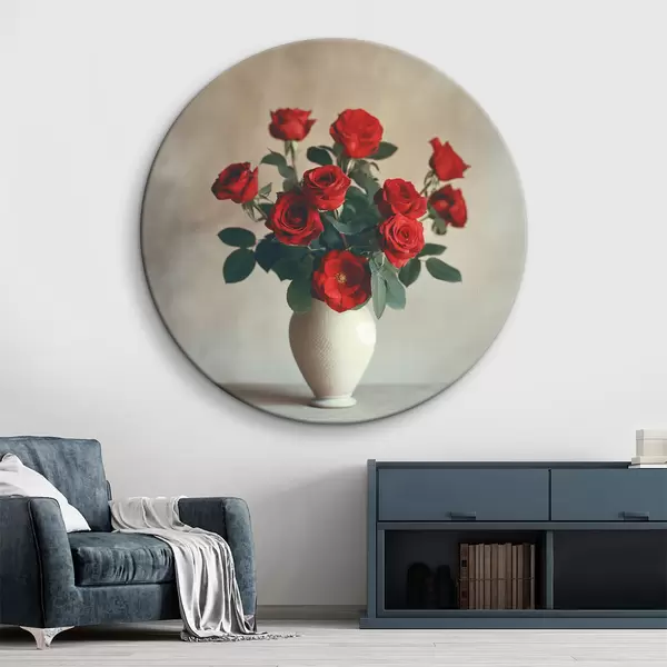 Tableaux ronds Vase avec roses rouges r37376