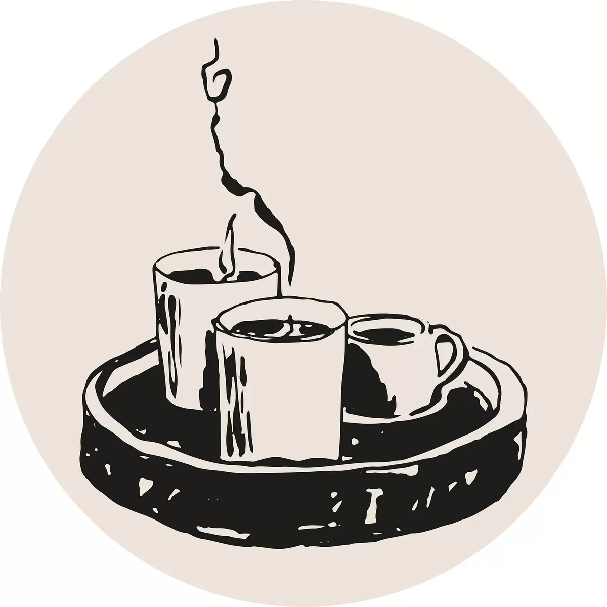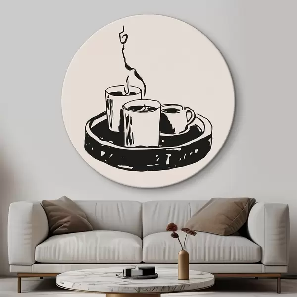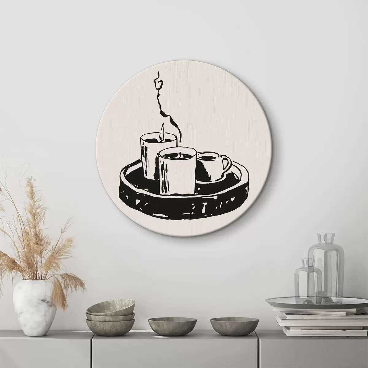 Tableaux ronds Dessin d'un plateau avec des tasses à café r37405