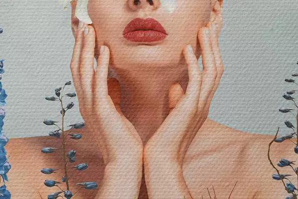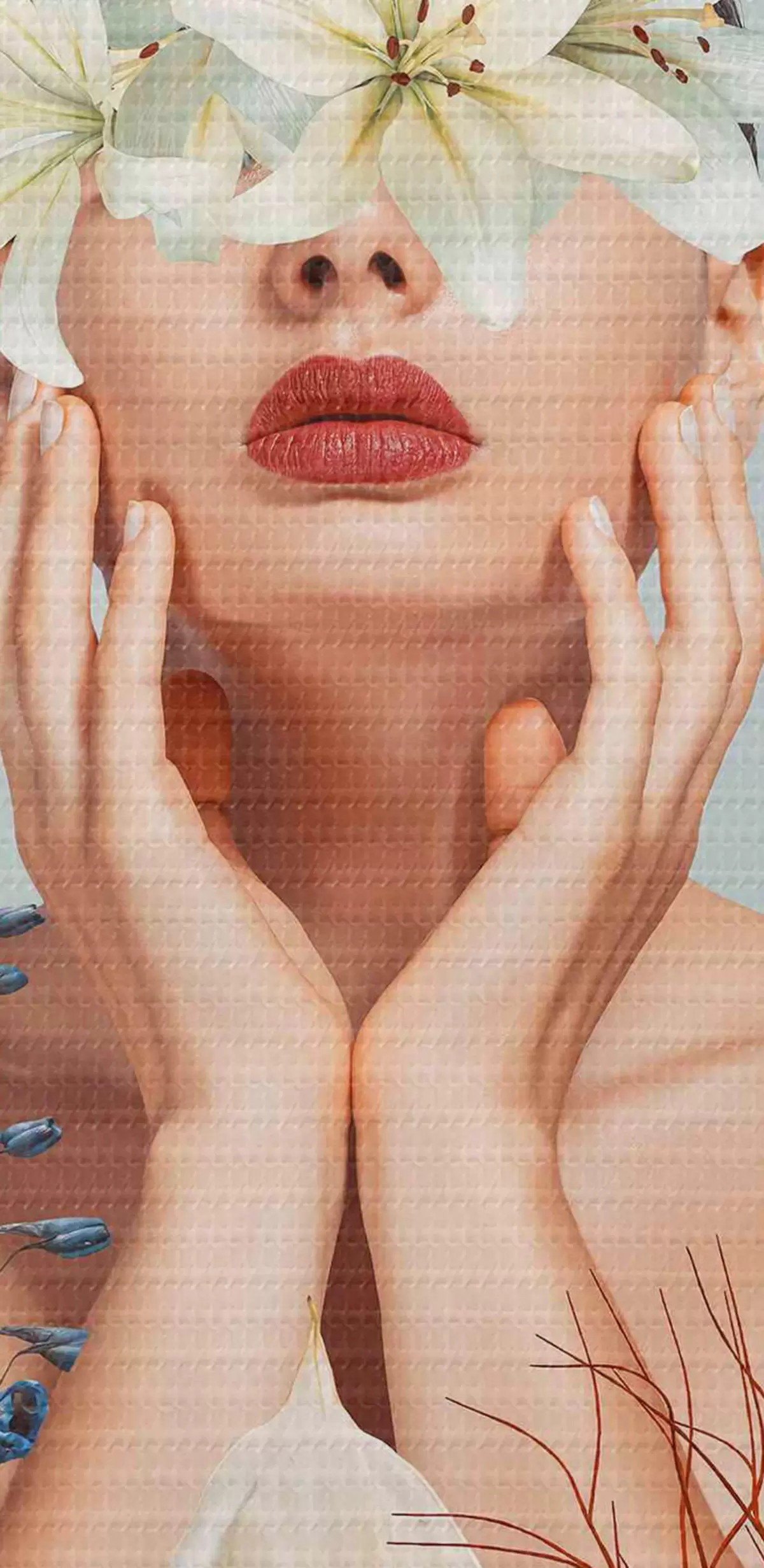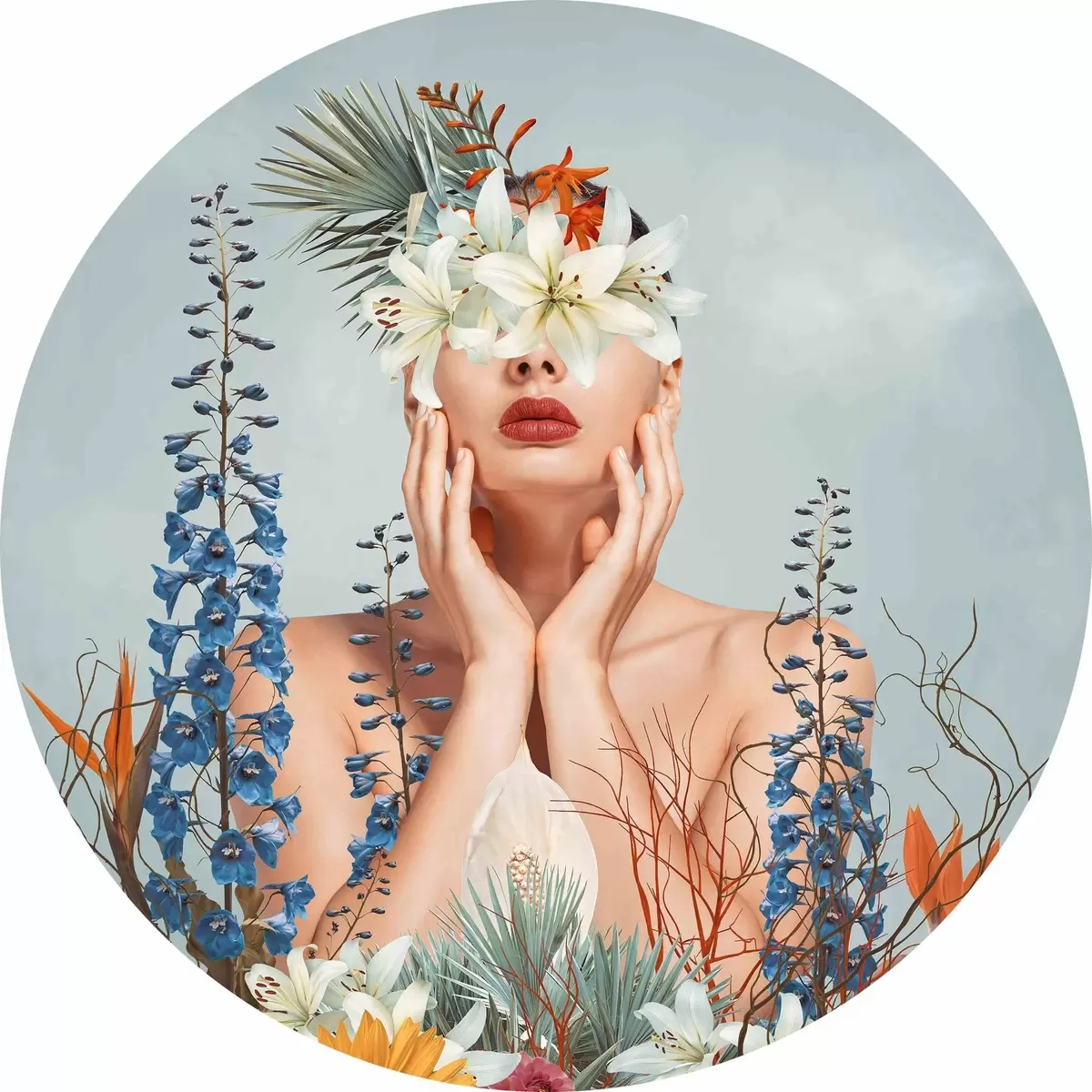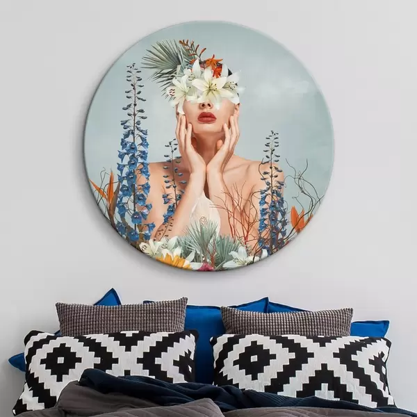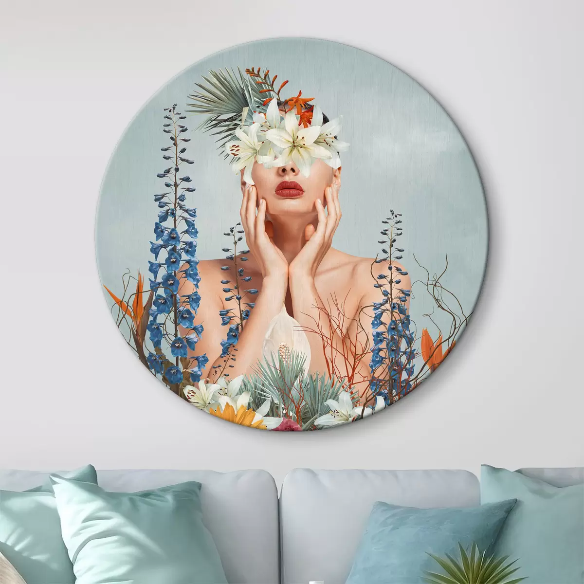 Tableaux ronds Femme avec des fleurs autour du visage r37477