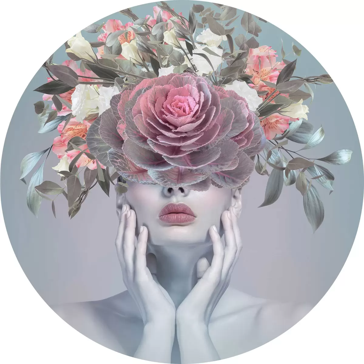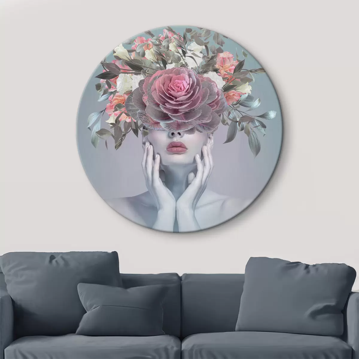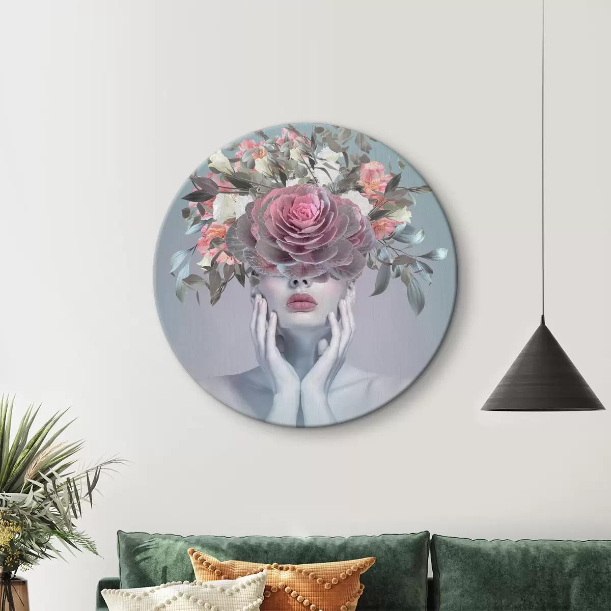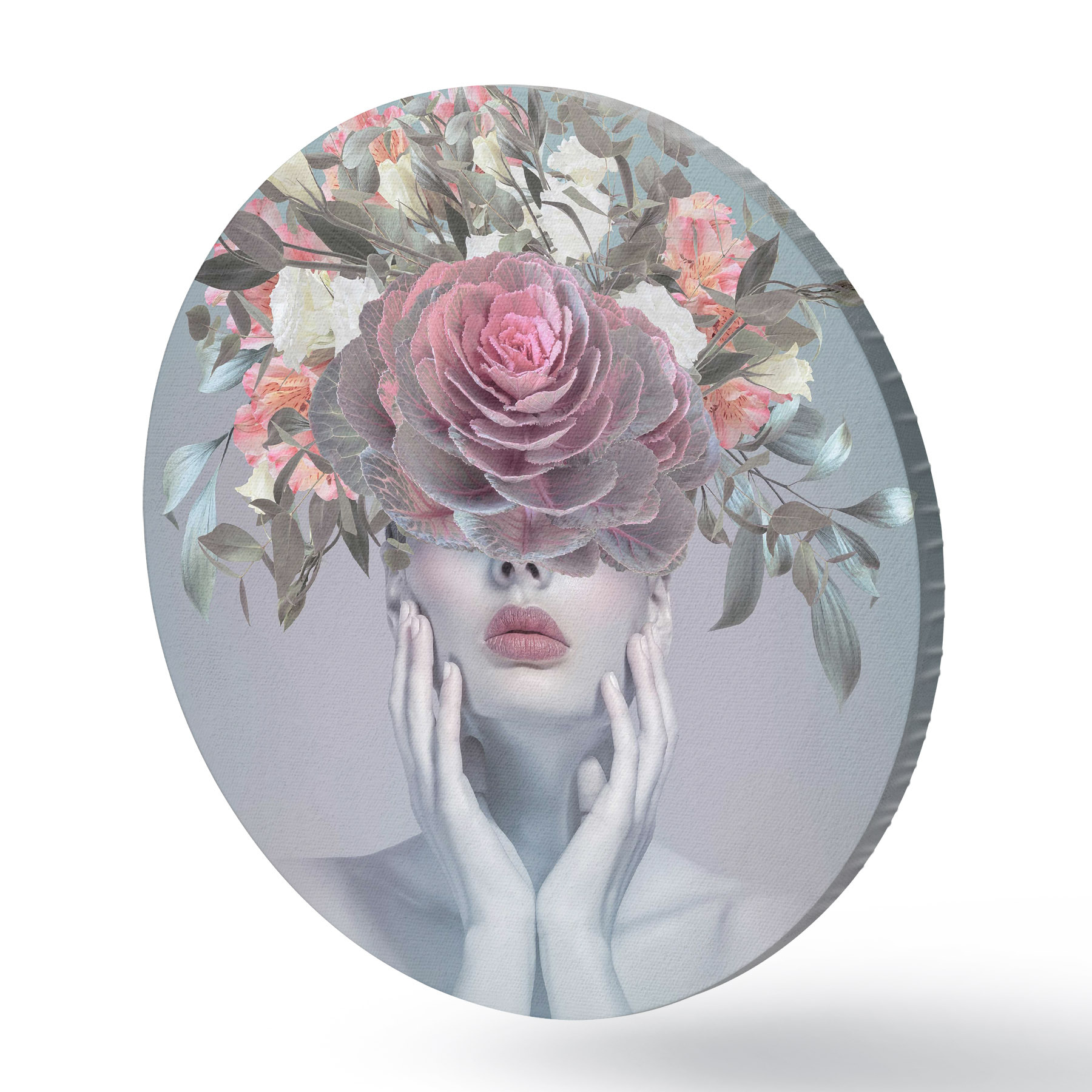 Tableaux ronds Femme avec des fleurs sur la tête r37479