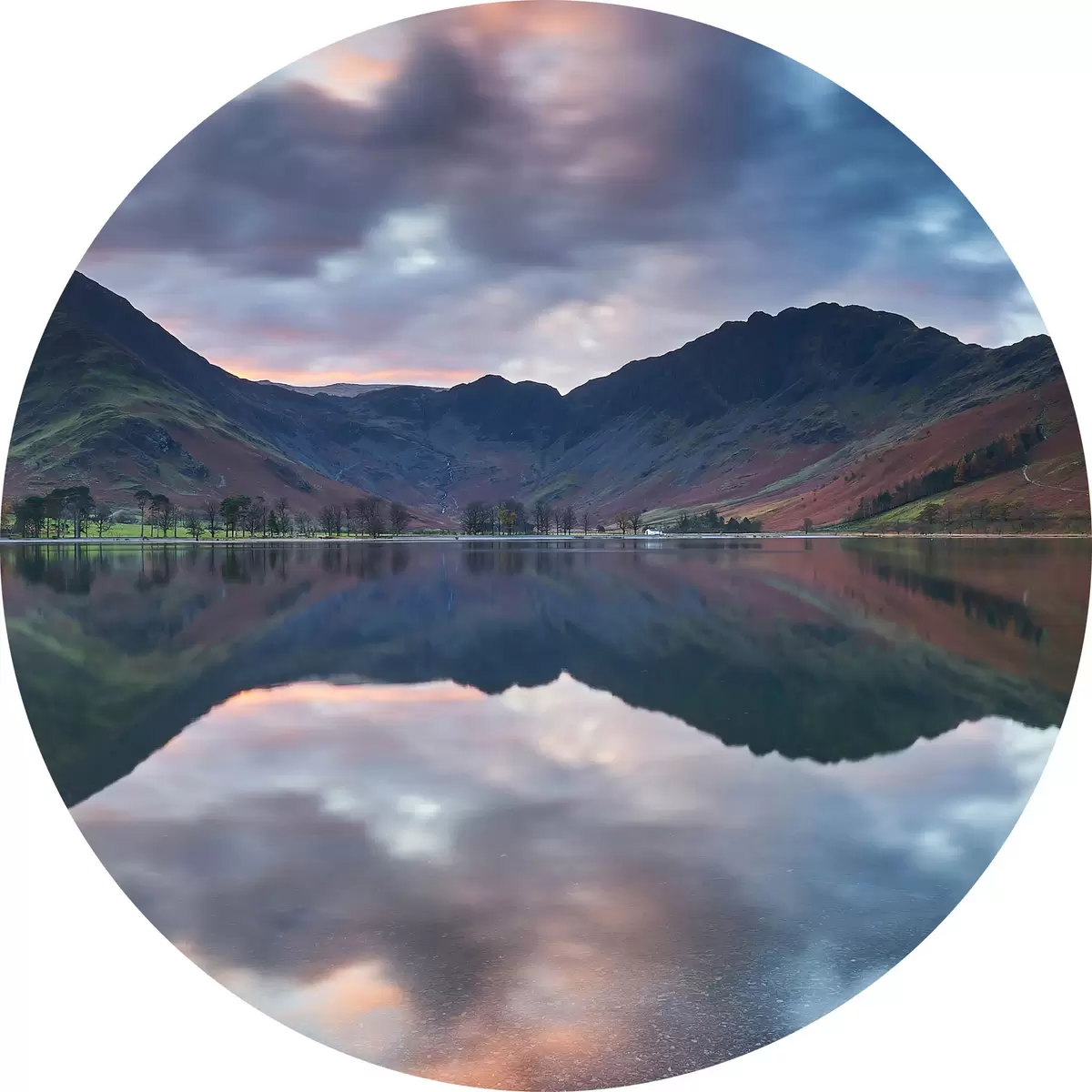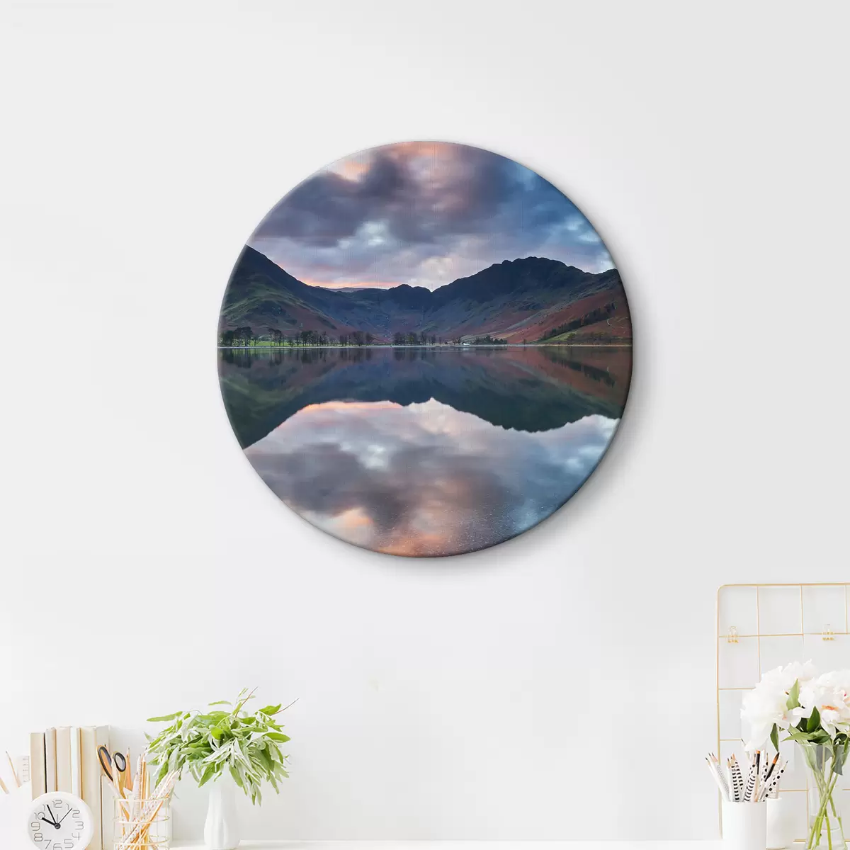 Tableaux ronds Lac avec des montagnes en arrière-plan r37533