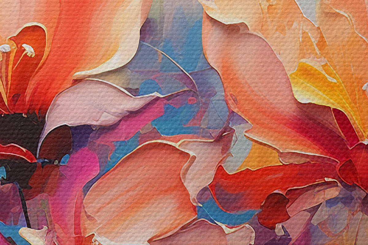 Trois types de matériaux peuvent être commandés : Economic Canvas - matériau dense et durable pour l'impression numérique, identique à la toile de peintre, surface imperméable, reproduction réaliste des détails, matériau à grain moyen. Premium Canvas - la texture ressemble à celle d'une toile de peintre (petits fils entrelacés). Reproduction douce et détaillée de l'image sur une surface mate. Eco-Premium - tissu 100 % coton de haute qualité. Grâce aux fibres naturelles de coton, le matériau est durable et résistant à l'usure. Excellente reproduction des couleurs et des détails.