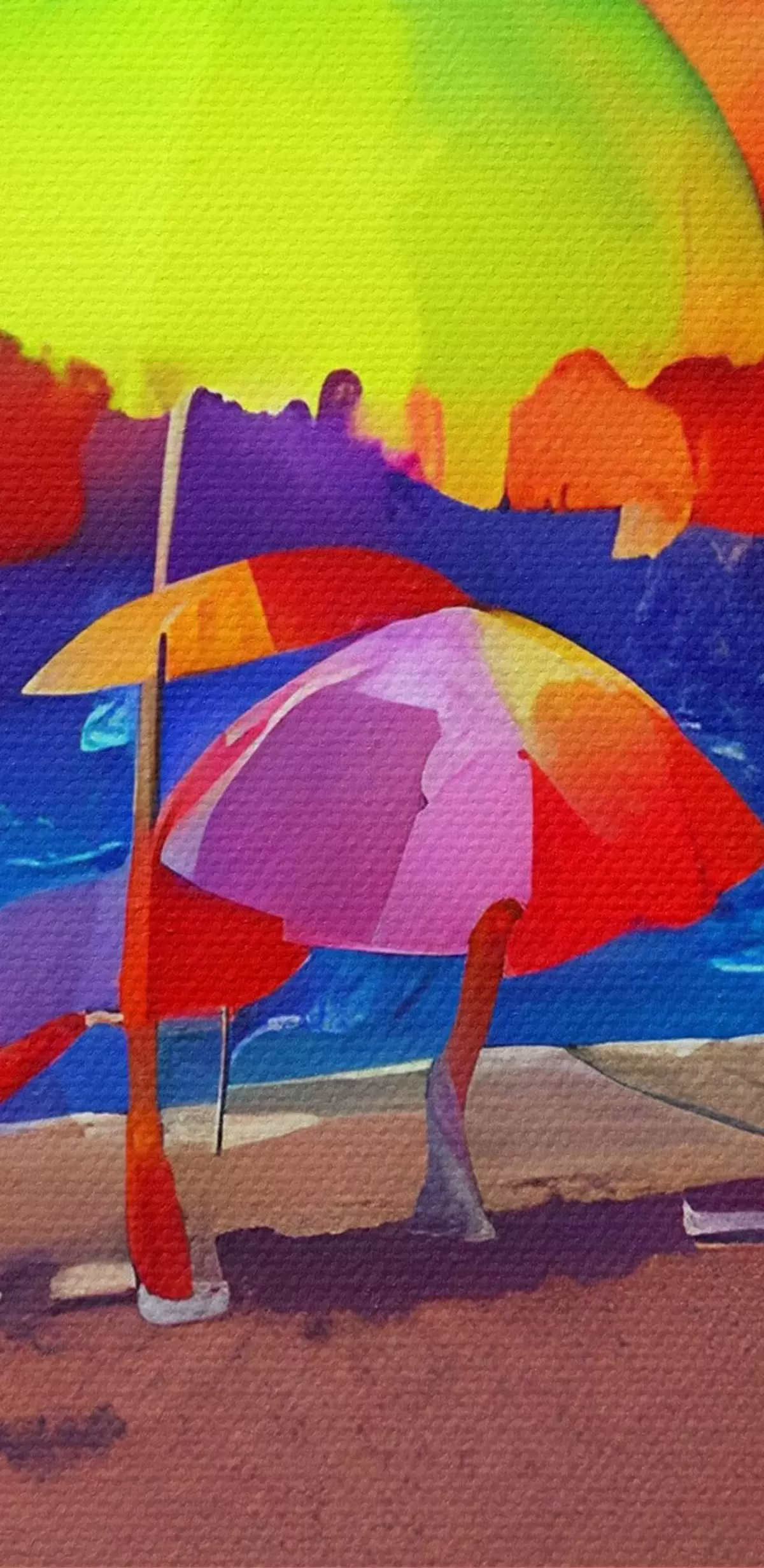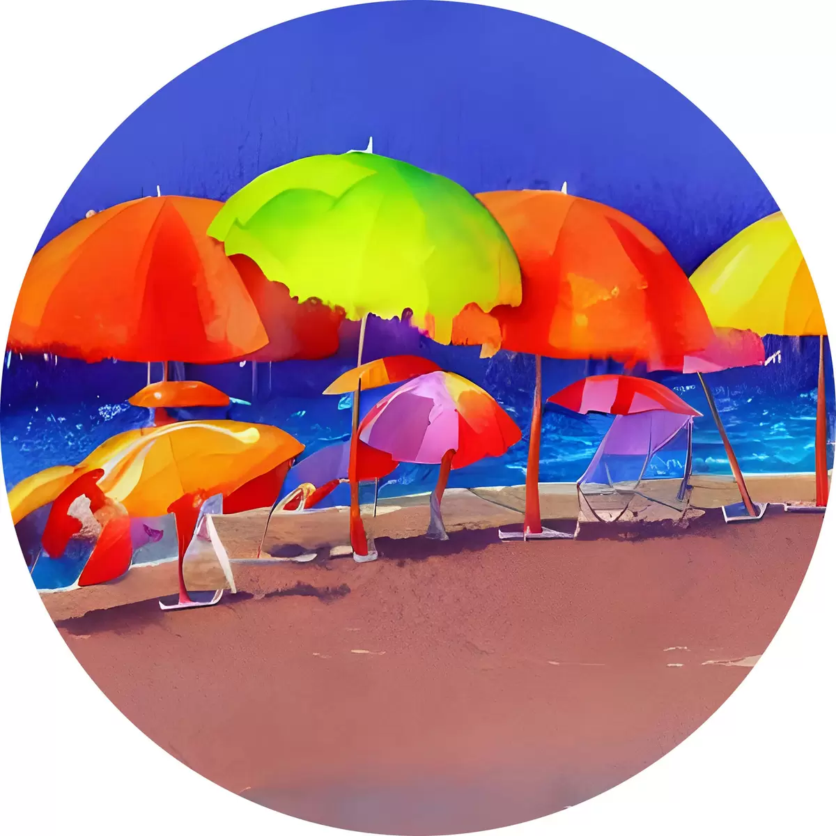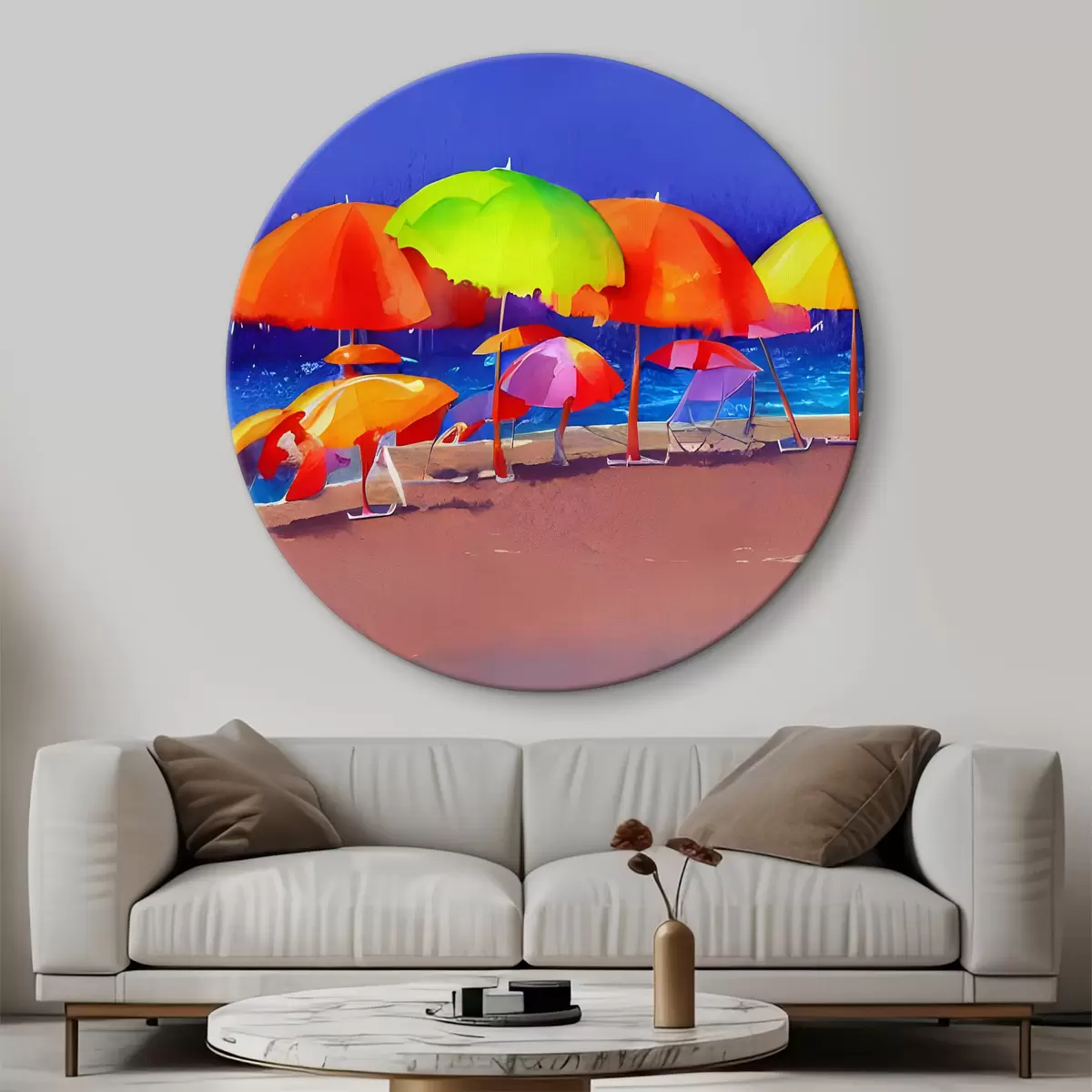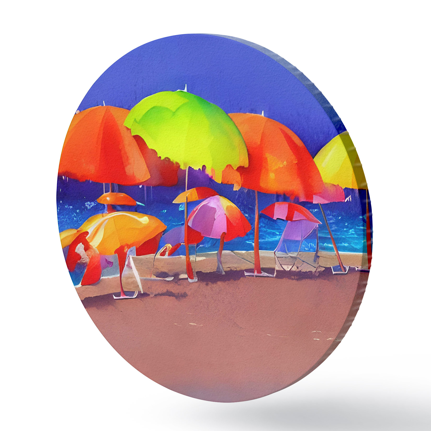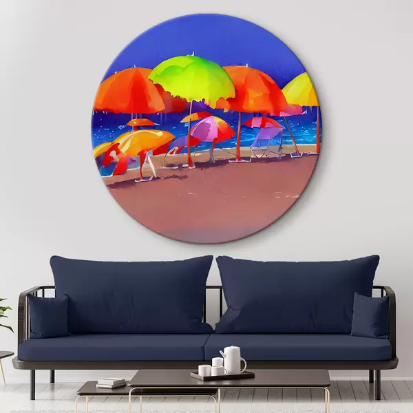 Tableaux ronds Groupe de parasols colorés sur la plage r37626