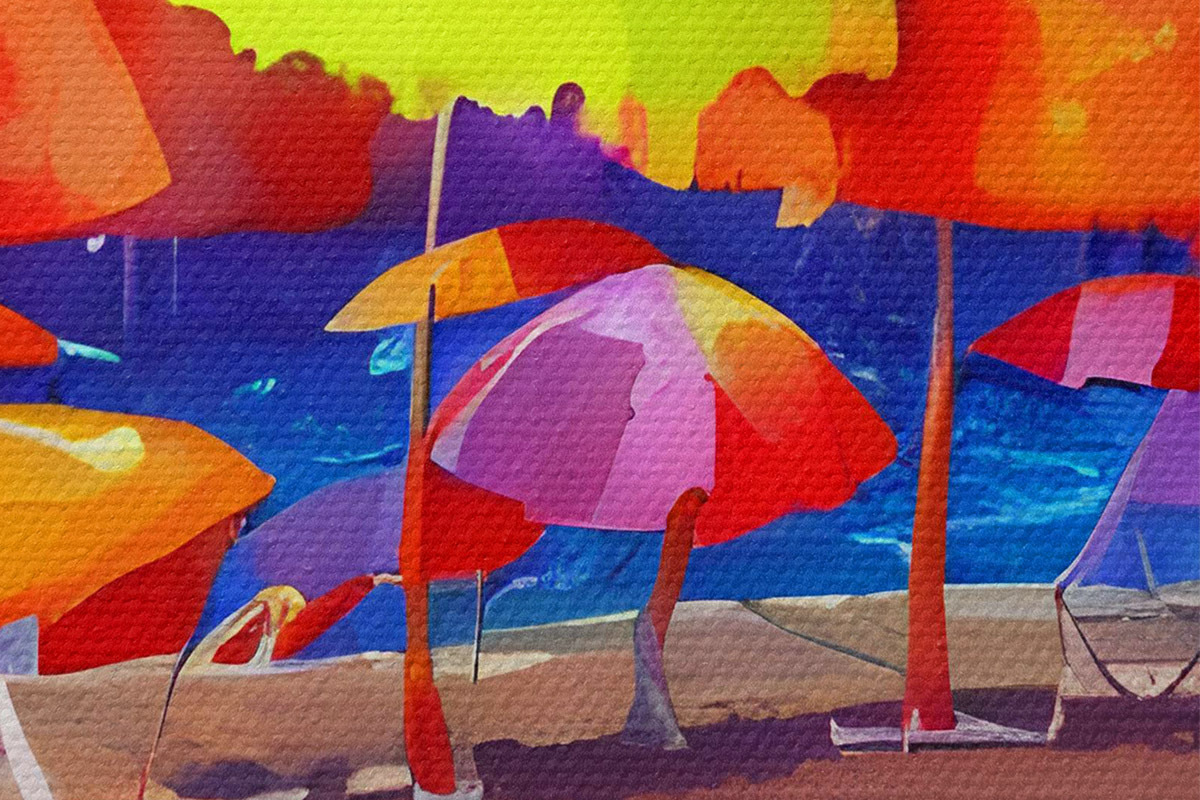 Image Groupe de parasols colorés sur la plage Nr r37626