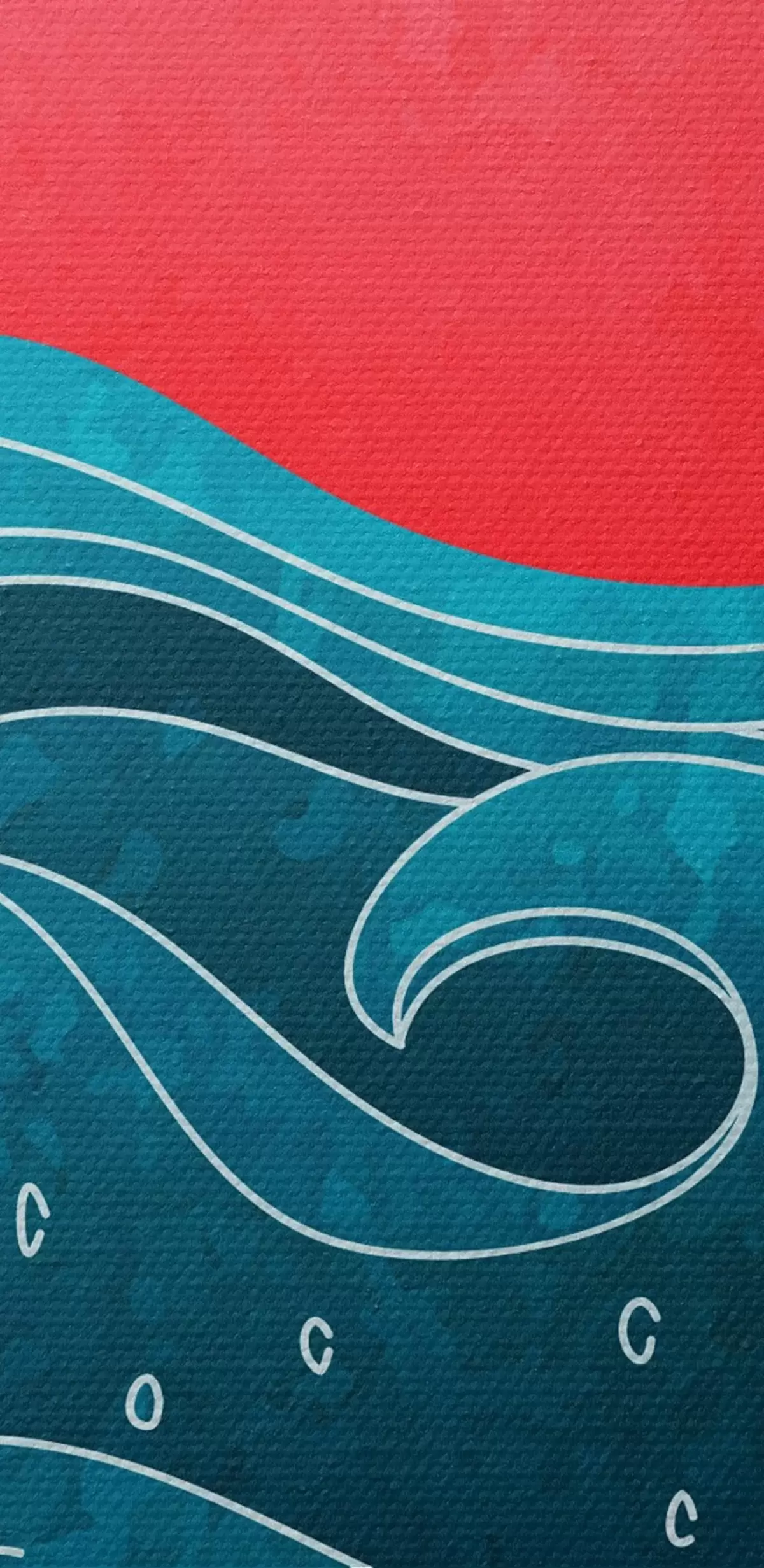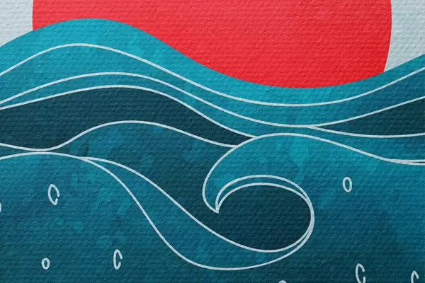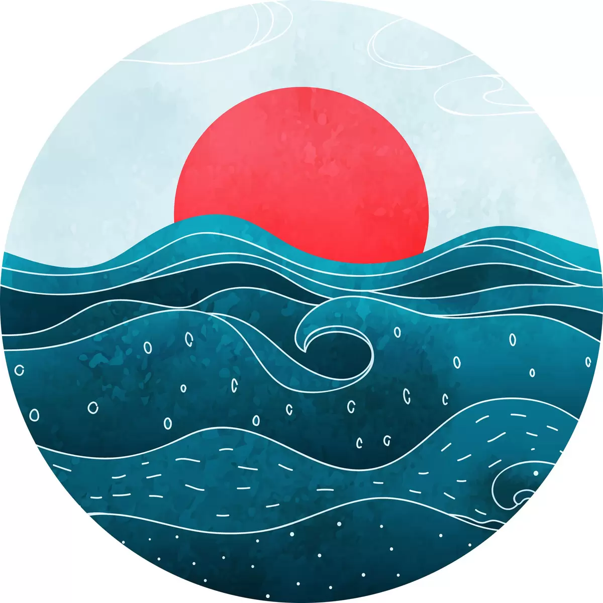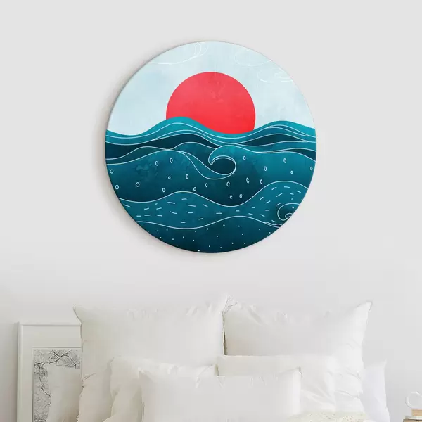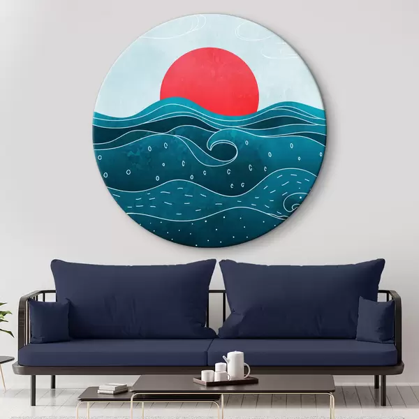 Tableaux ronds Eau avec vagues et soleil rouge r37640