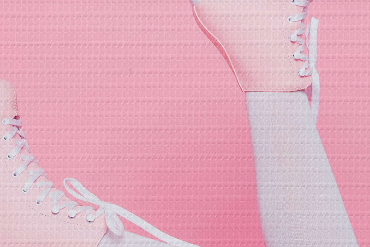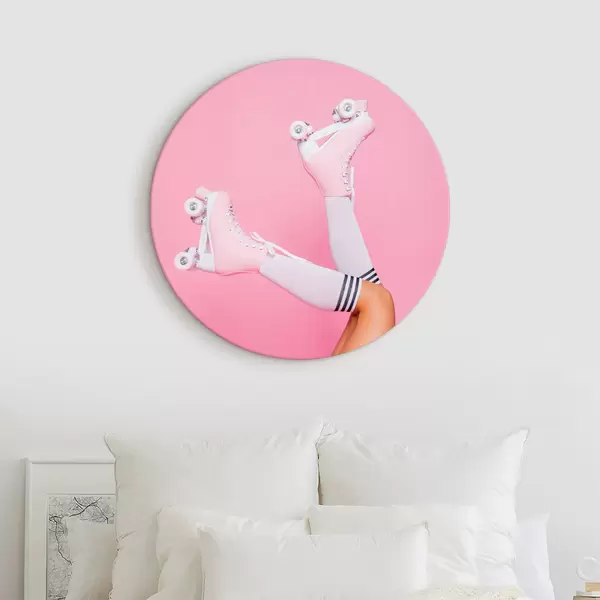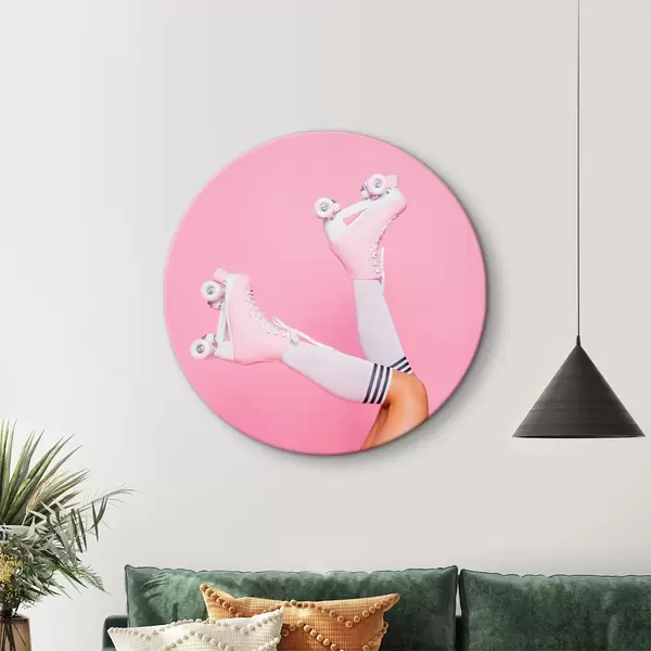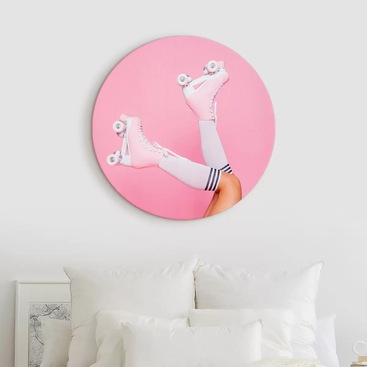 Tableaux ronds Patins à roulettes sur fond rose r37763