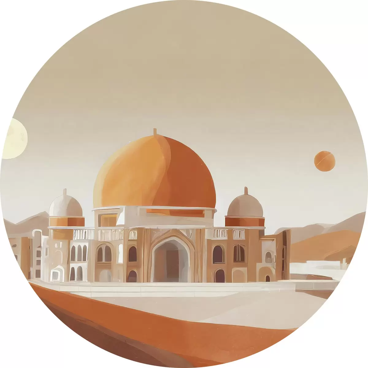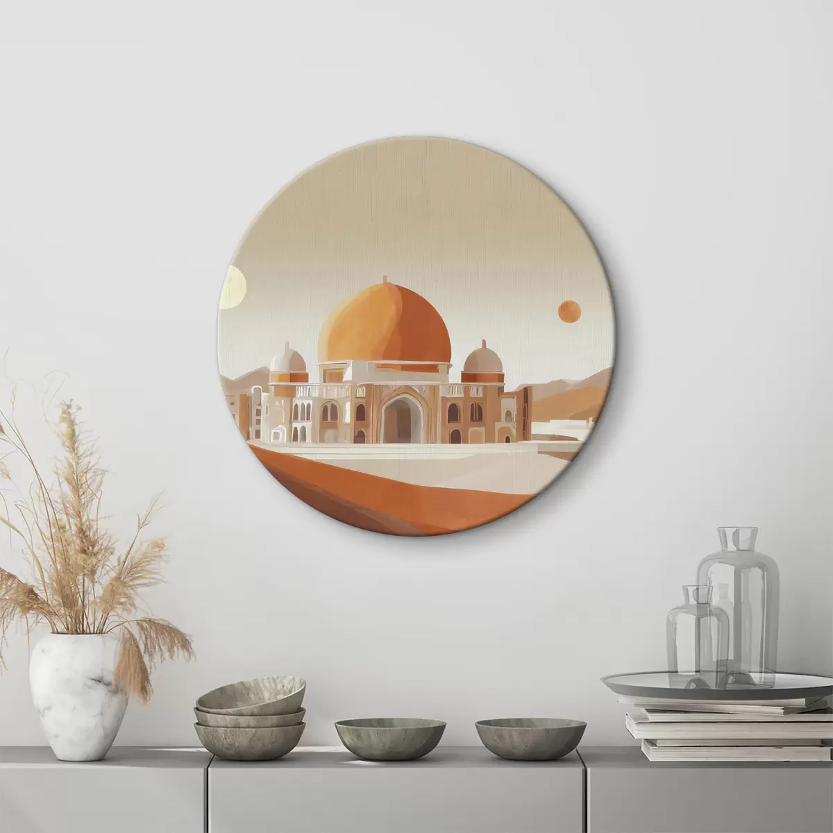 Tableaux ronds Bâtiment avec dôme et paysage désertique r37815