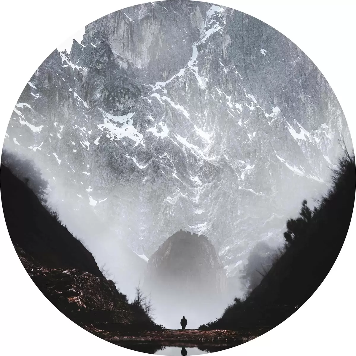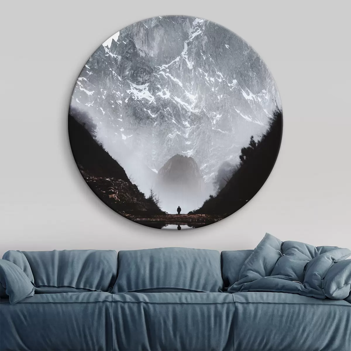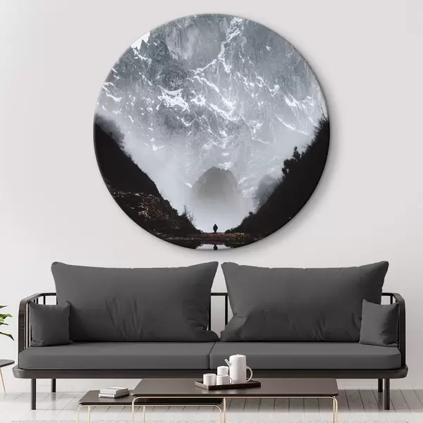 Tableaux ronds Les montagnes brumeuses se reflètent dans l'eau r37828