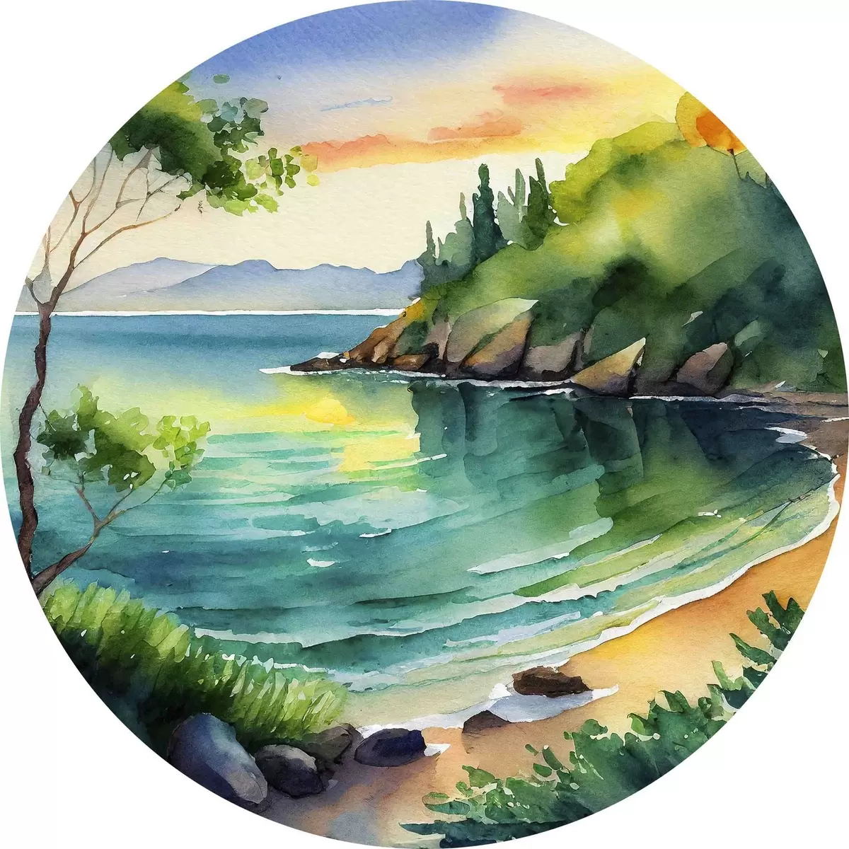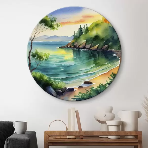 Tableaux ronds Les eaux calmes rencontrent le rivage r37954