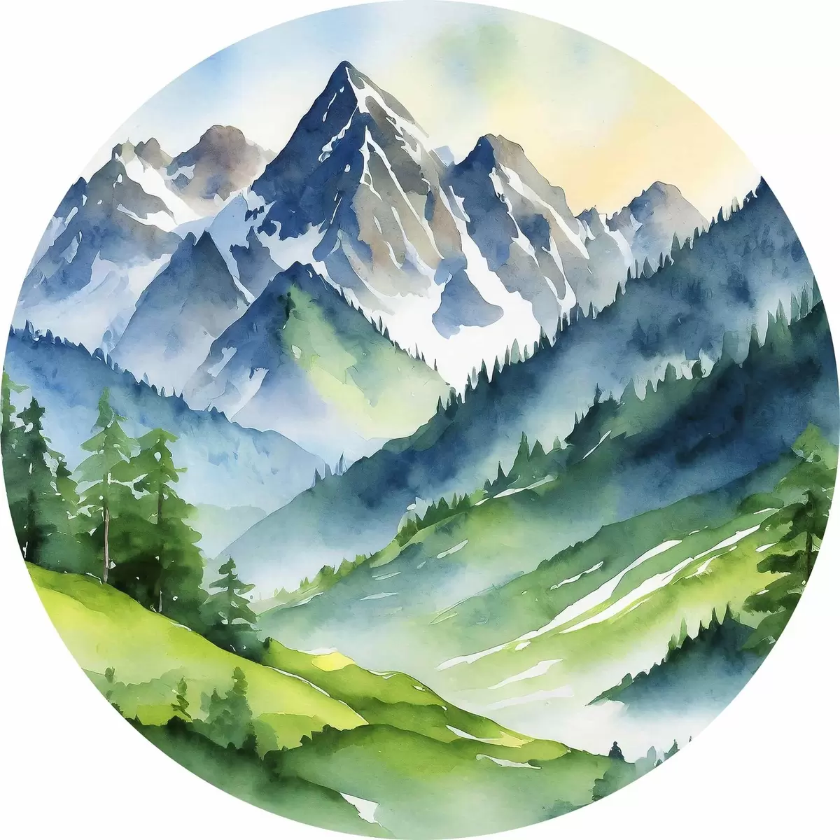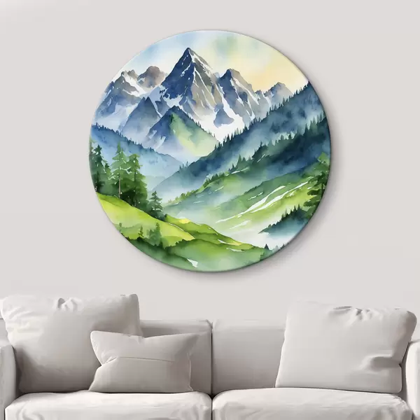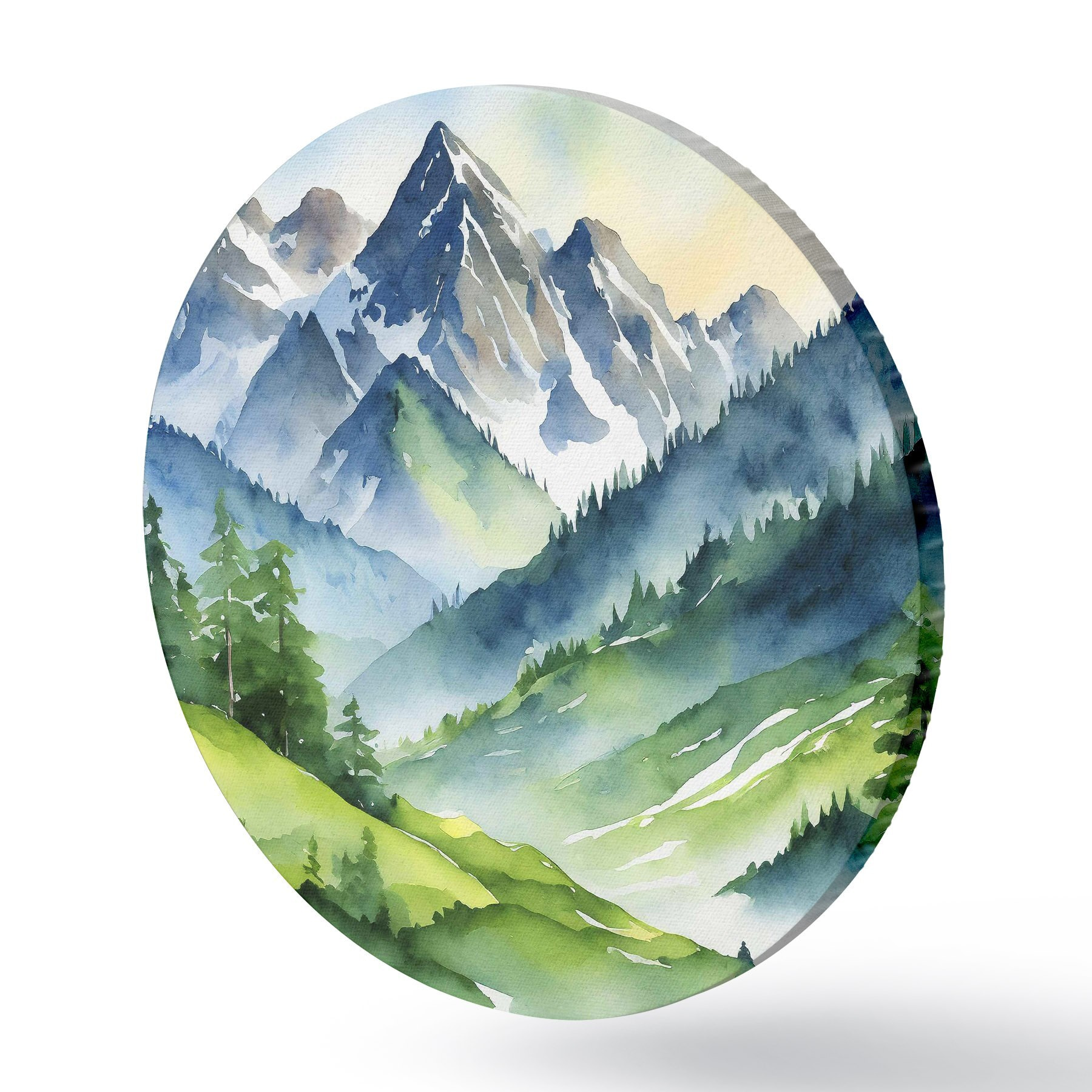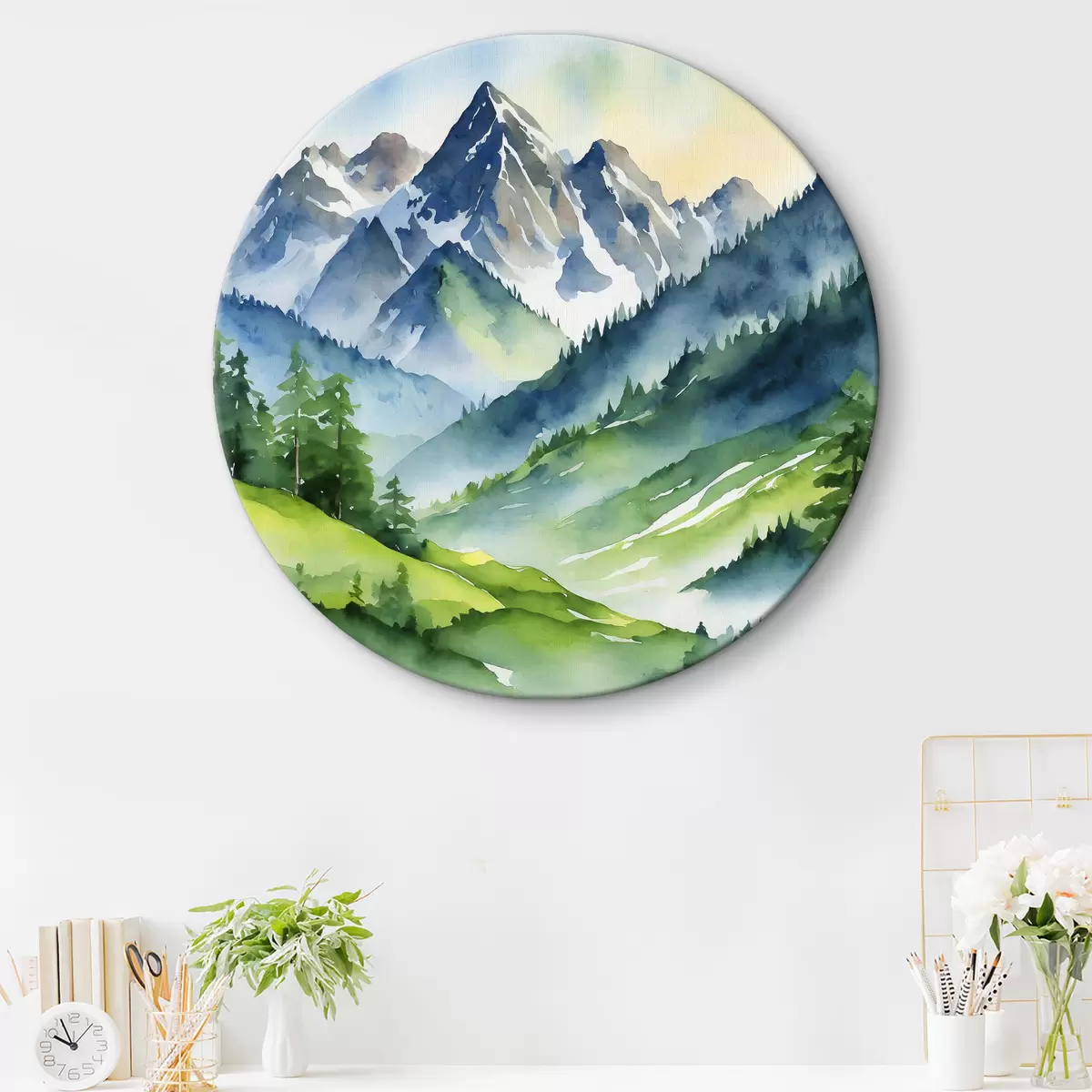 Tableaux ronds Des montagnes majestueuses sous un ciel doux r37957